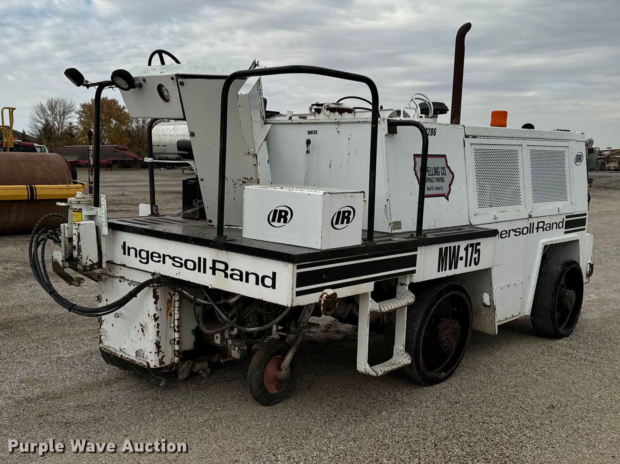 1991 Ingersoll-Rand MW-175 milling machine. Hours: 3,309 on meter, Engine hours: 562 on meter, Serial: 5120-S, Unit #: 24286. Engine Detroit Diesel, Fuel type: Diesel. Transmission Hydrostatic, Two speed travel. Features Cutting head Width: 20", Cutting speeds: 1, Carbide, Water/emulsion application system, Grade & slope controls, Hydraulic leveling. Notes Dead battery. L.L. Pelling Company, Inc.. North Liberty, IA 52317