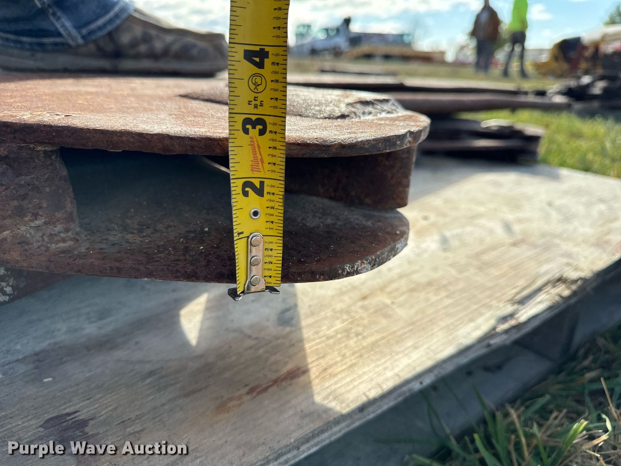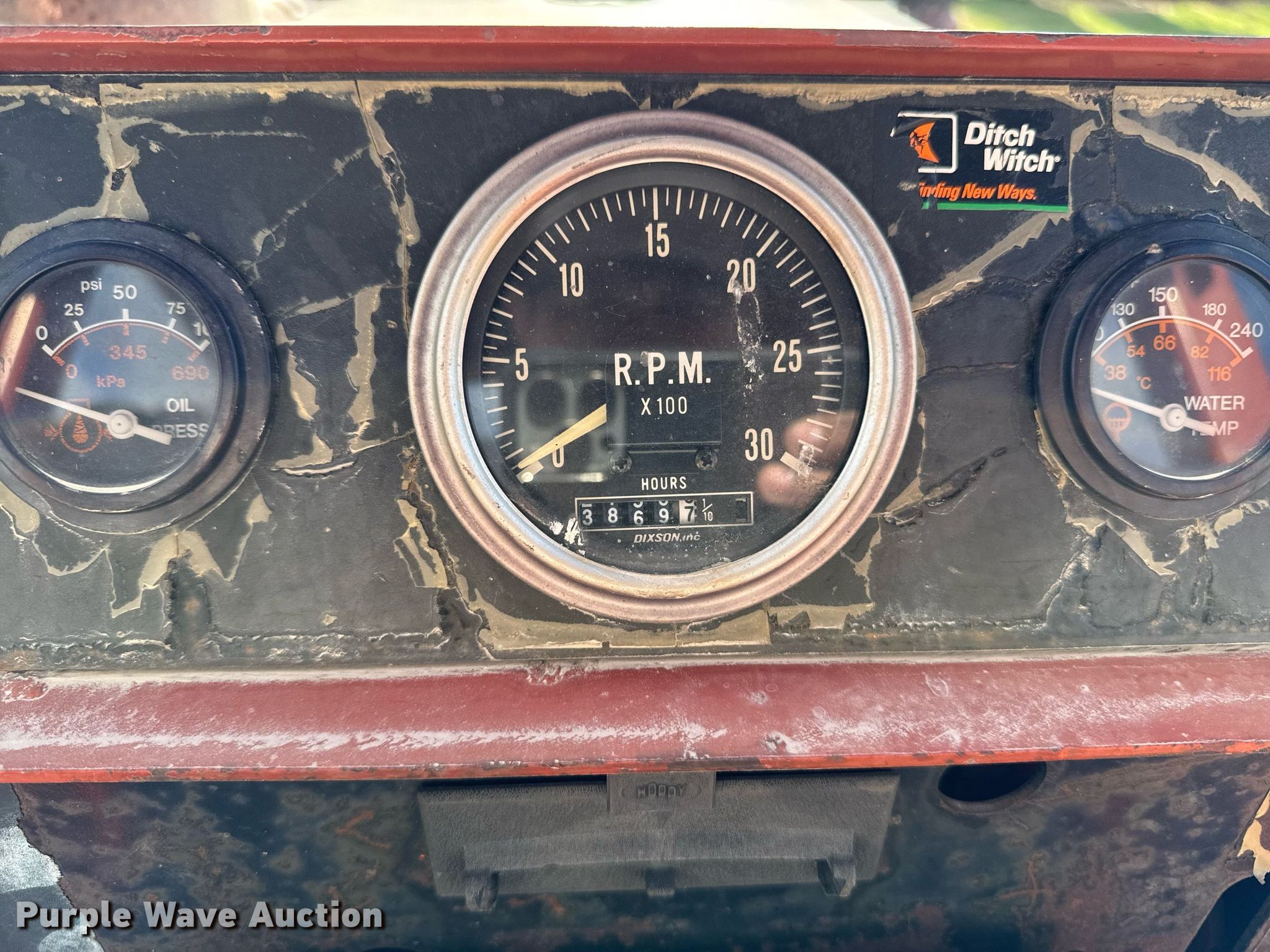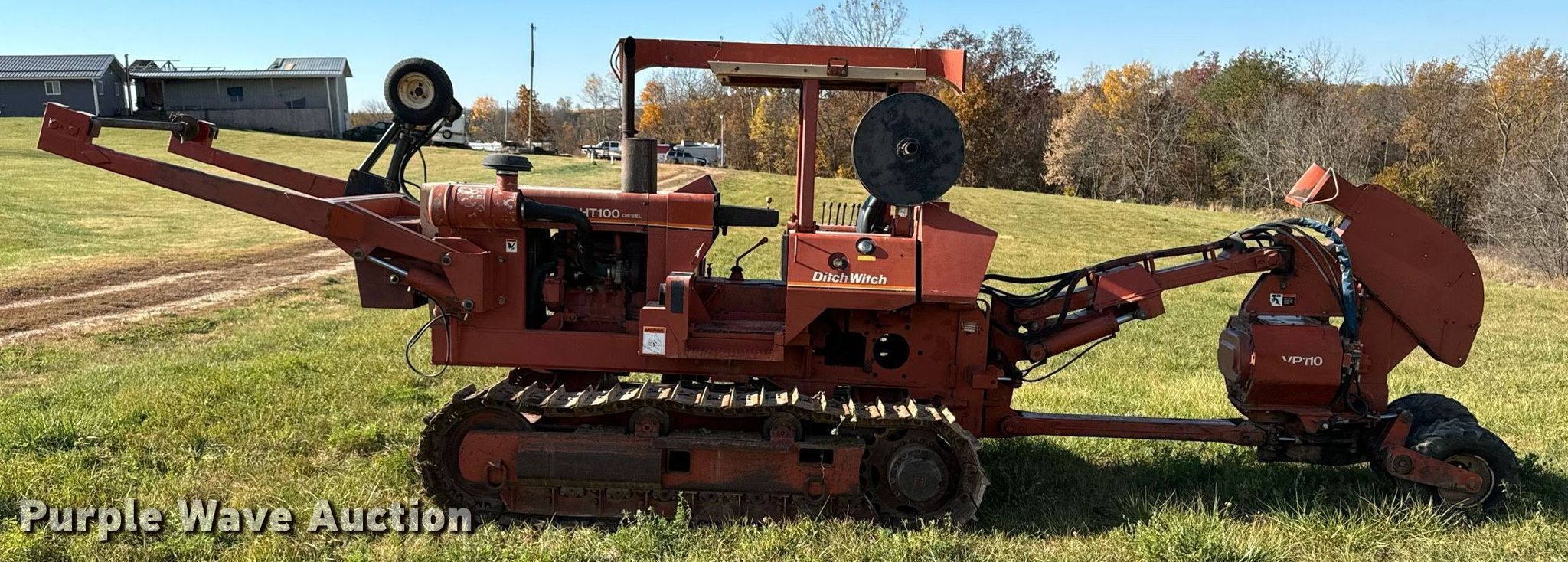 1993 Ditch Witch HT100JD cable plow. Hours: 3,870 on meter, Serial: 6K0029. Engine John Deere, Cylinders: 4, Fuel type: Diesel. Transmission Direct-drive, 3F - 3R. Operators station Canopy, Steering: Joystick. Features Attachments Plow Ditch Witch VP110, Vibratory, Depth: 48", Pipe size: 15", Front cable reel Width: 50".. Plow tires Size: 26x12-12. Tracks Width: 20", Grouser pads: Single, Bottom rollers: 7, Track guards. Notes Flat tire. JJ Vondrum & Sons LLC.. Lancaster, WI 53813