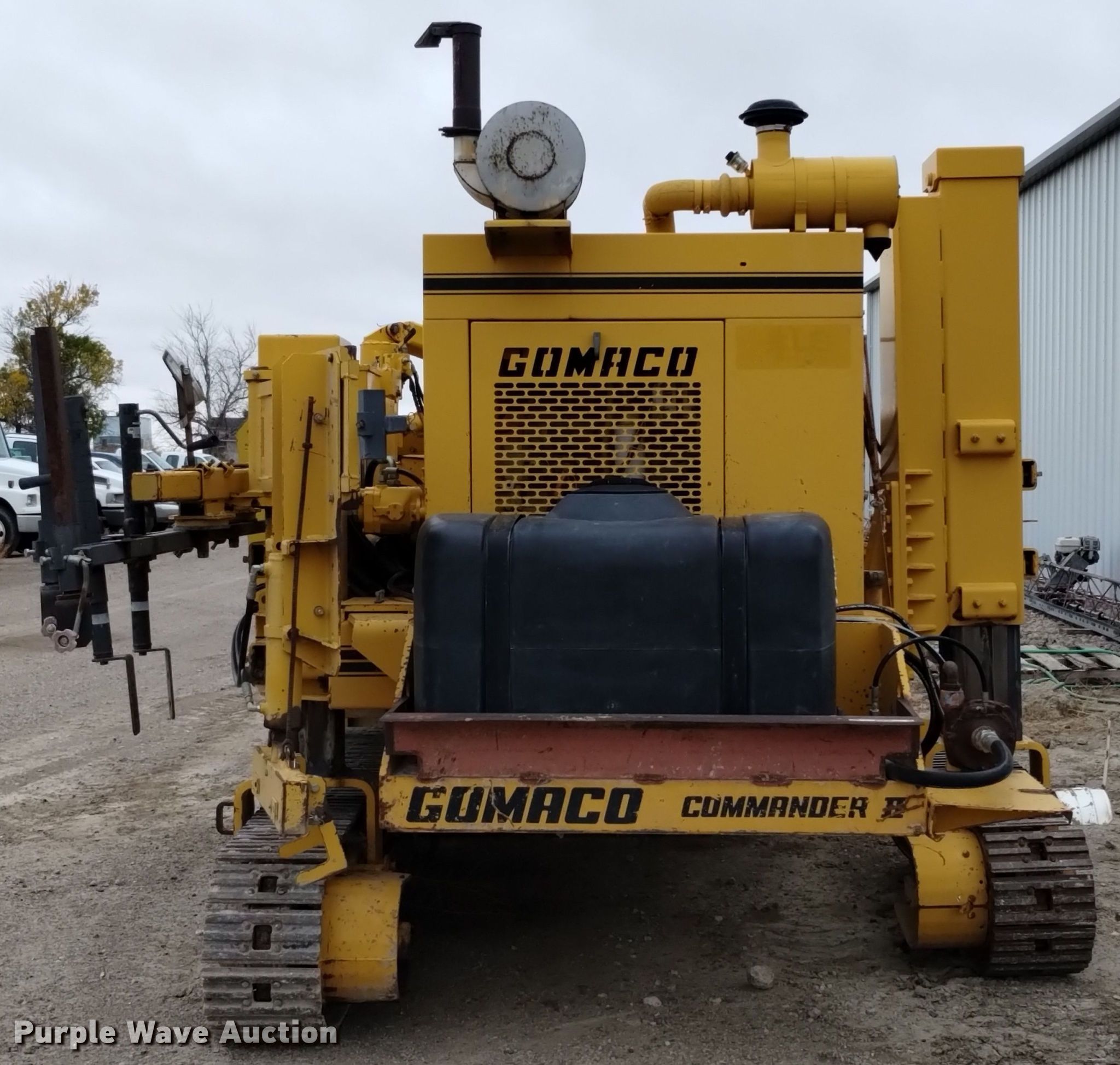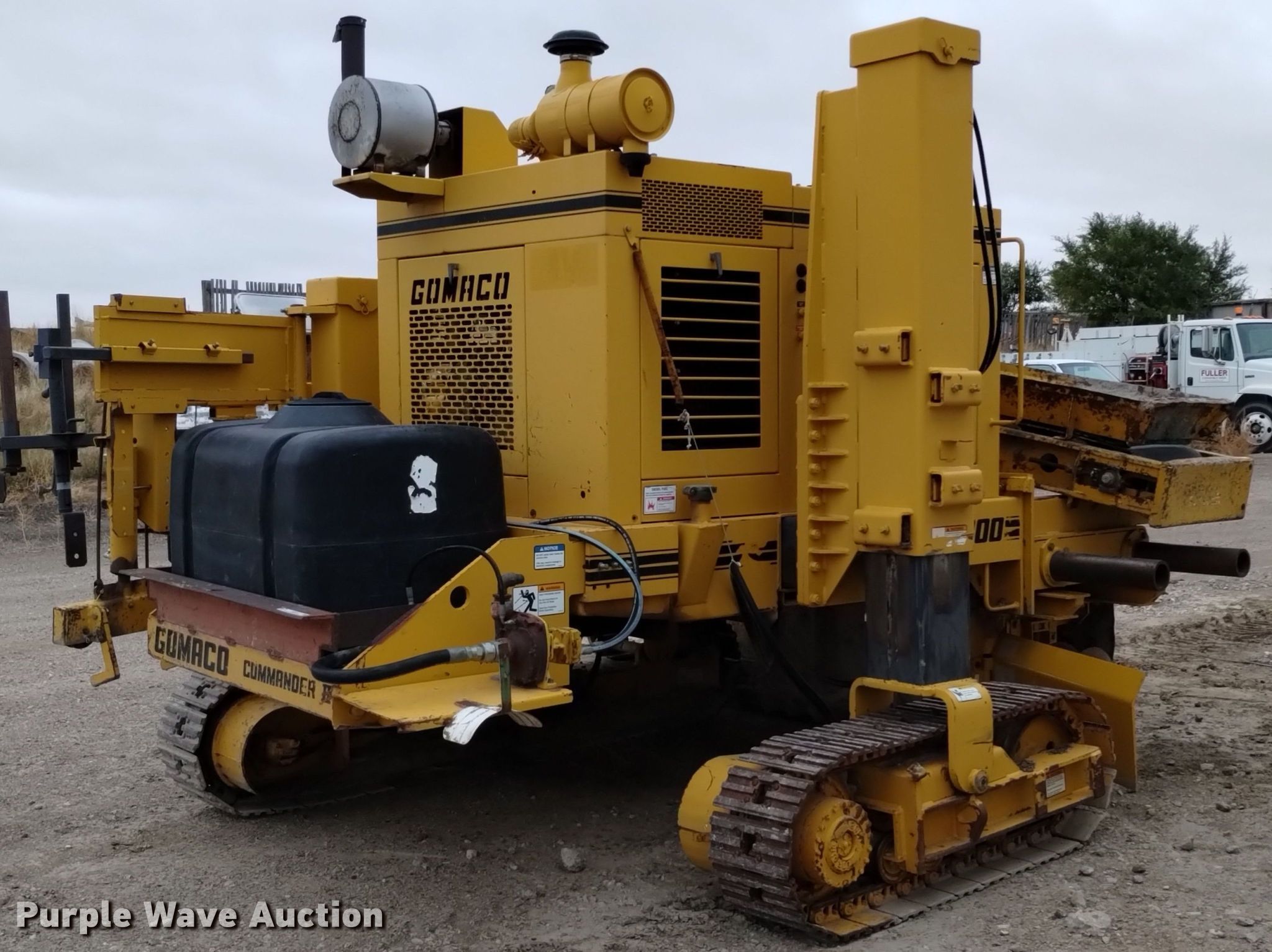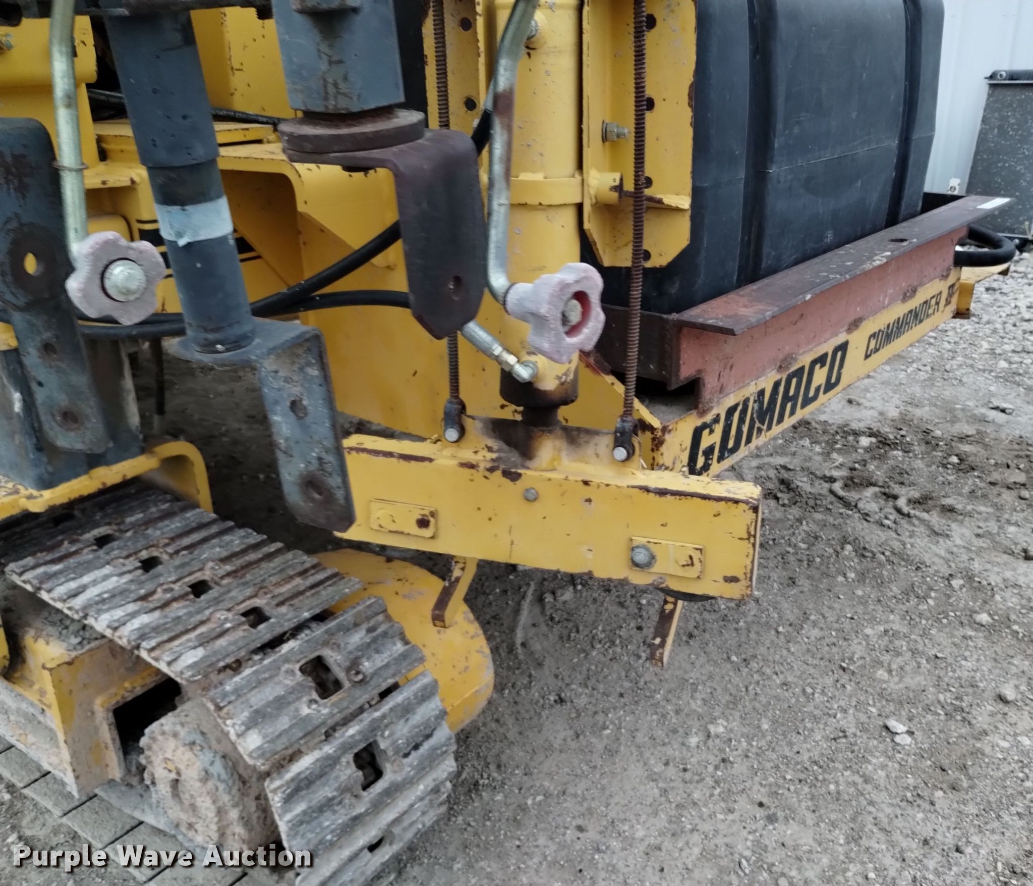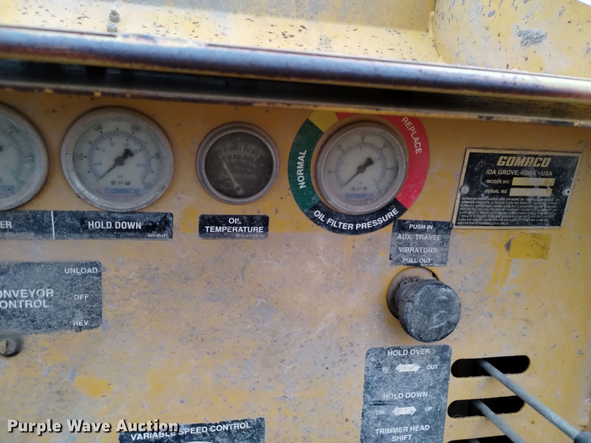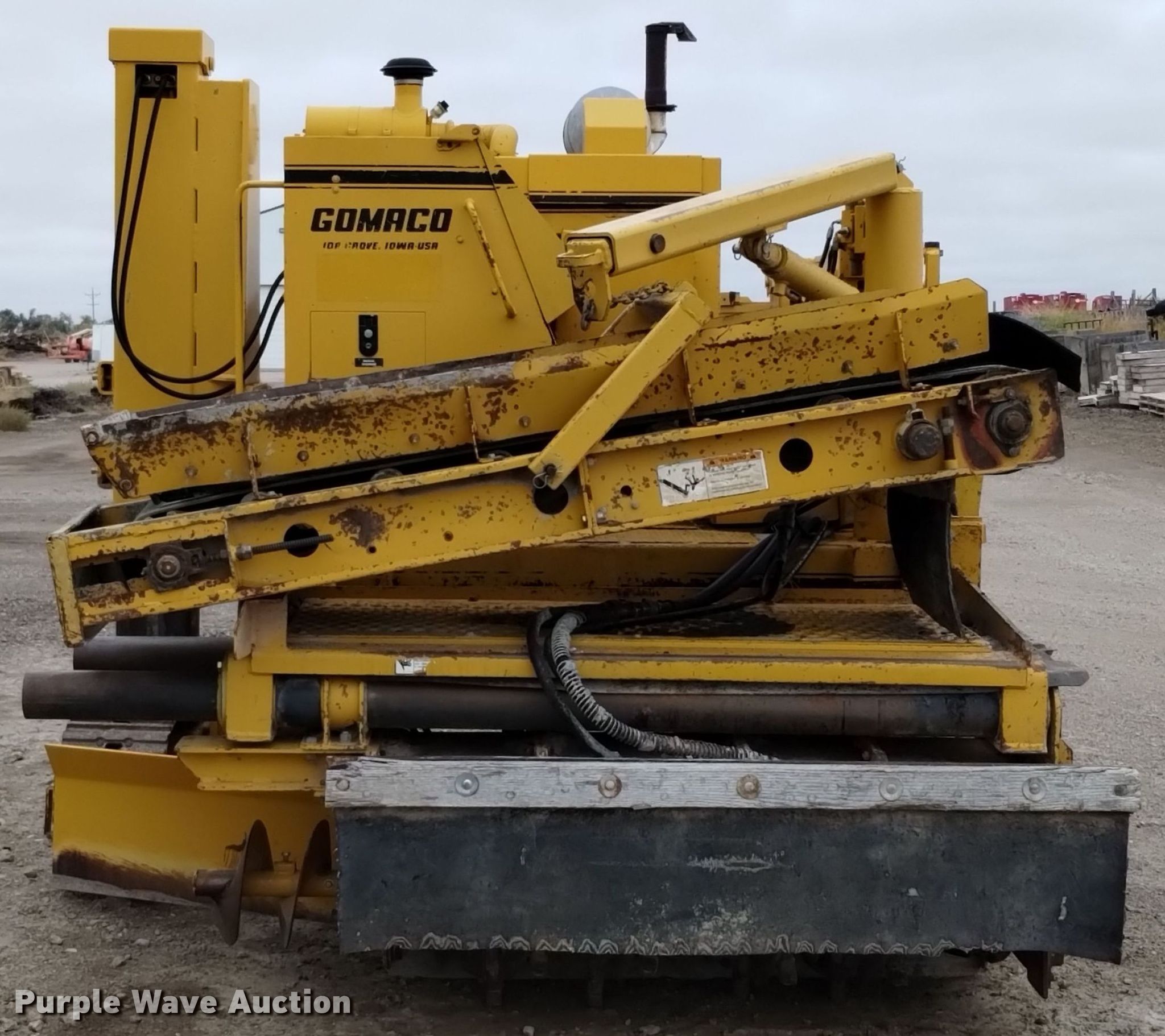 2006 Gomaco GT 6200 Commander II slipform paver. Hours: 1,786 on meter, Serial: 903300123. Engine Cylinders: 4, Fuel type: Diesel. Transmission Hydrostatic. Features Cutting head Width: 48", Conveyor 6.5' L x 20" W, Water system Tank capacity: 150 gallons, Additional features Telescoping frame, (4) feelers. Tracks Width: 12", Steel, Grouser pads: Triple. Notes (4) string line wands. Fuller Construction. Chadron, NE 69337