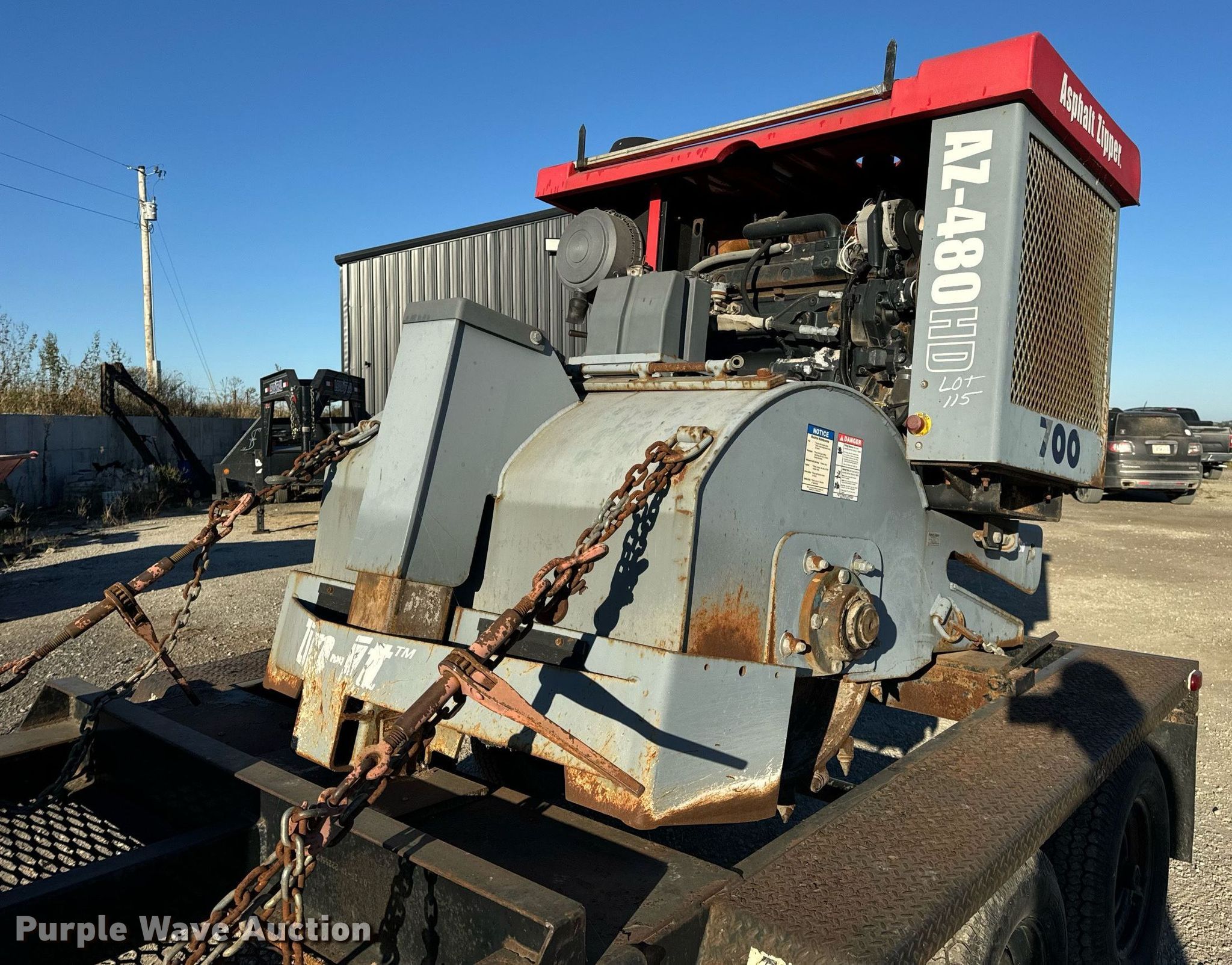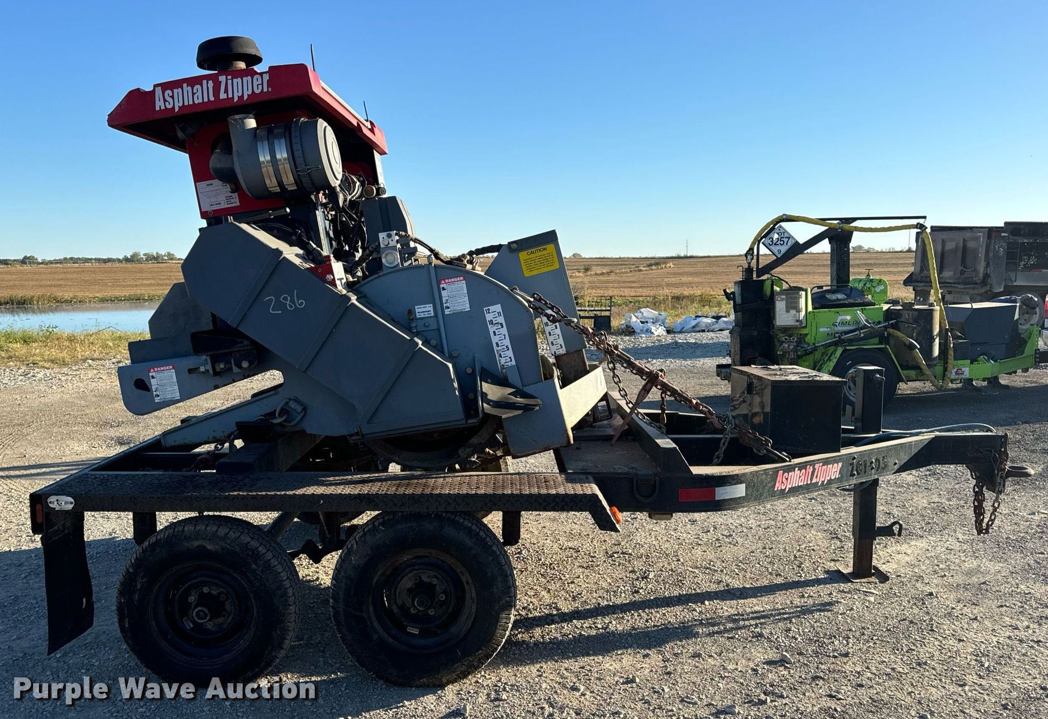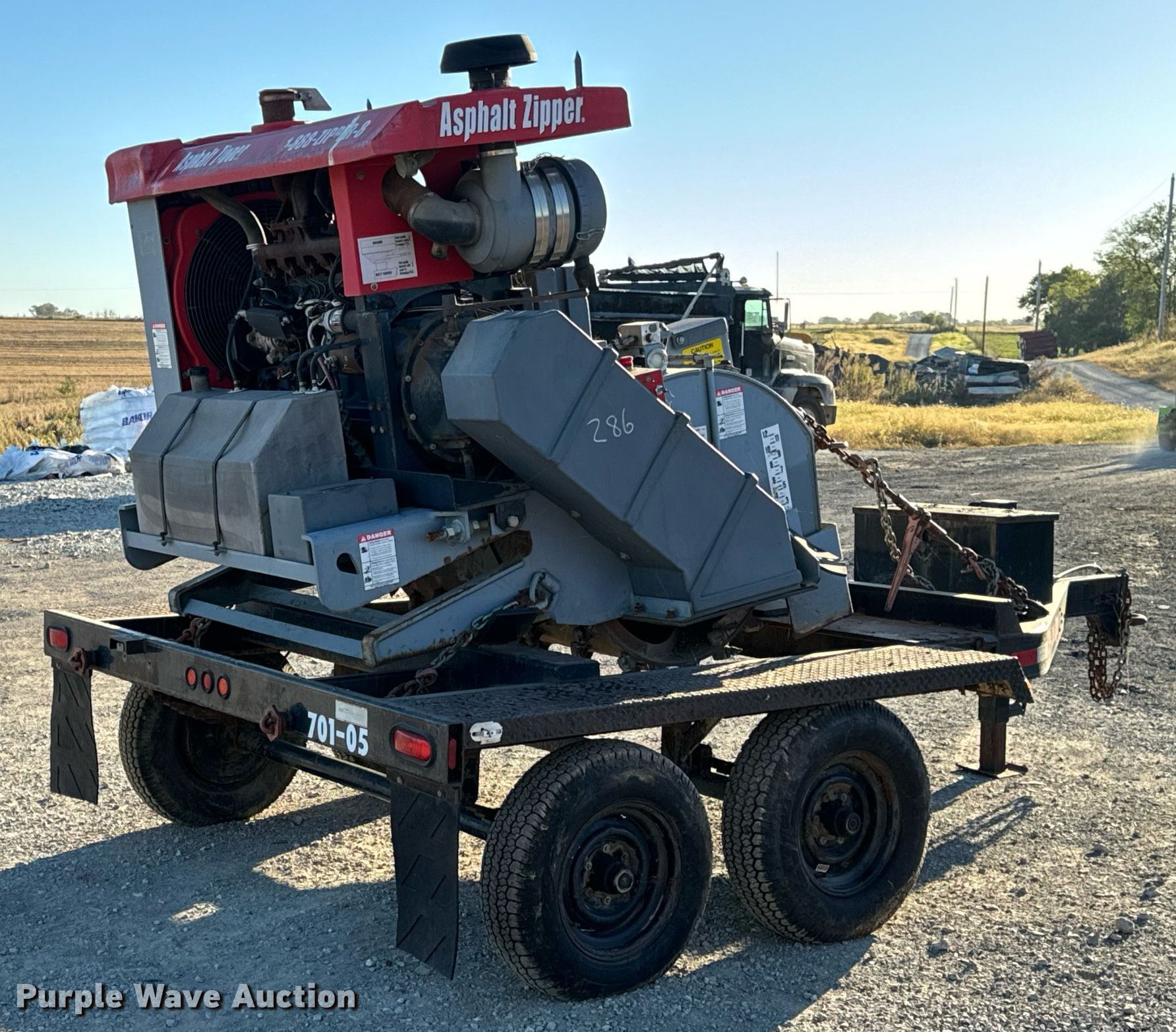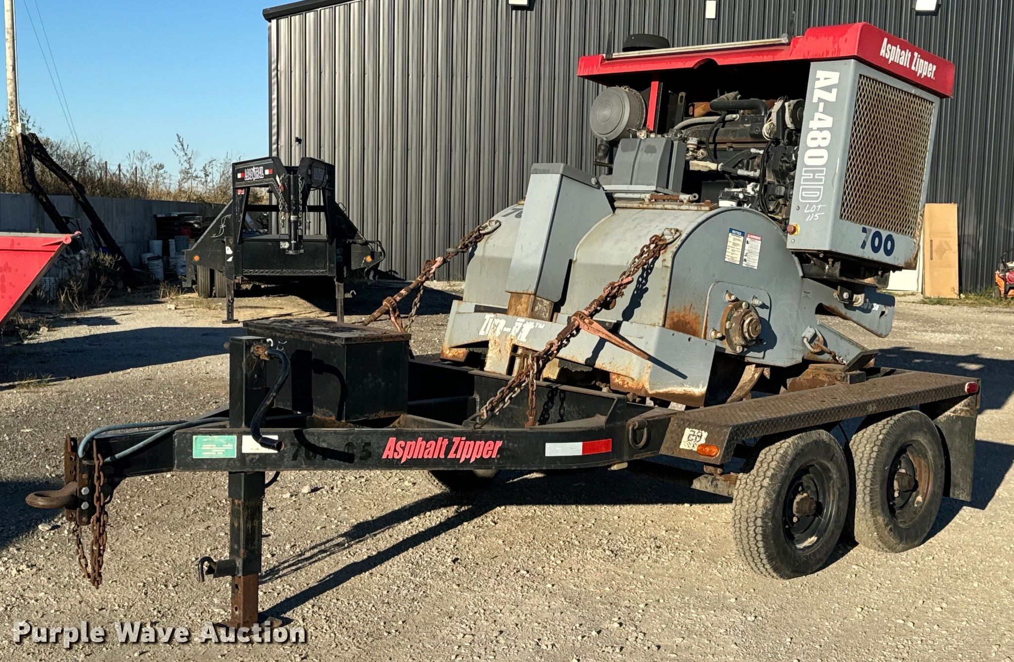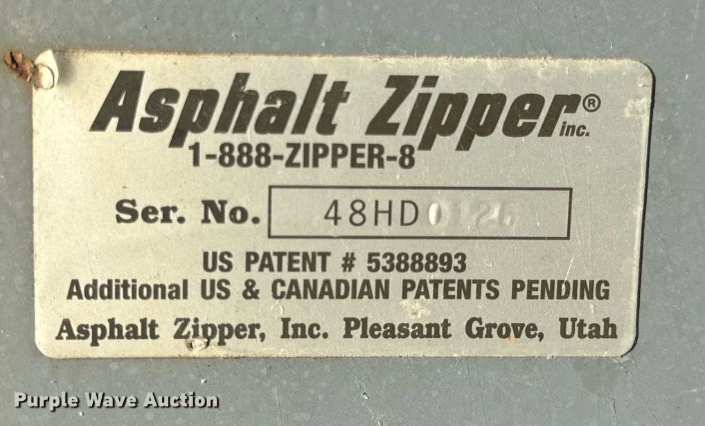 2005 Asphalt Zipper AZ-480HD cold planer. Hours: 89 on meter, Serial: 48HD0128. Engine John Deere 6068, Displacement: 6.8L, Cylinders: 6, Fuel type: Diesel. Features Cutting head Width: 48", Diameter: 36", Teeth, Carbide. 2005 Williamson Ocean-Trailers Model BT0011, Vin: 109FS08255U023009, Hitch: Pintle, Suspension: Spring, Axle: Tandem, Electric brake, GVWR: 10,000lbs. Tires Size: ST225/75D15. Notes Trailer weather cracking. Transfer of ownership documentation will be a bill of sale.. Murphys Sealcoating. Clarksburg, MO 65025