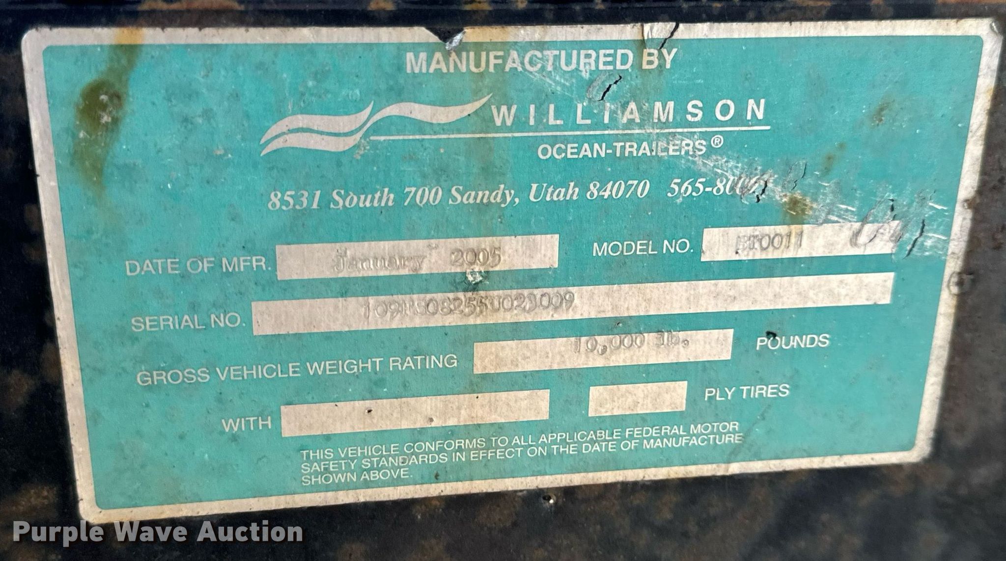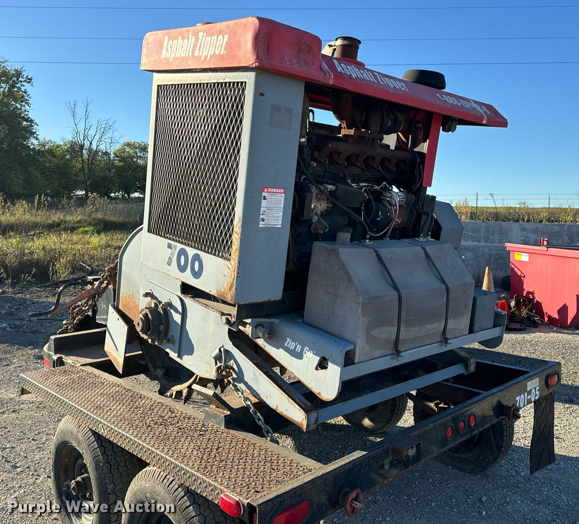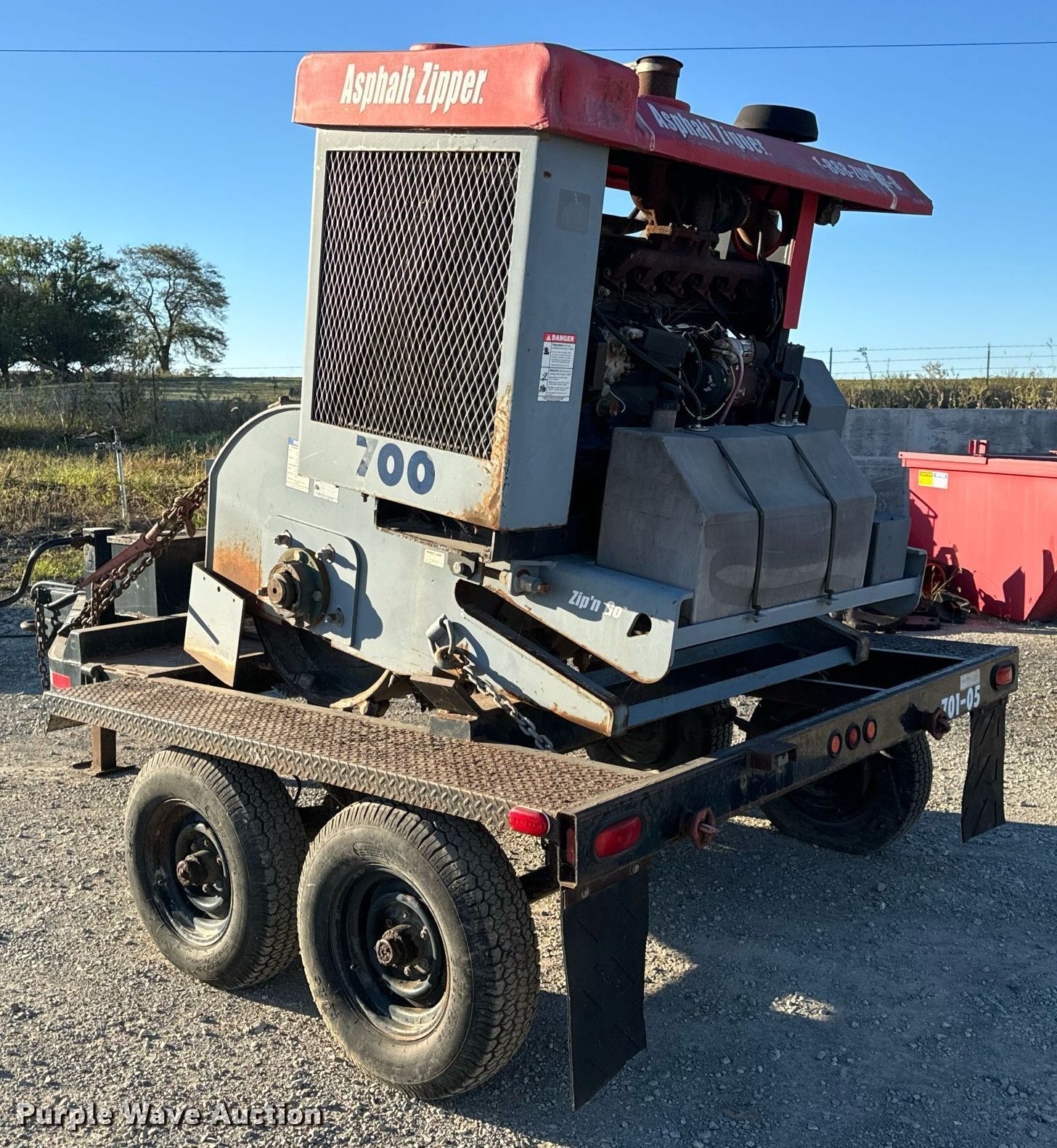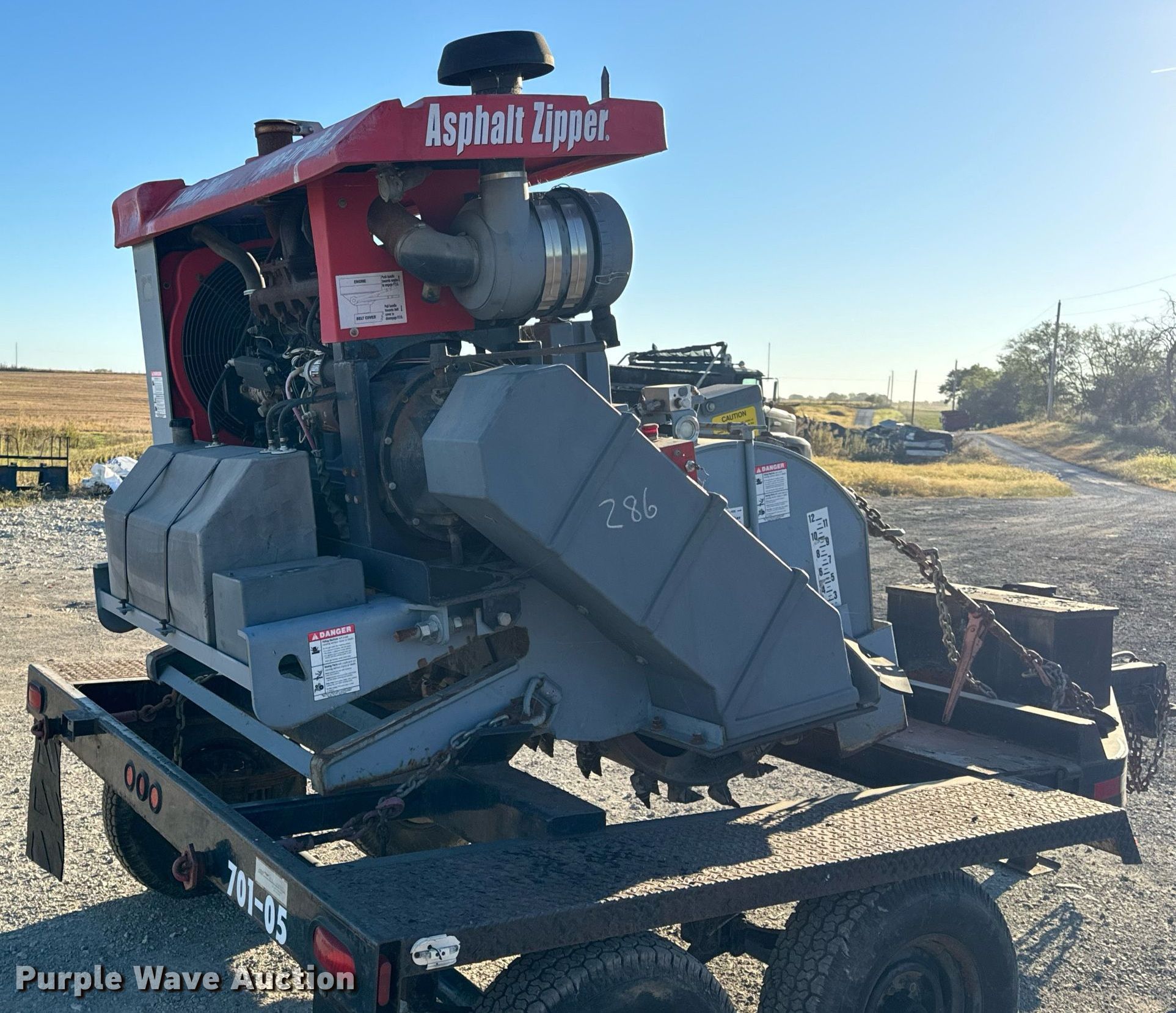 2005 Asphalt Zipper AZ-480HD cold planer. Hours: 89 on meter, Serial: 48HD0128. Engine John Deere 6068, Displacement: 6.8L, Cylinders: 6, Fuel type: Diesel. Features Cutting head Width: 48", Diameter: 36", Teeth, Carbide. 2005 Williamson Ocean-Trailers Model BT0011, Vin: 109FS08255U023009, Hitch: Pintle, Suspension: Spring, Axle: Tandem, Electric brake, GVWR: 10,000lbs. Tires Size: ST225/75D15. Notes Trailer weather cracking. Transfer of ownership documentation will be a bill of sale.. Murphys Sealcoating. Clarksburg, MO 65025