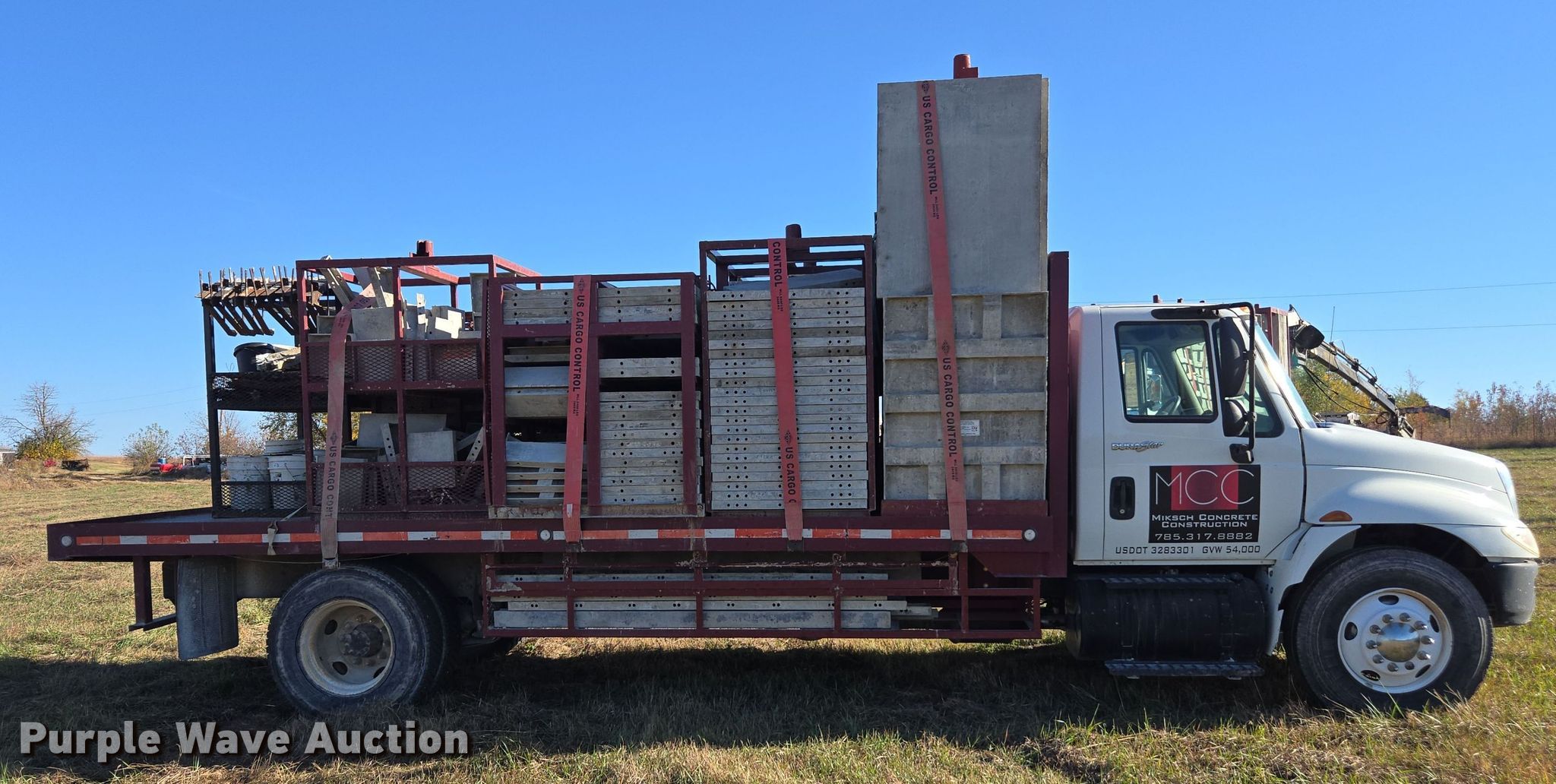2008 International 4300 flatbed truck. Miles: 146,190 on odometer, Hours: 6,899 on meter, VIN: 1HTMMAAN18J648123. Engine International Maxxforce GDT245, Displacement: 7.6L, Cylinders: 6, Fuel type: Diesel. Transmission Automatic. Chassis Axles: Single, Suspension: Air, Brakes: Air. Interior AC, Heat, Cruise control. Features Flatbed 20' L x 102" W. Tires Size: 11R22.5. Notes Windshield chipped or cracked, Concrete forms included, see inventory link below. View inventory for more information. Kansas electronic title. Title has a lien that will be released following the close of the auction. A paper title will be printed once the lien is released. Title distribution may be delayed up to 30 days from verification of funds. Miksch Concrete Construction. Wamego, KS 66547