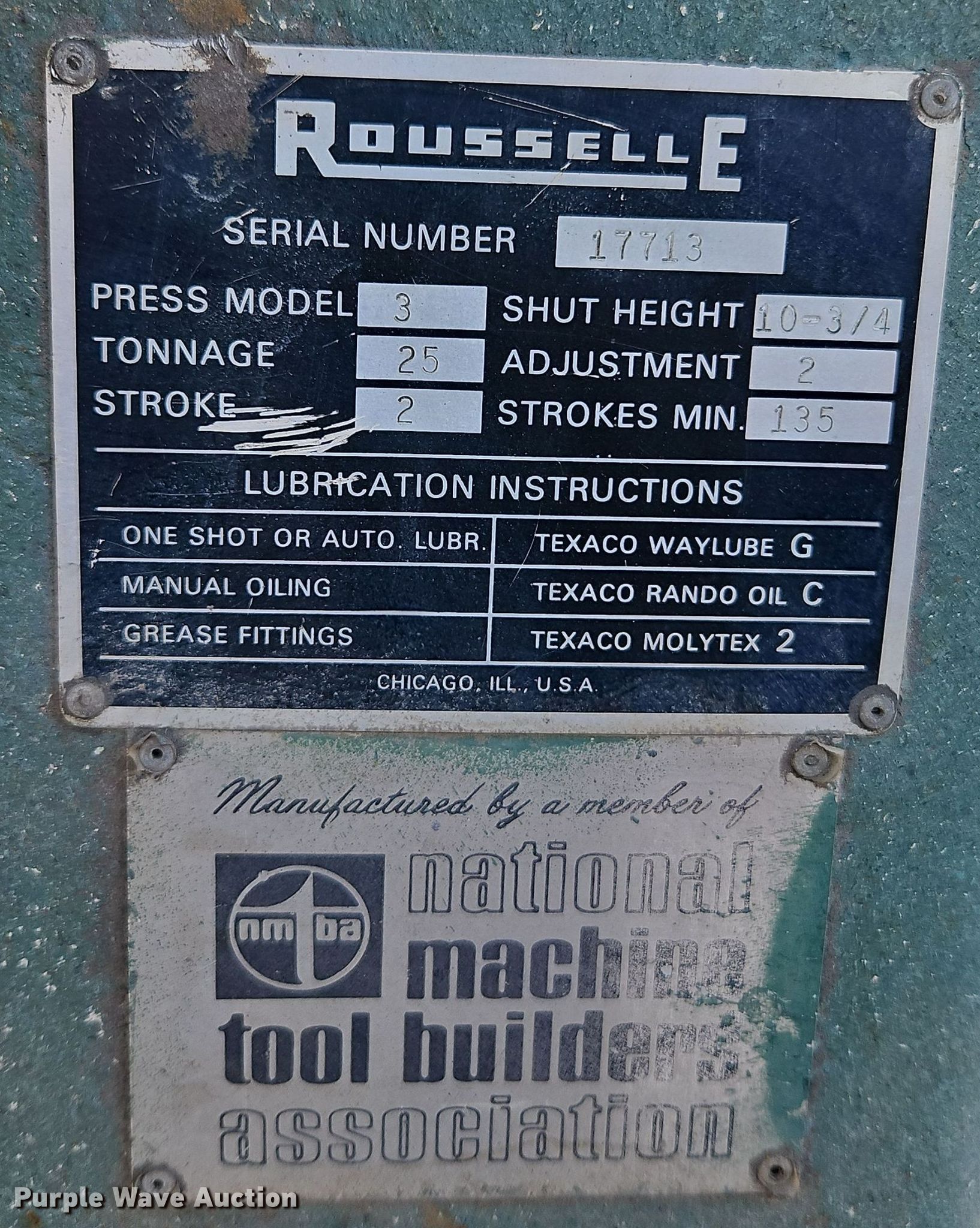 Purple Wave is selling a used Presses in Missouri. This item is a Rousselle No 3 punch press with the following: Serial: 17713