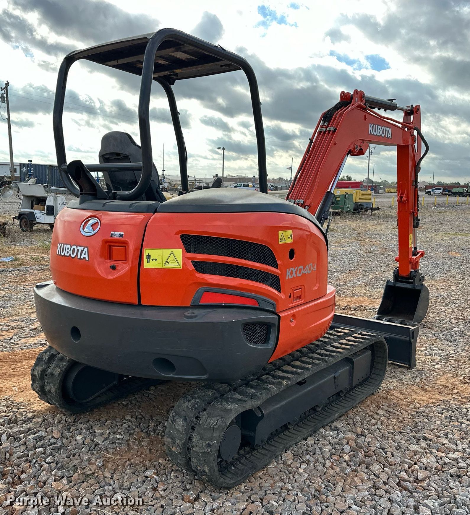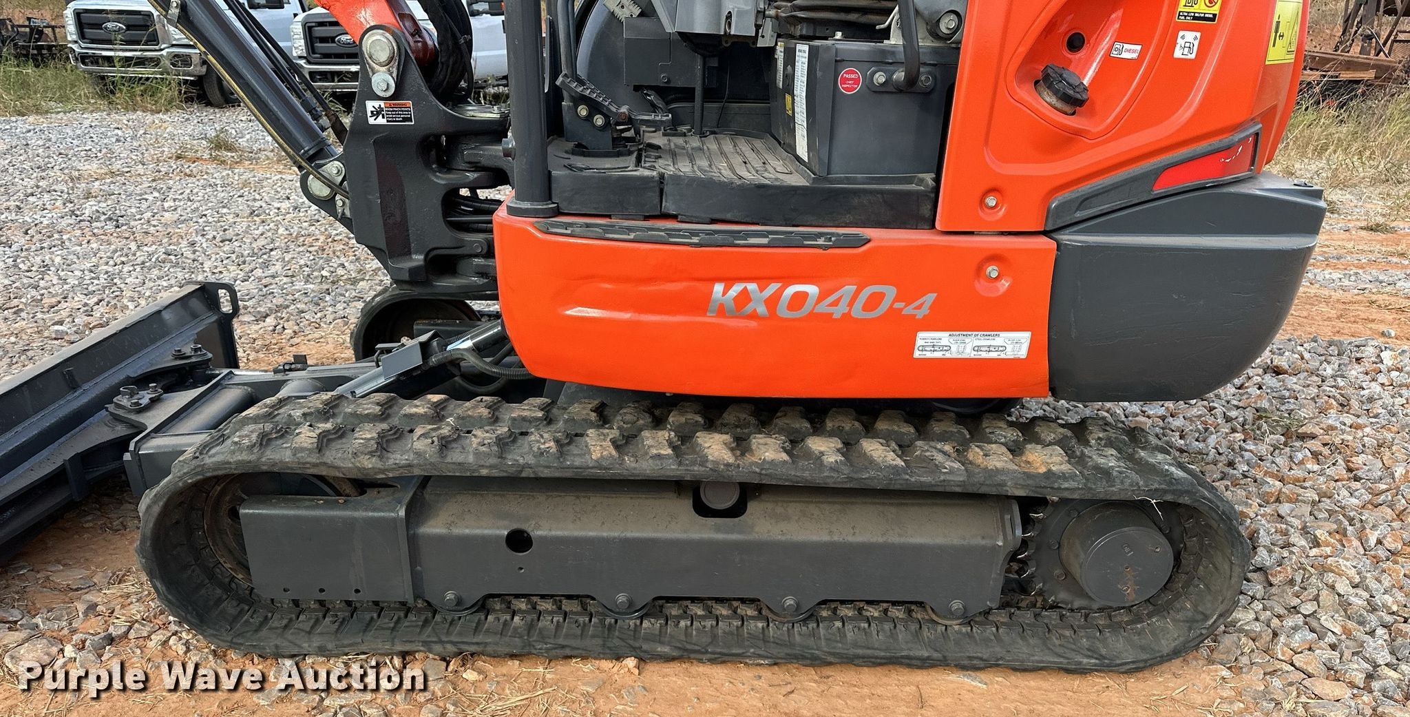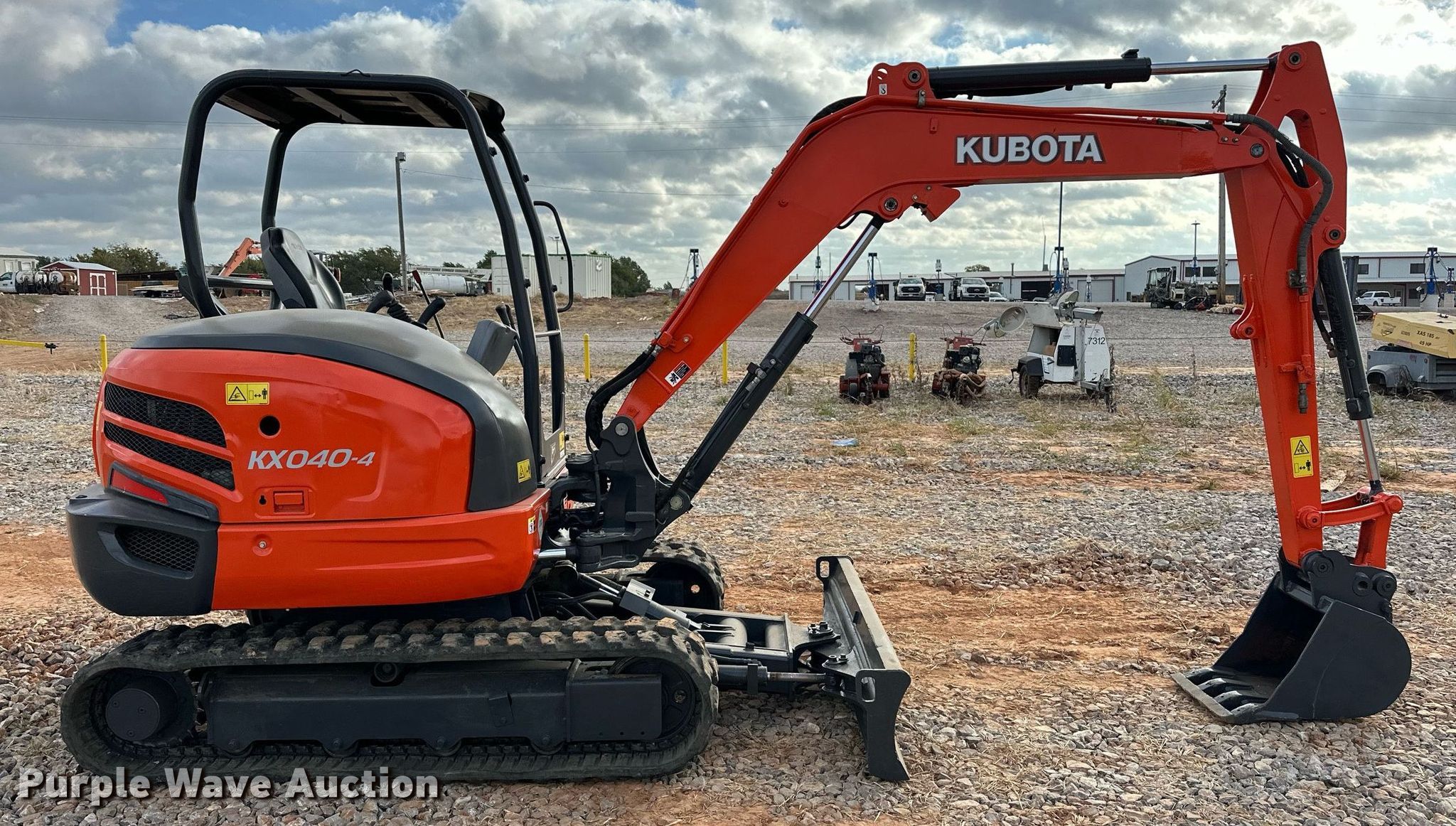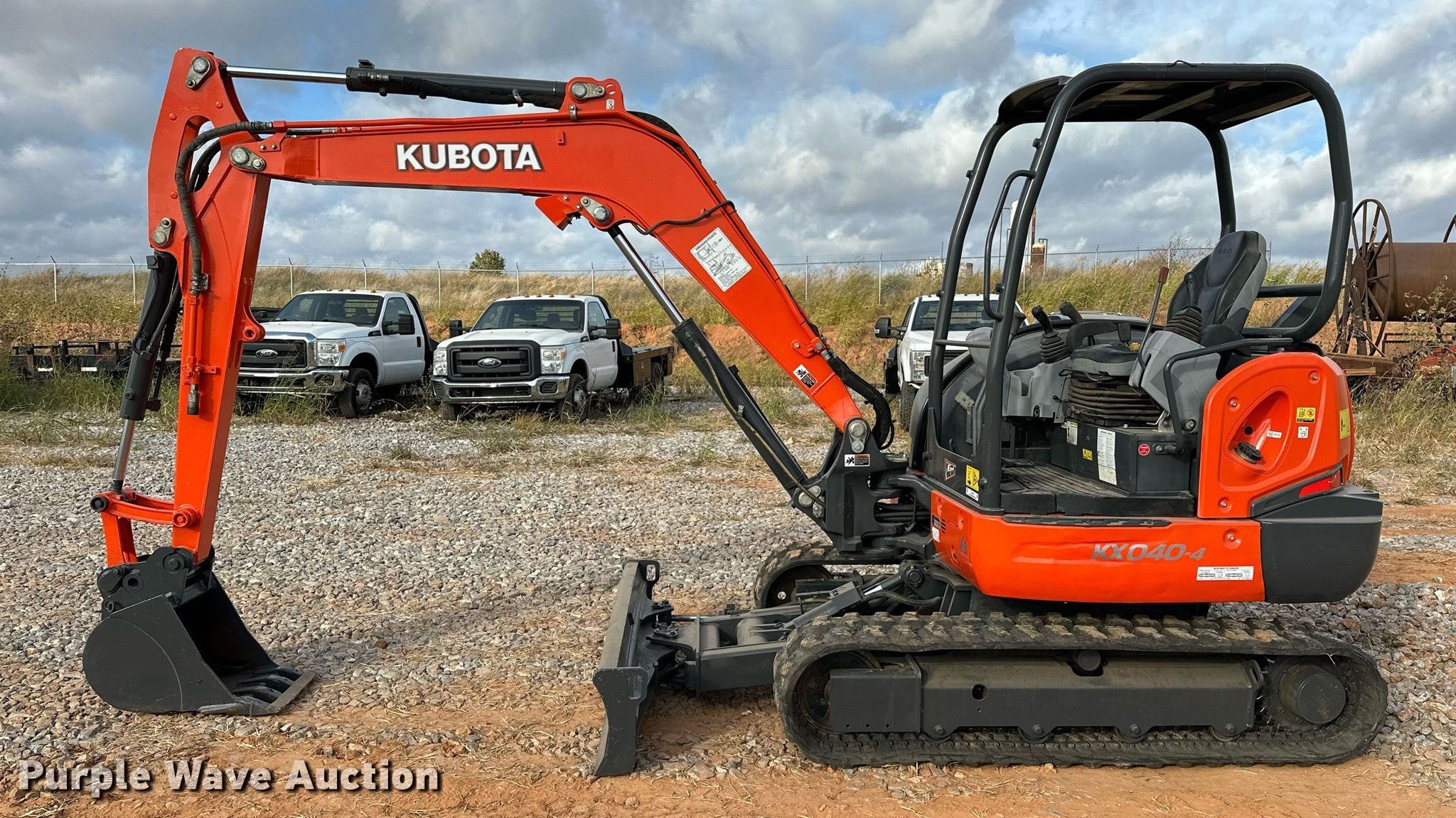 Purple Wave is selling a used Mini Excavator in Oklahoma. This item is a 2015 Kubota KX040-4 mini excavator with the following: Hours: 3,682 on meter, Serial: JKUK0404C01H22386
