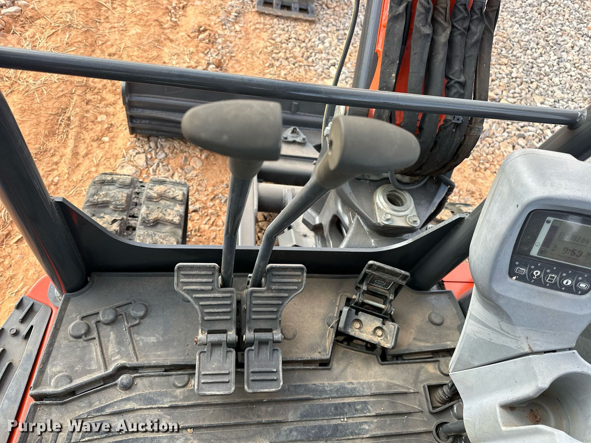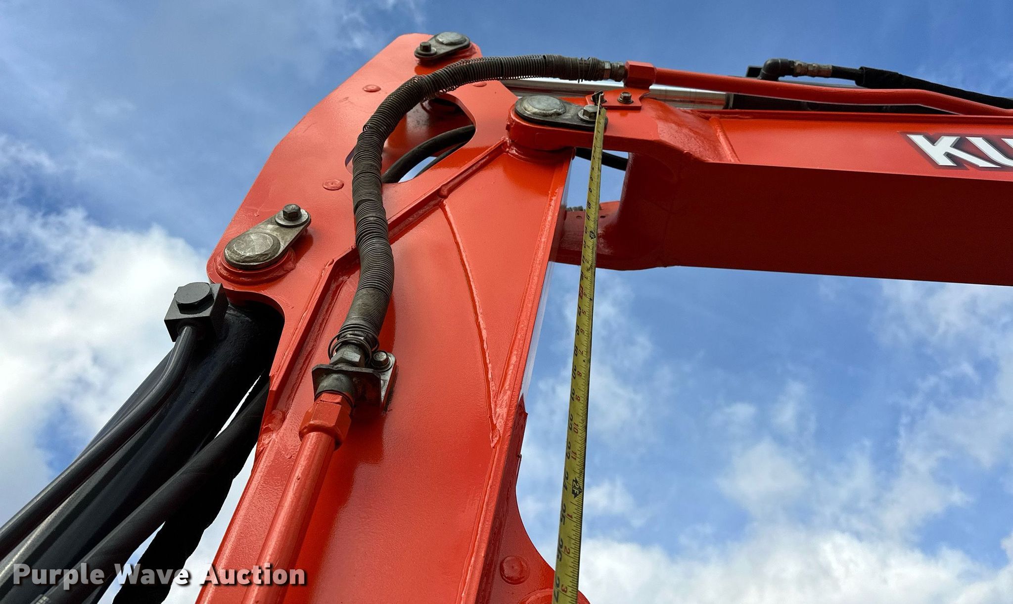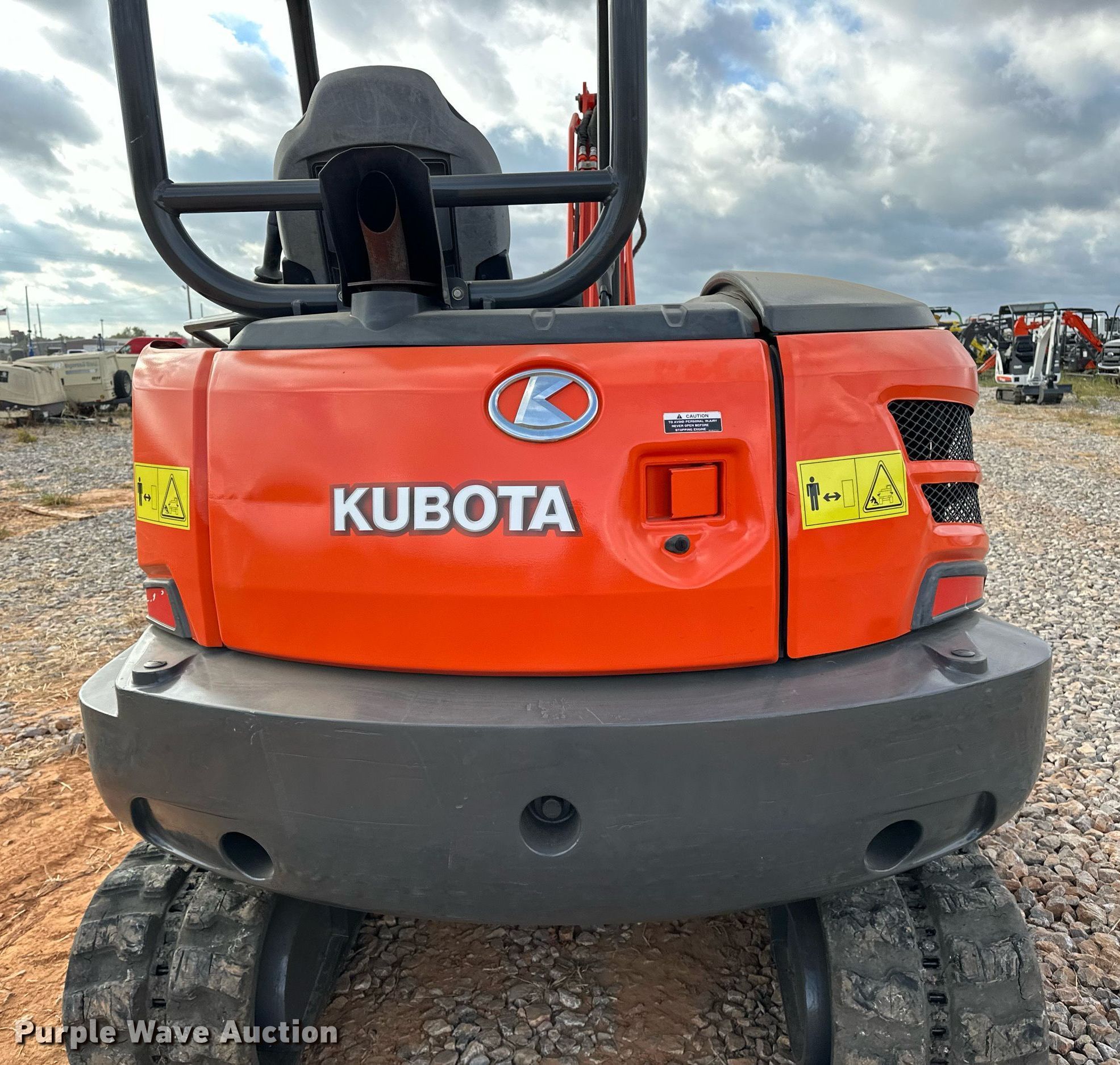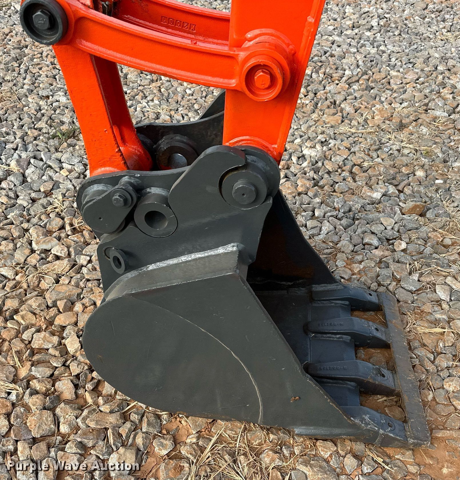 2015 Kubota KX040-4 mini excavator. Hours: 3,682 on meter, Serial: JKUK0404C01H22386. Engine Kubota D1B03, Displacement: 1.8L, Cylinders: 3, Fuel type: Diesel. Transmission Hydrostatic, Two speed travel. Operators station OROPS, Pattern changer. Features Auxiliary hydraulics Standard, Two-way, Counter weights, Backfill blade Width: 67", Boom Swing, Stick Stick length: 5' 4", Quick coupler: Mechanical, Bucket Width: 18", Cutting edge: Weld-on, Teeth: 4. Tracks Width: 14", Rubber. Norman, OK 73072