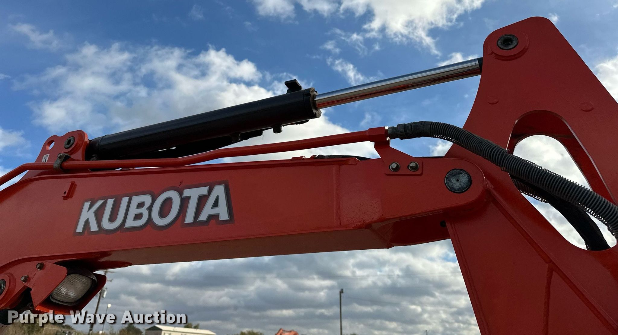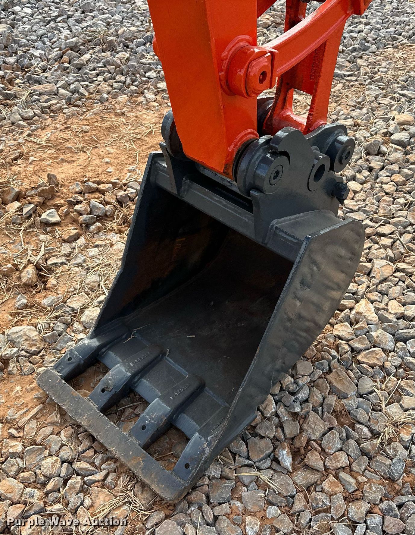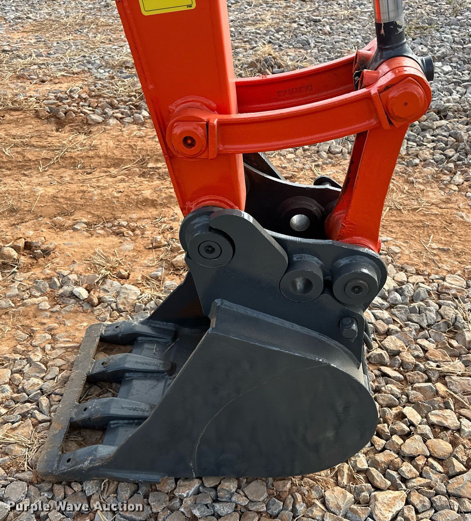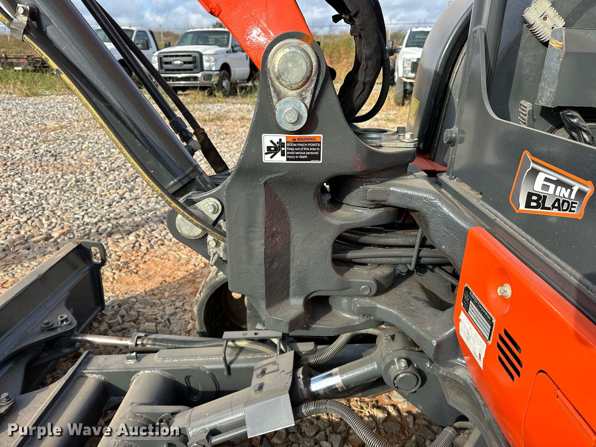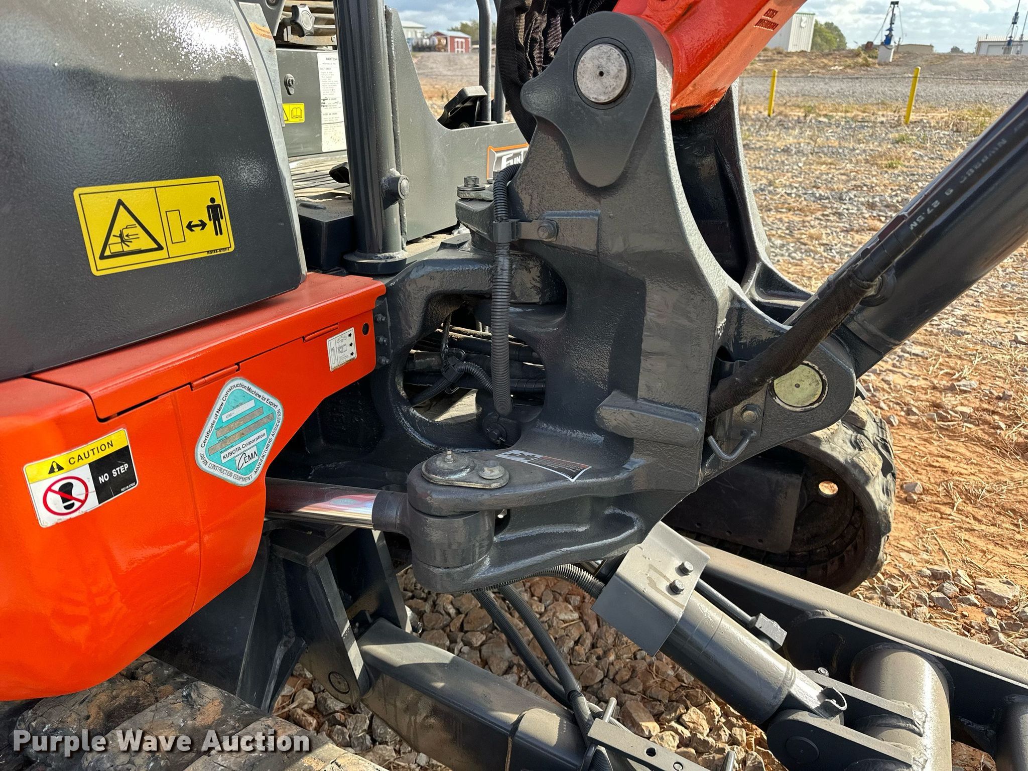 2015 Kubota KX040-4 mini excavator. Hours: 3,682 on meter, Serial: JKUK0404C01H22386. Engine Kubota D1B03, Displacement: 1.8L, Cylinders: 3, Fuel type: Diesel. Transmission Hydrostatic, Two speed travel. Operators station OROPS, Pattern changer. Features Auxiliary hydraulics Standard, Two-way, Counter weights, Backfill blade Width: 67", Boom Swing, Stick Stick length: 5' 4", Quick coupler: Mechanical, Bucket Width: 18", Cutting edge: Weld-on, Teeth: 4. Tracks Width: 14", Rubber. Norman, OK 73072