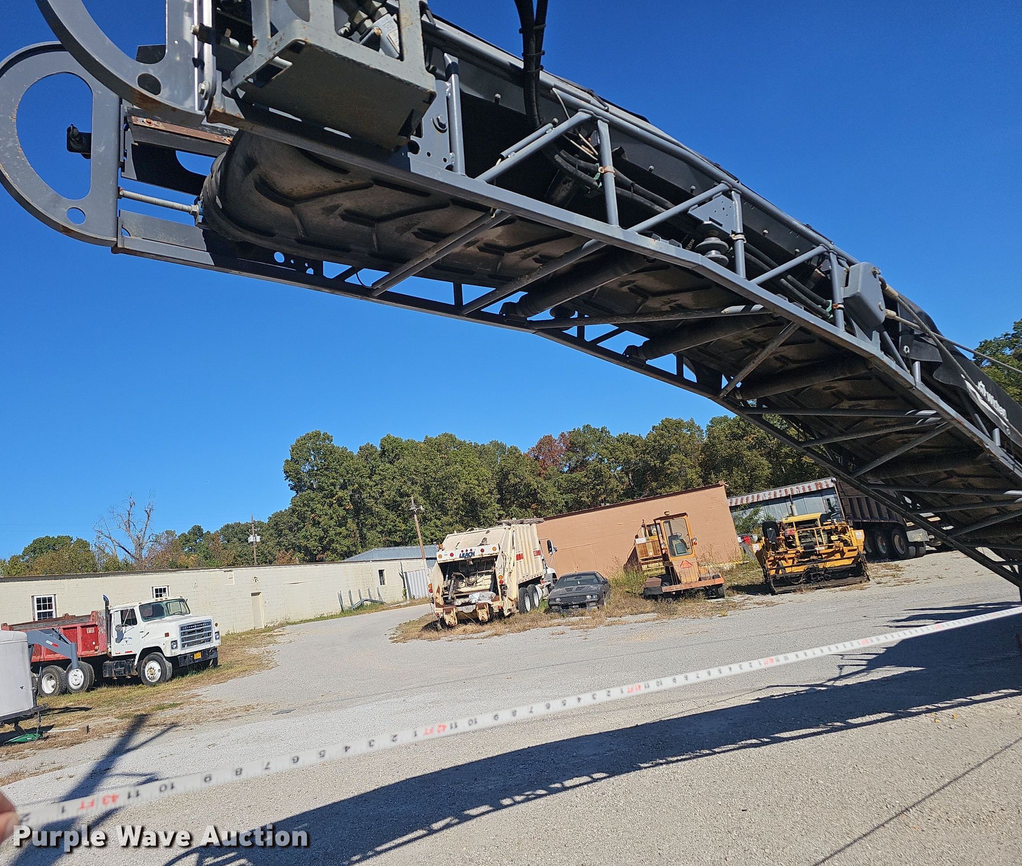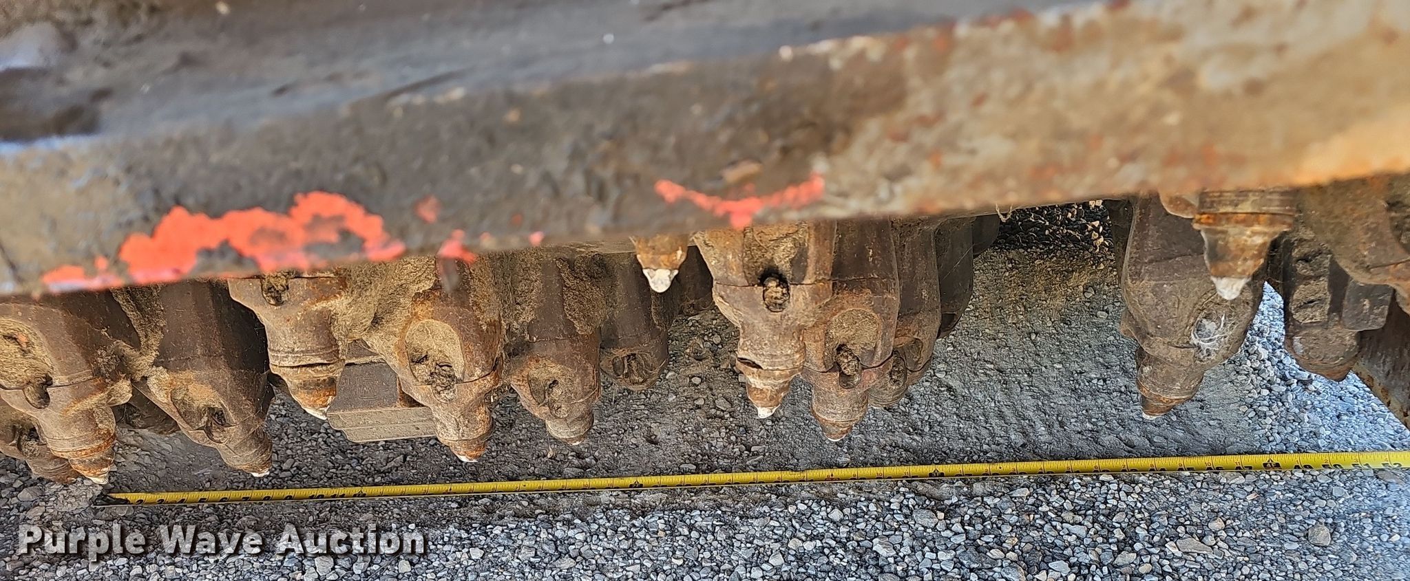 Wirtgen W1200F milling machine. Hours: 2,386 on meter, Serial: 07100970, Unit #: 594. Engine Deutz 1013CP, Cylinders: 6, Fuel type: Diesel. Transmission Hydrostatic. Features Cutting head Width: 48", Diameter: 36", Teeth: Carbide, Water/emulsion application system, Grade & slope controls, Discharge conveyor 25' L x 24" W. Tracks Width: 11", Steel, Rubber pads. Notes Rear hydraulic door lift cylinder leak. Madden Paving. Yellville, AR 72687