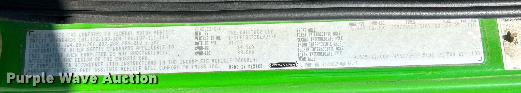 - VIN: 1FVABTAK73DL92430