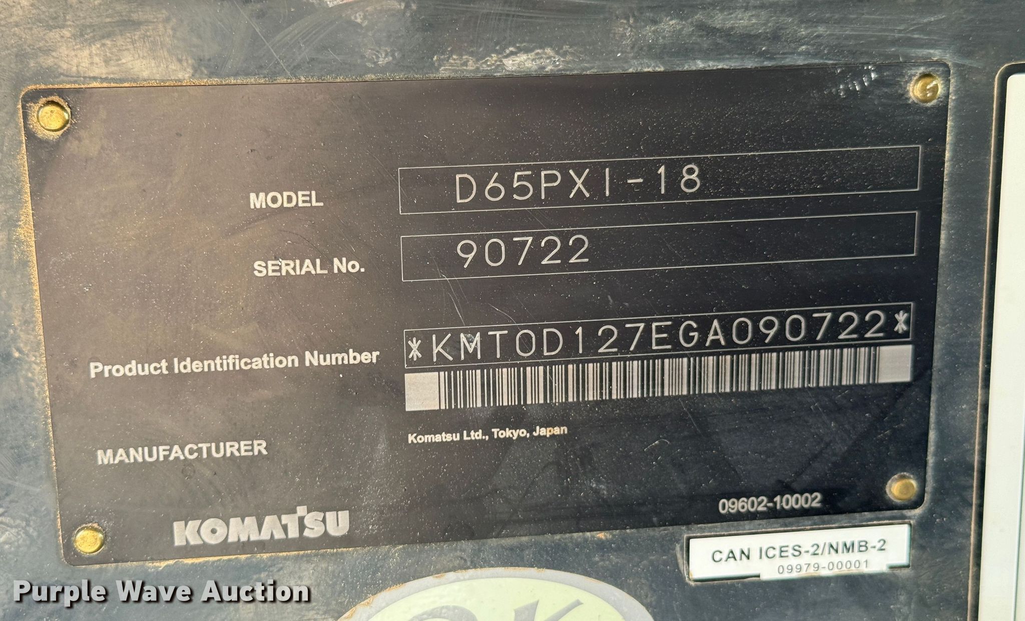 Purple Wave is selling a used Crawler Dozer in Kansas. This item is a 2017 Komatsu D65PXI-18 dozer with the following: Hours: 8,533 on meter, Serial: KMT0D127EGA090722