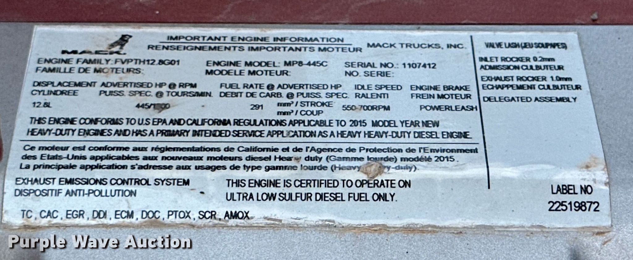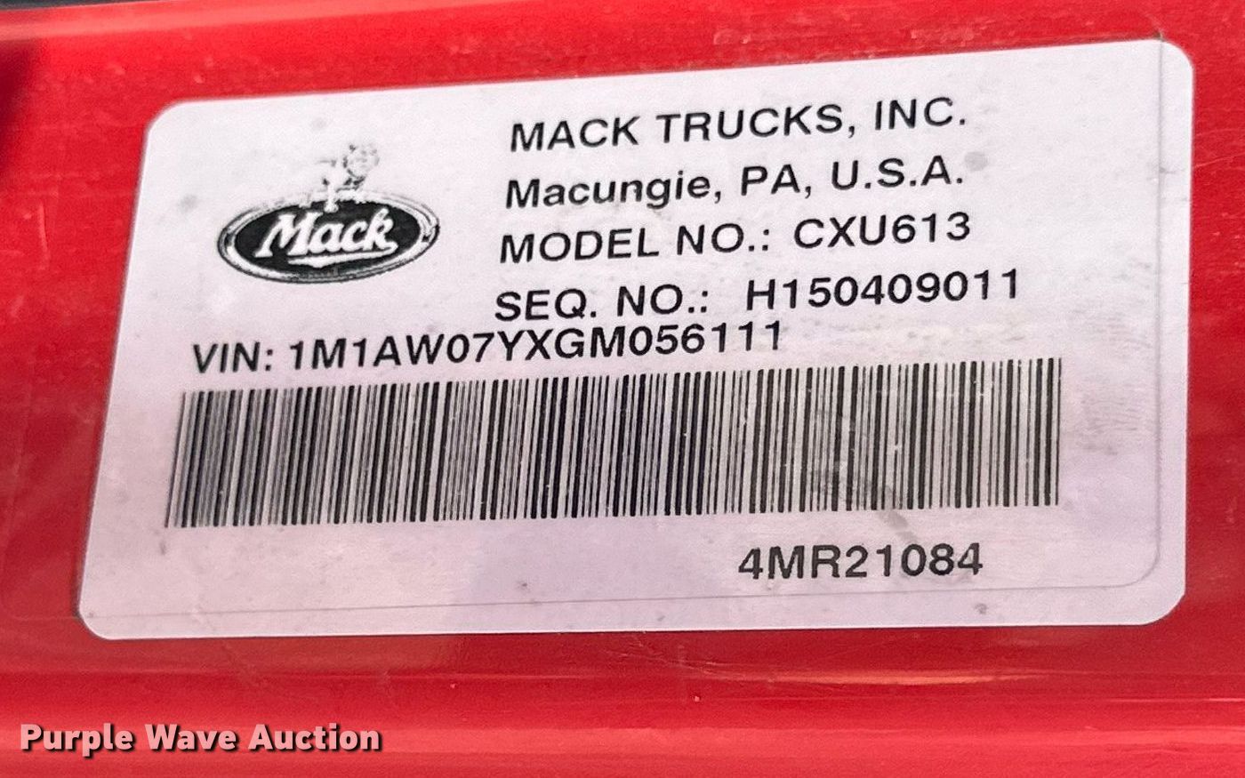 Purple Wave is selling a used Truck Tractor in Texas. This item is a 2016 Mack CXU613 semi truck with the following: Miles: 471,087 on odometer, VIN: 1M1AW07YXGM056111