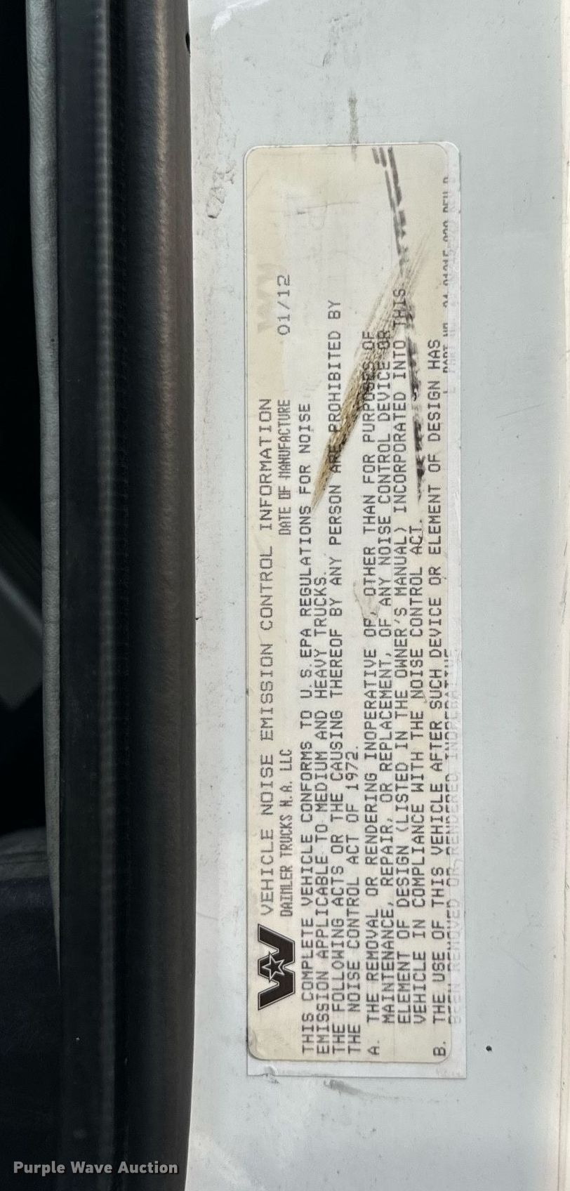 Purple Wave is selling a used Truck Tractor in Indiana. This item is a 2012 Western Star Conventional 4900SB semi truck with the following: Miles: 653,555 on odometer, VIN: 5KJJALDR3CPBR1250