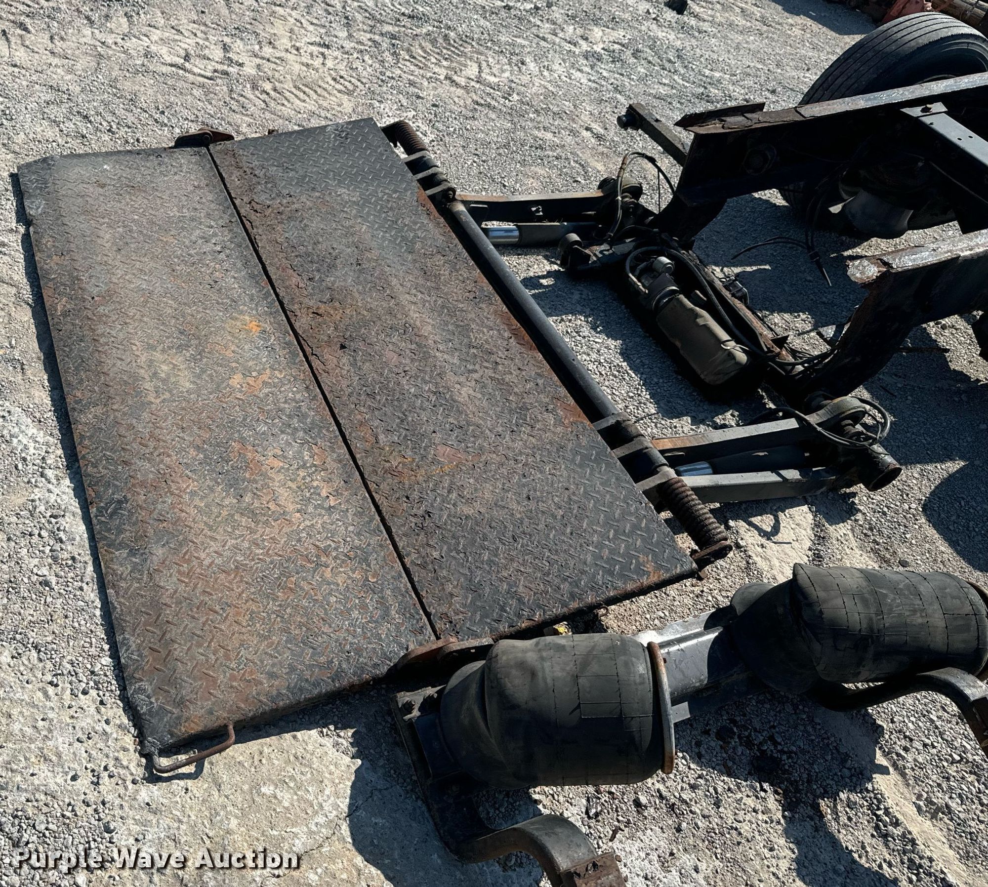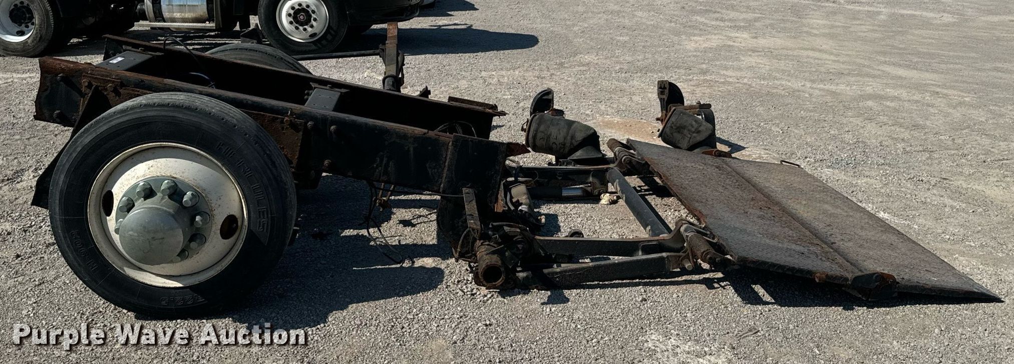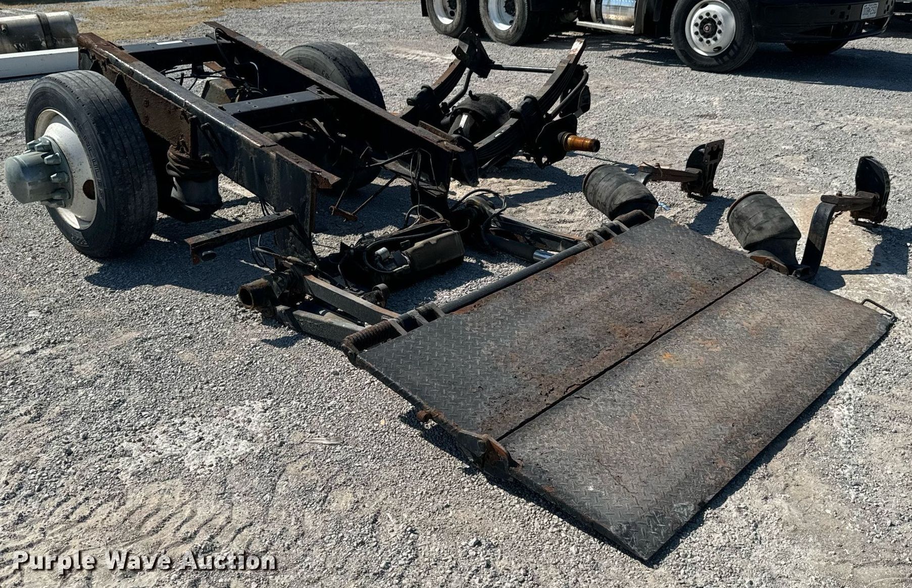 Purple Wave is selling a used Truck Part and Attach. in Oklahoma. This item is a Truck Parts with the following: Axle, Suspension: Spring, Truck rear frame, Suspension: Air, Brakes: Air, Tire size: 255/70R22.5, End lift gate, Inter lift LP33, 78" x 48"
