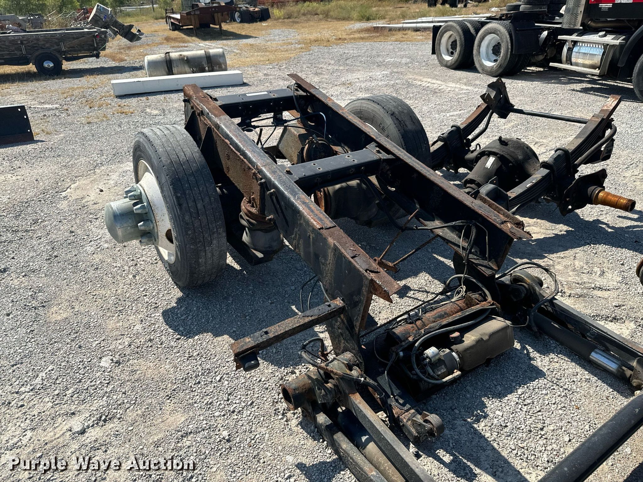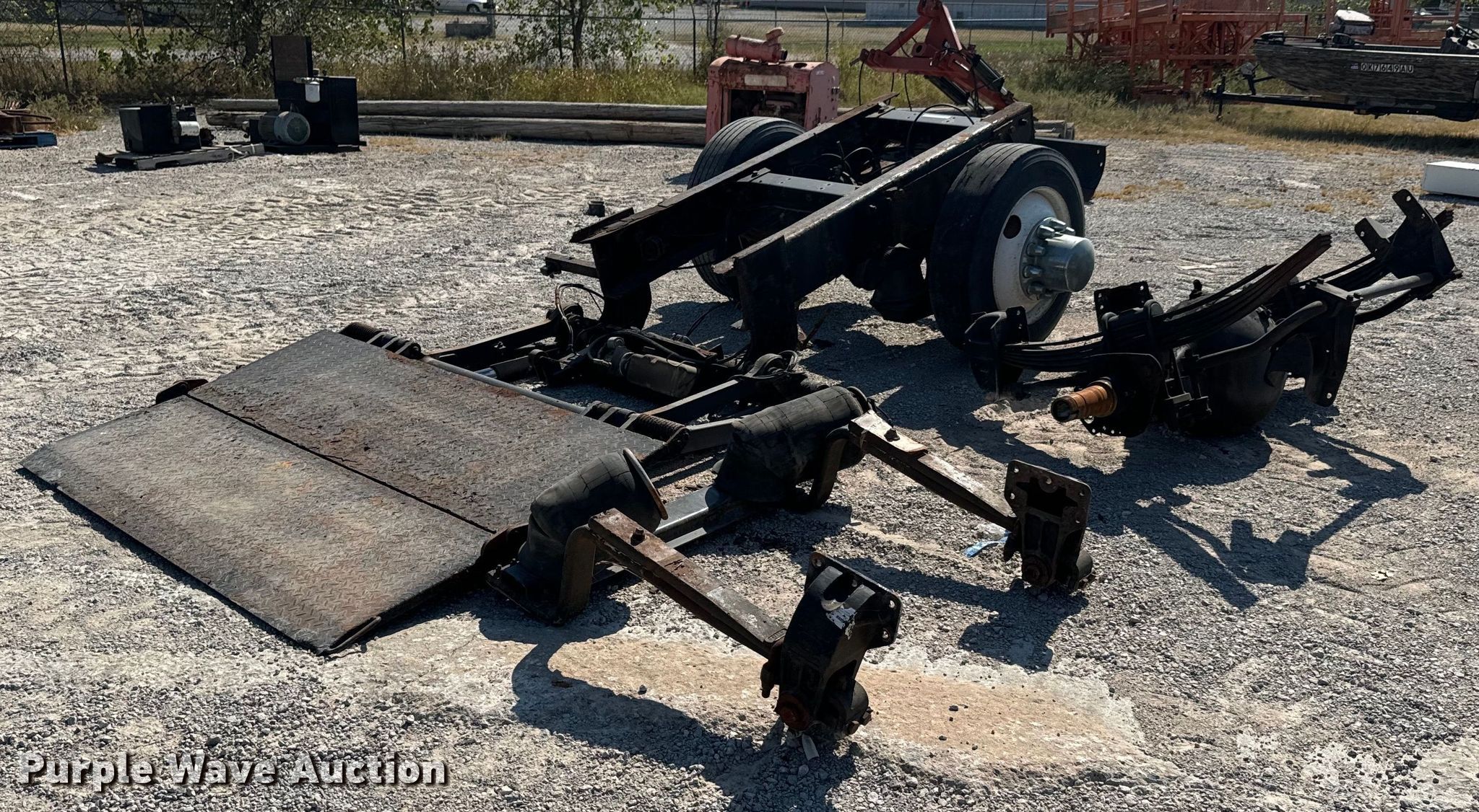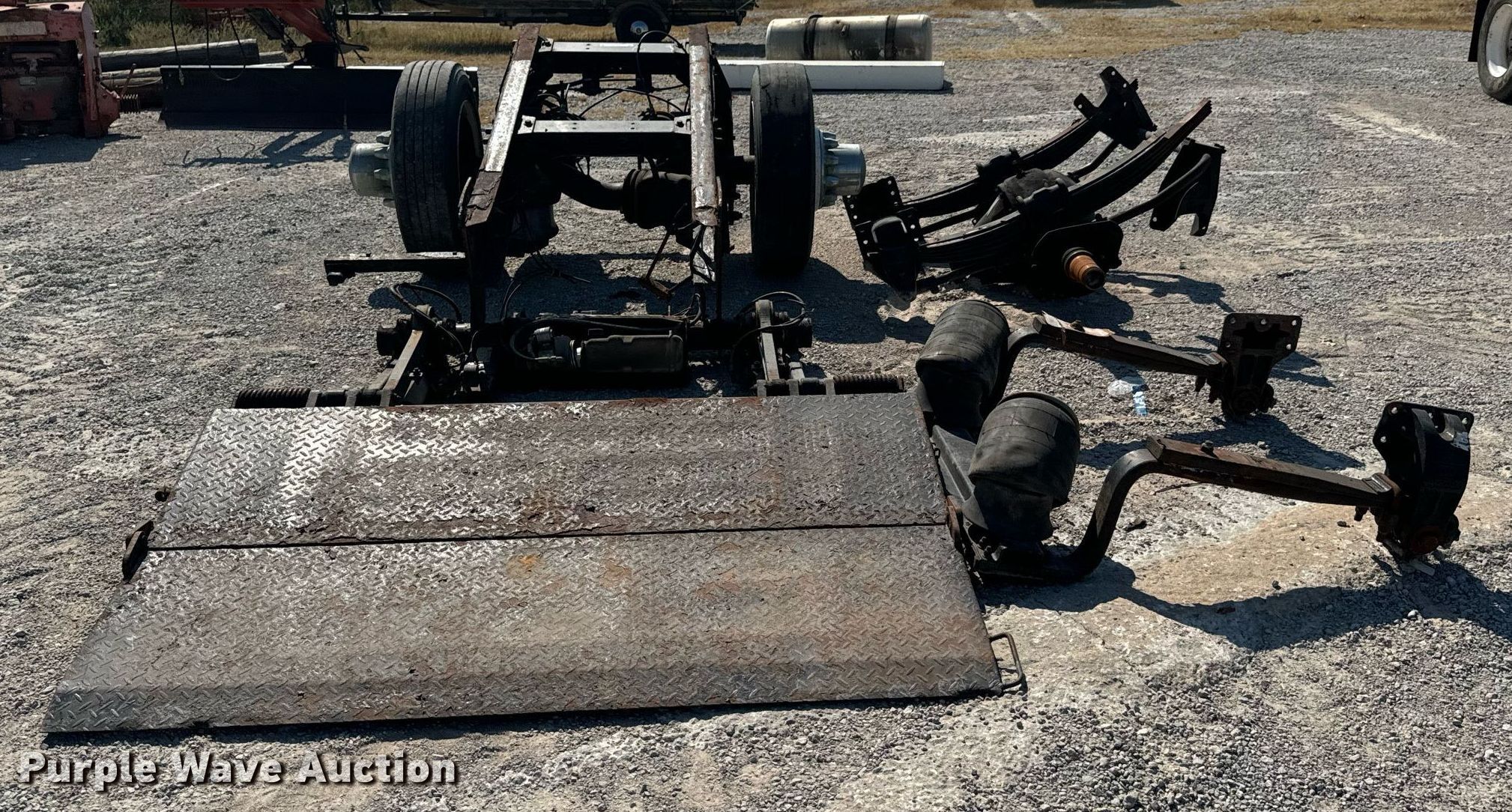 Purple Wave is selling a used Truck Part and Attach. in Oklahoma. This item is a Truck Parts with the following: Axle, Suspension: Spring, Truck rear frame, Suspension: Air, Brakes: Air, Tire size: 255/70R22.5, End lift gate, Inter lift LP33, 78" x 48"