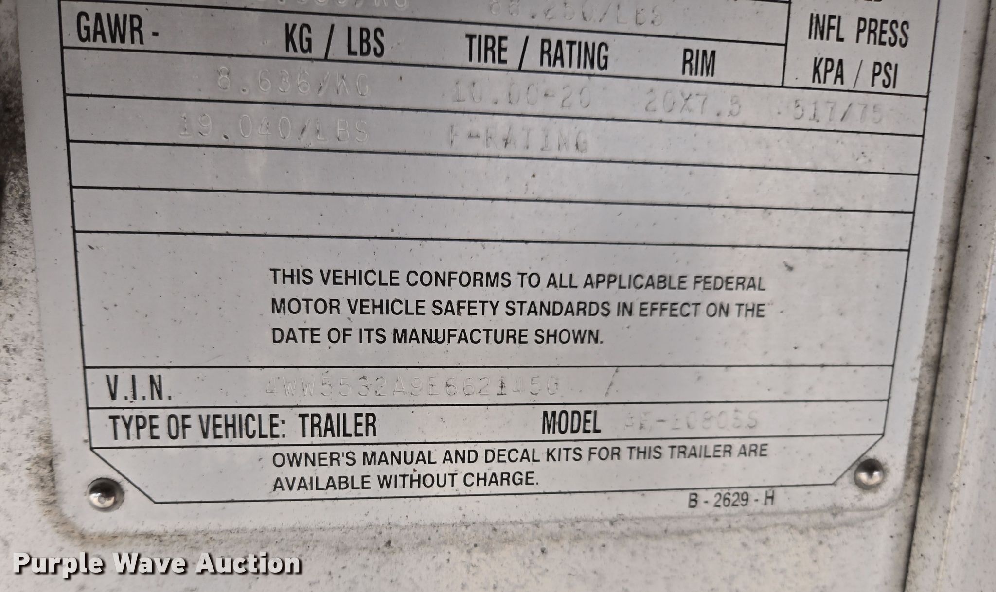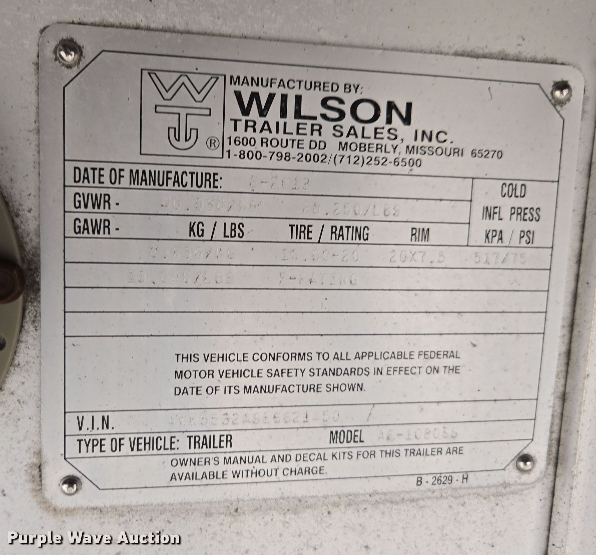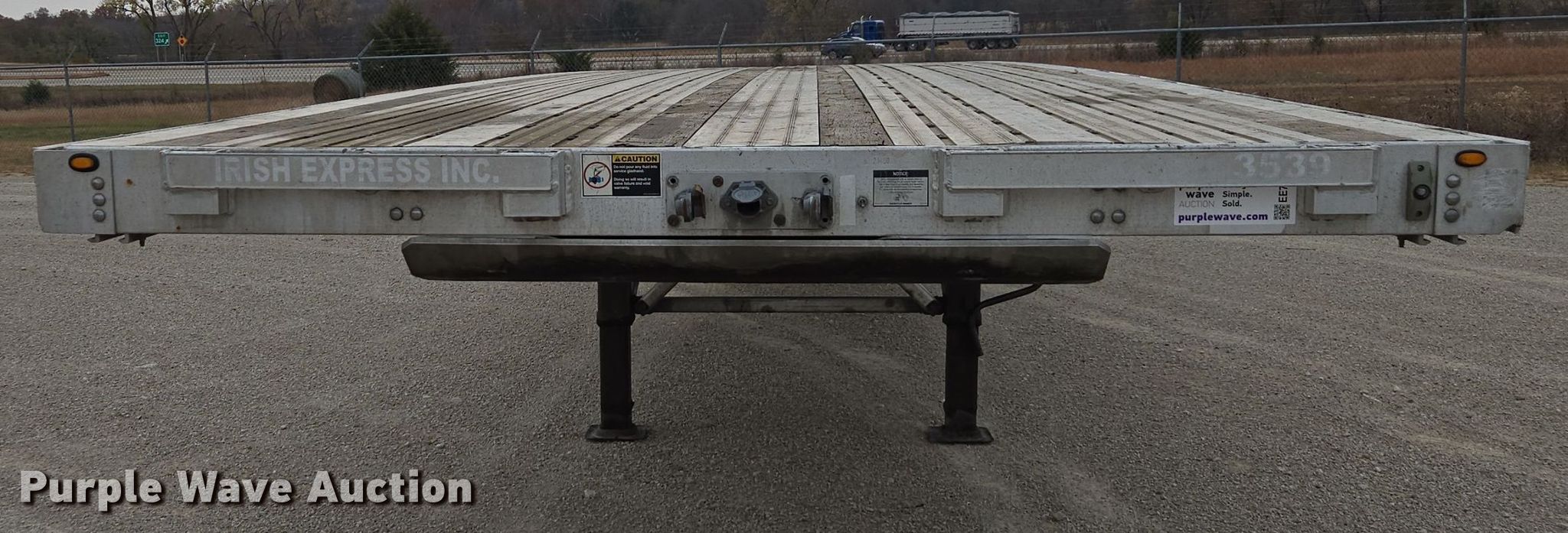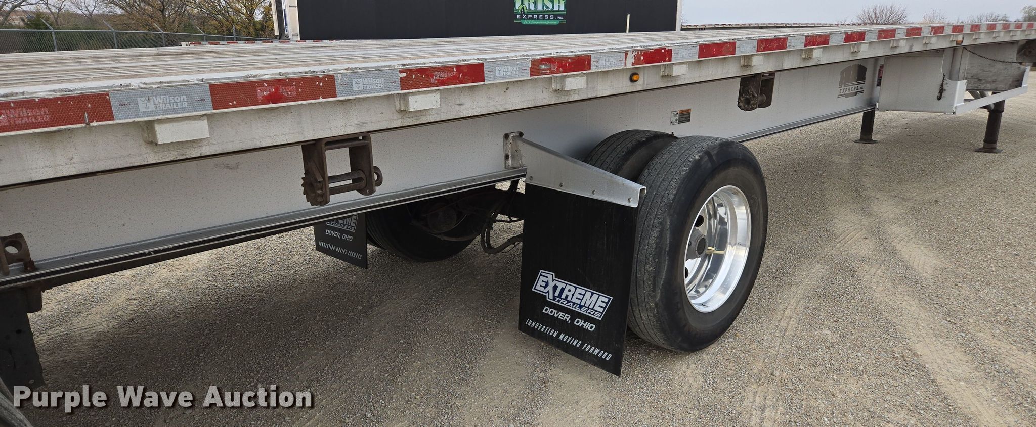 2014 Wilson AF-1080SS flatbed trailer. VIN: 4WW5532A9E6621450. Dimensions Overall: 53' L x 102" W. Features Deck type: Aluminum, Wood. Chassis Landing gear: Dual, Suspension: Air, Brakes: Air, Axles: Spread, GVWR: 88,250 lbs, GAWR: 19,040 lbs. Tires Aluminum wheels, Size: 295/75R22.5. Kansas title. Title distribution may be delayed up to 14 days from verification of funds. Irish Express, Inc.. Alma, KS 66401