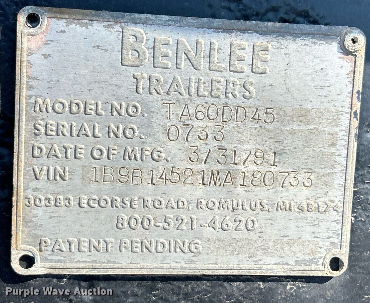 Purple Wave is selling a used Container Trailer in Illinois. This item is a 1991 Benlee Roll-off TA60DD45 container trailer with the following: VIN: 1B9B14521MA180733