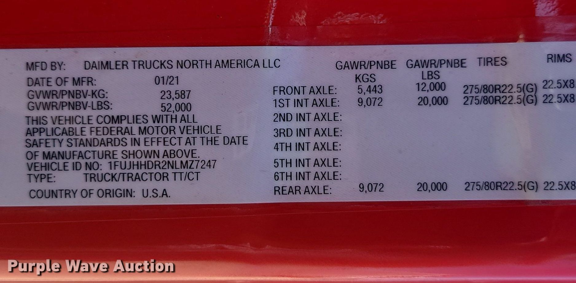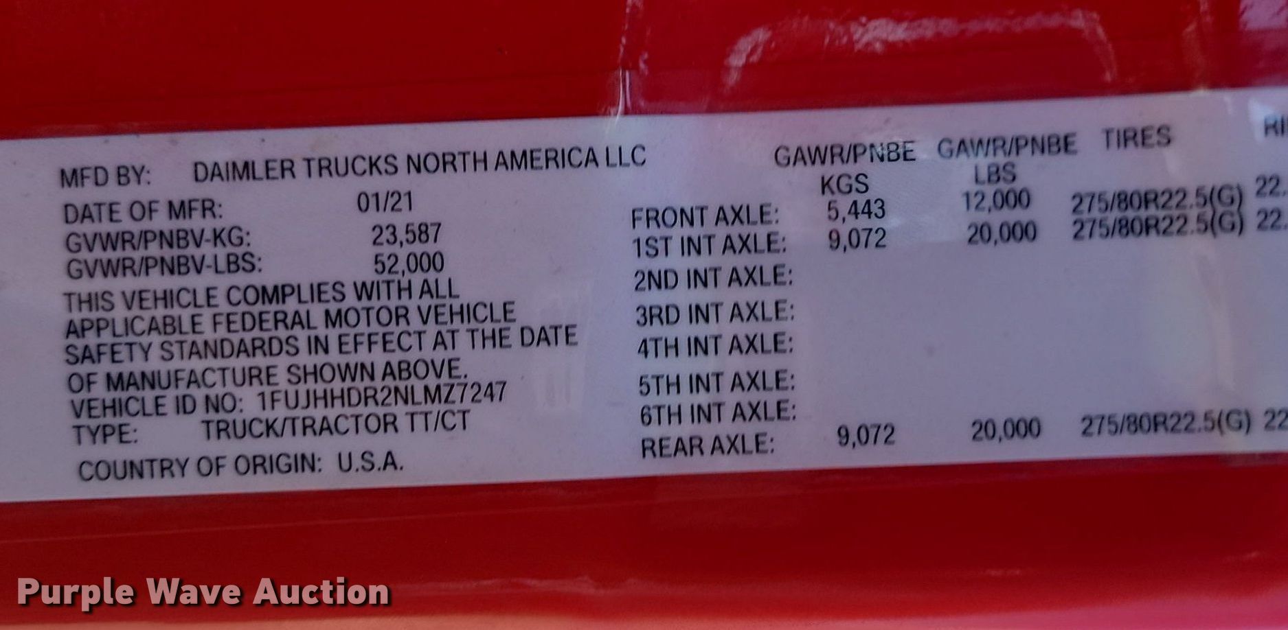 Purple Wave is selling a used Truck Tractor in North Dakota. This item is a 2022 Freightliner Cascadia semi truck with the following: Miles: 199,081 on odometer, Hours: 5,954 on meter, VIN: 1FUJHHDR2NLMZ7247, Unit #: 60648274