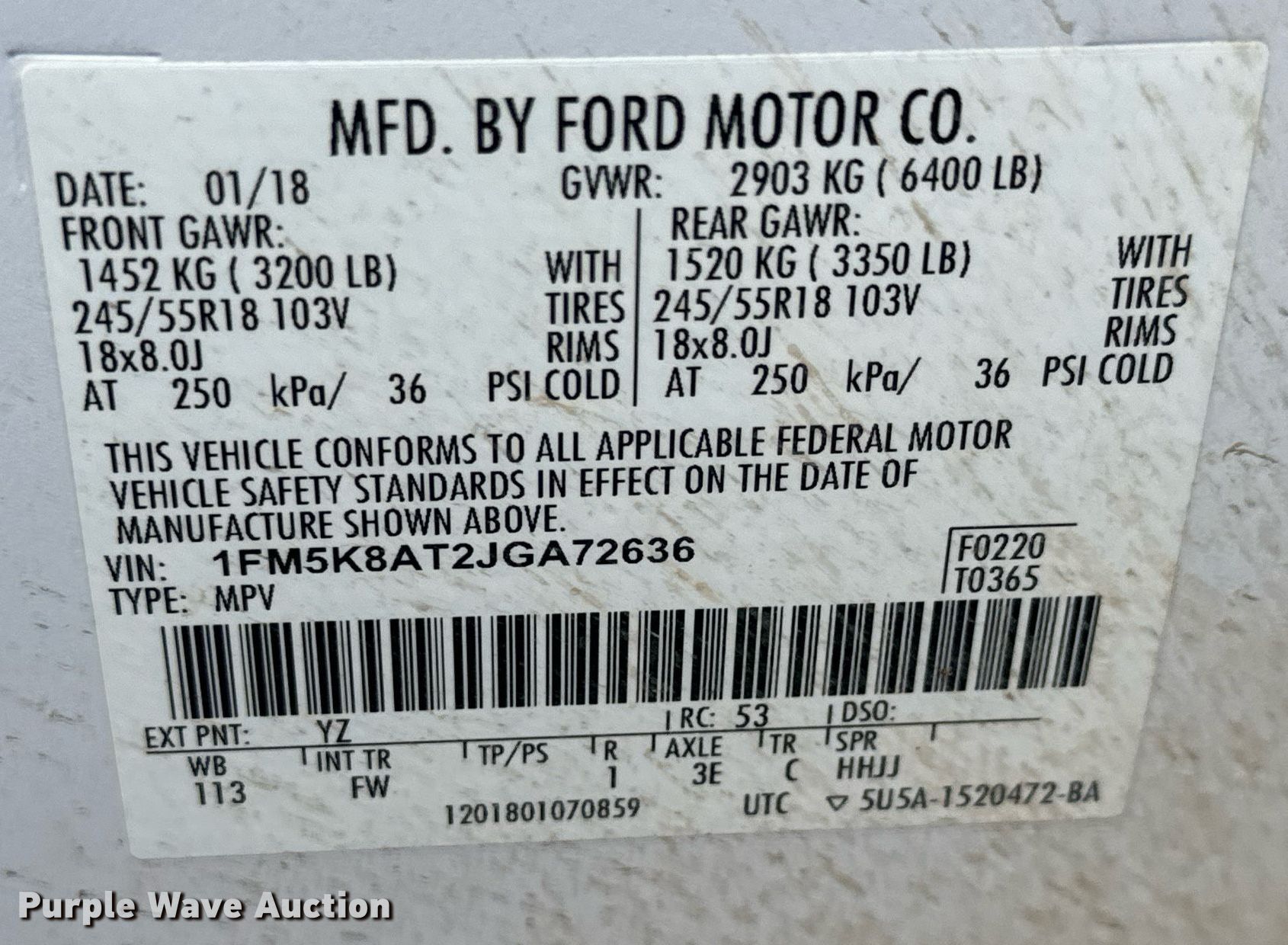 - VIN: 1FM5K8AT2JGA72636