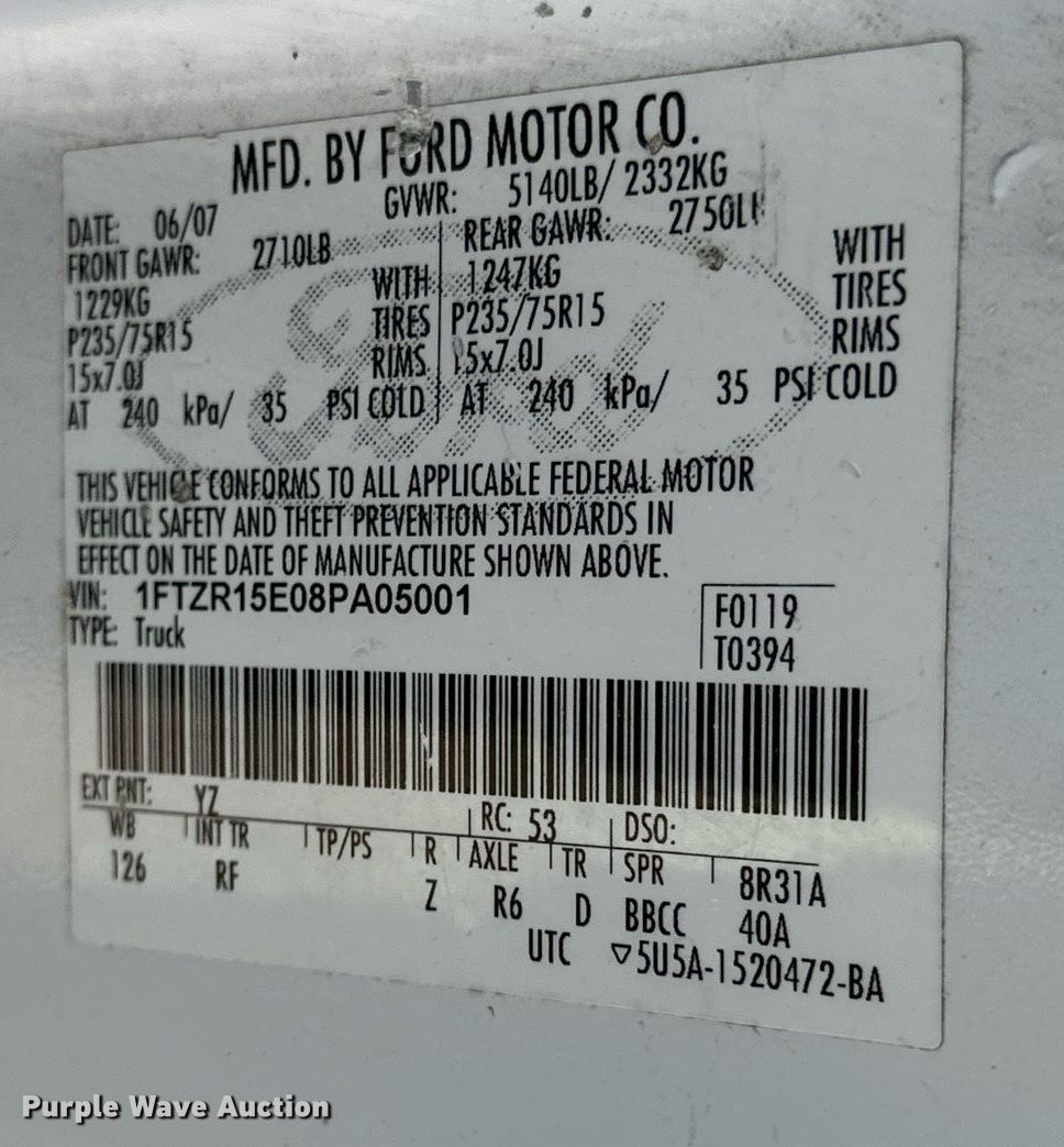 - VIN: 1FTZR15E08PA05001