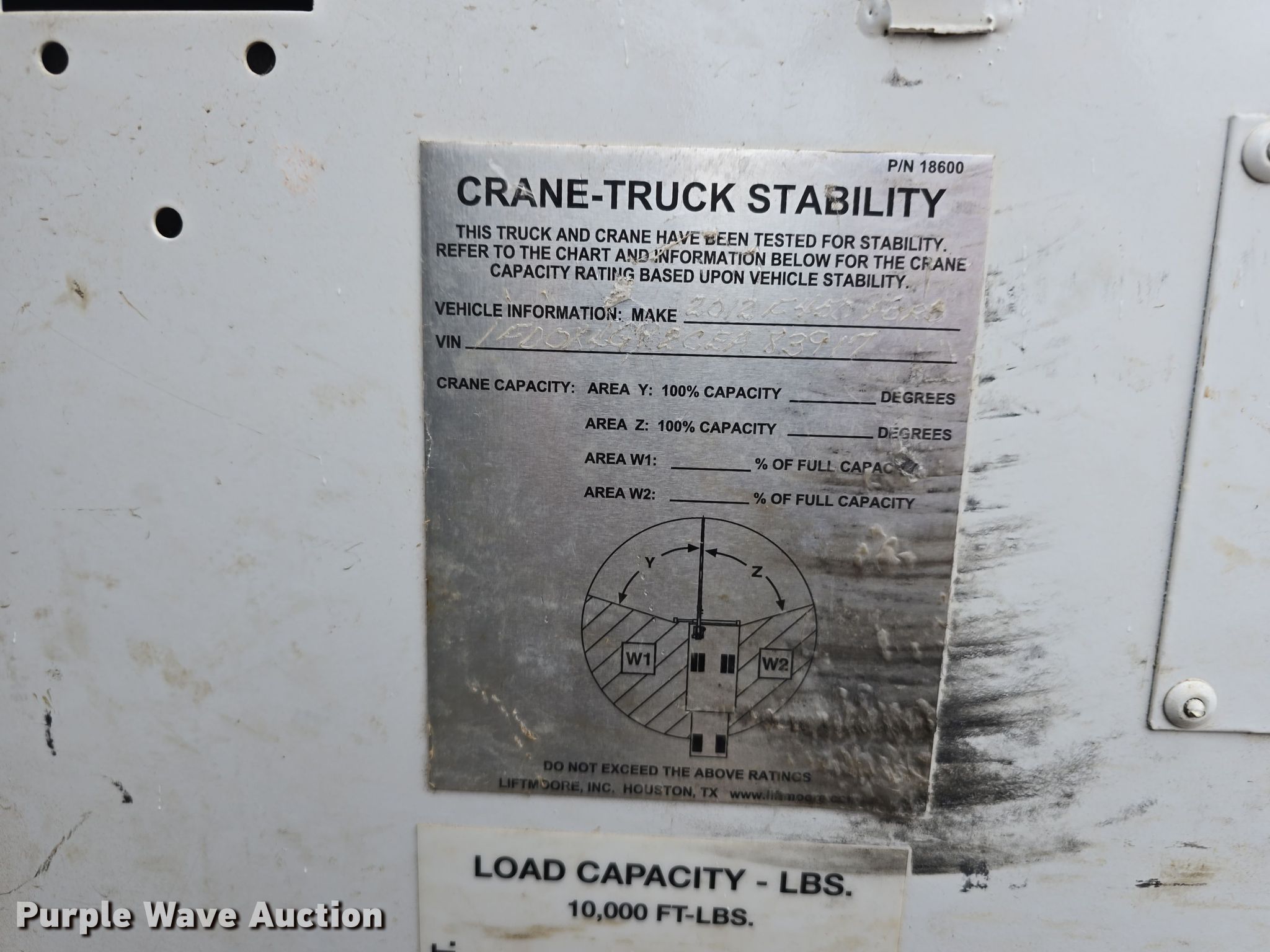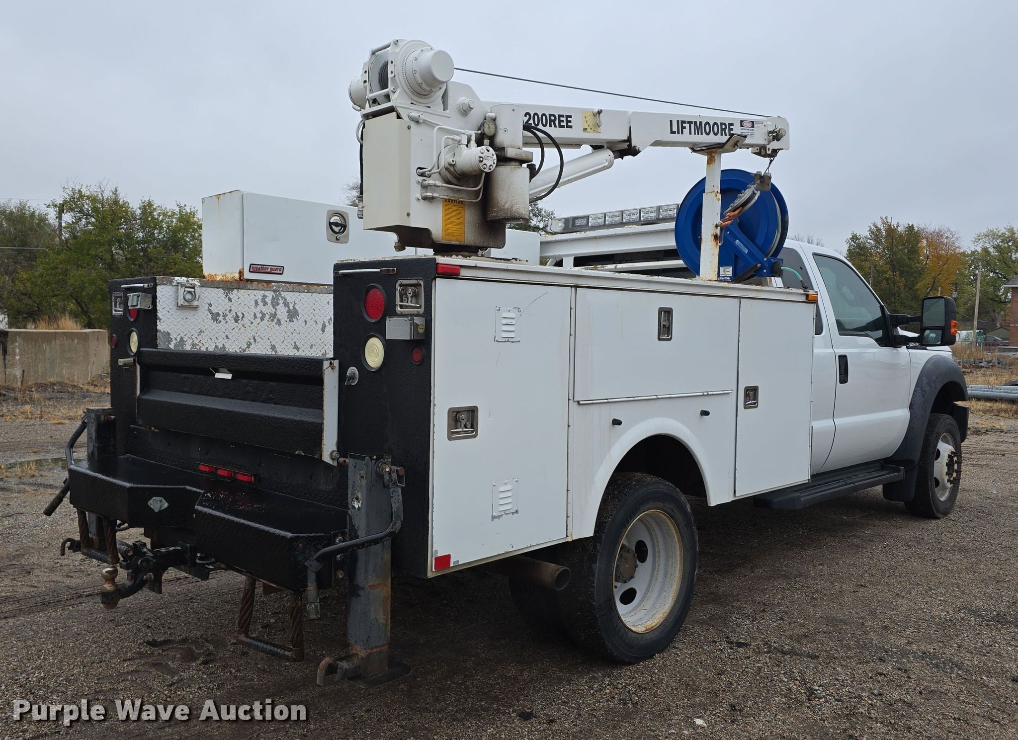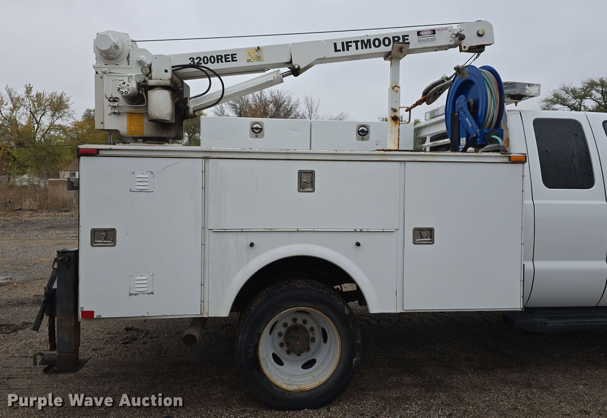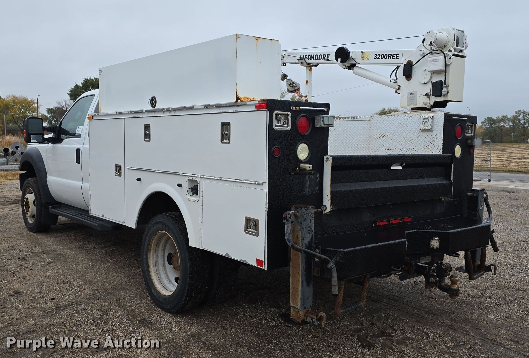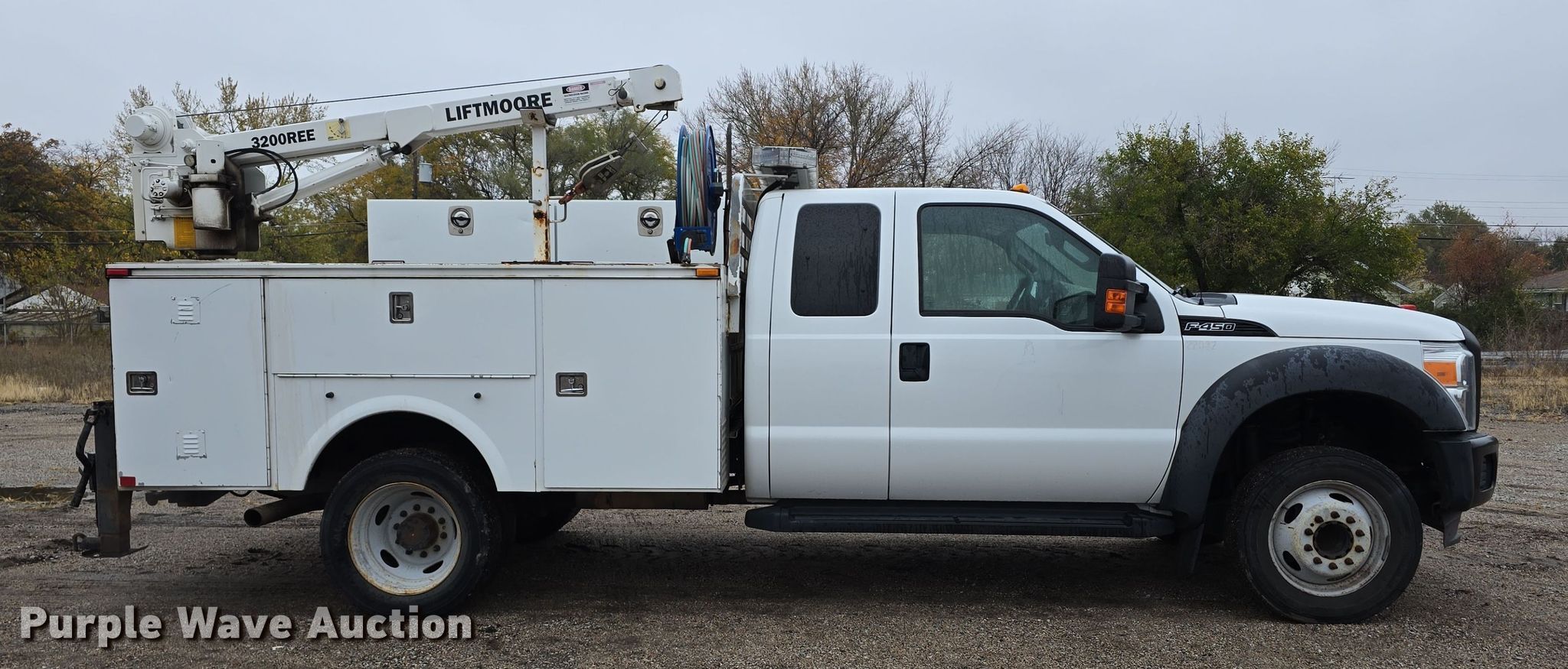 2012 Ford F450 Super Duty XL SuperCab utility / service truck. Miles: 139,242 on odometer, VIN: 1FD0X4GY2CEA83917, Unit #: 22032. Engine Displacement: 6.8L, Cylinders: 10, Fuel type: Gas. Transmission Automatic. Chassis Axles: Single, Suspension: Spring, Brakes: Hydraulic, PTO, GVWR: 16,500 lbs, Wheelbase: 162". Interior AC, Heat, Heated mirrors, Power windows, Power locks, Cruise control, Auxiliary controls, Brake controller. Features Bed Omaha Service Bodies, 9' L x 96" W, Crane Liftmoore 3200REE, Maximum boom length: 16' Maximum lift capacity: 3,200 lbs.. Tires Size: 225/70R19.5. Notes Rear seat missing, Unknown operating condition of crane, dead batteries. Nebraska title. Title distribution may be delayed up to 14 days from verification of funds. City of Lincoln- Water Dept.. Lincoln, NE 68504
