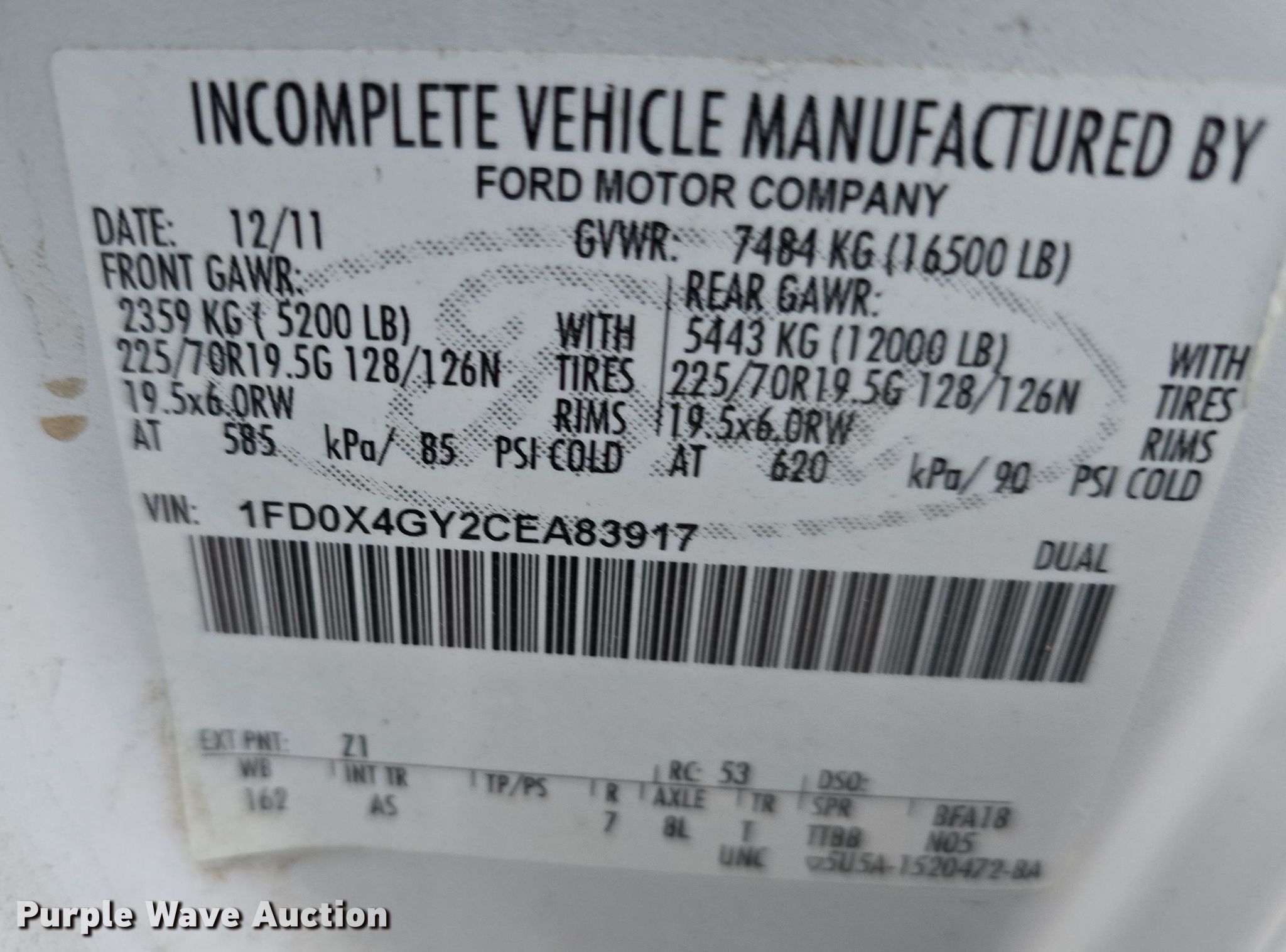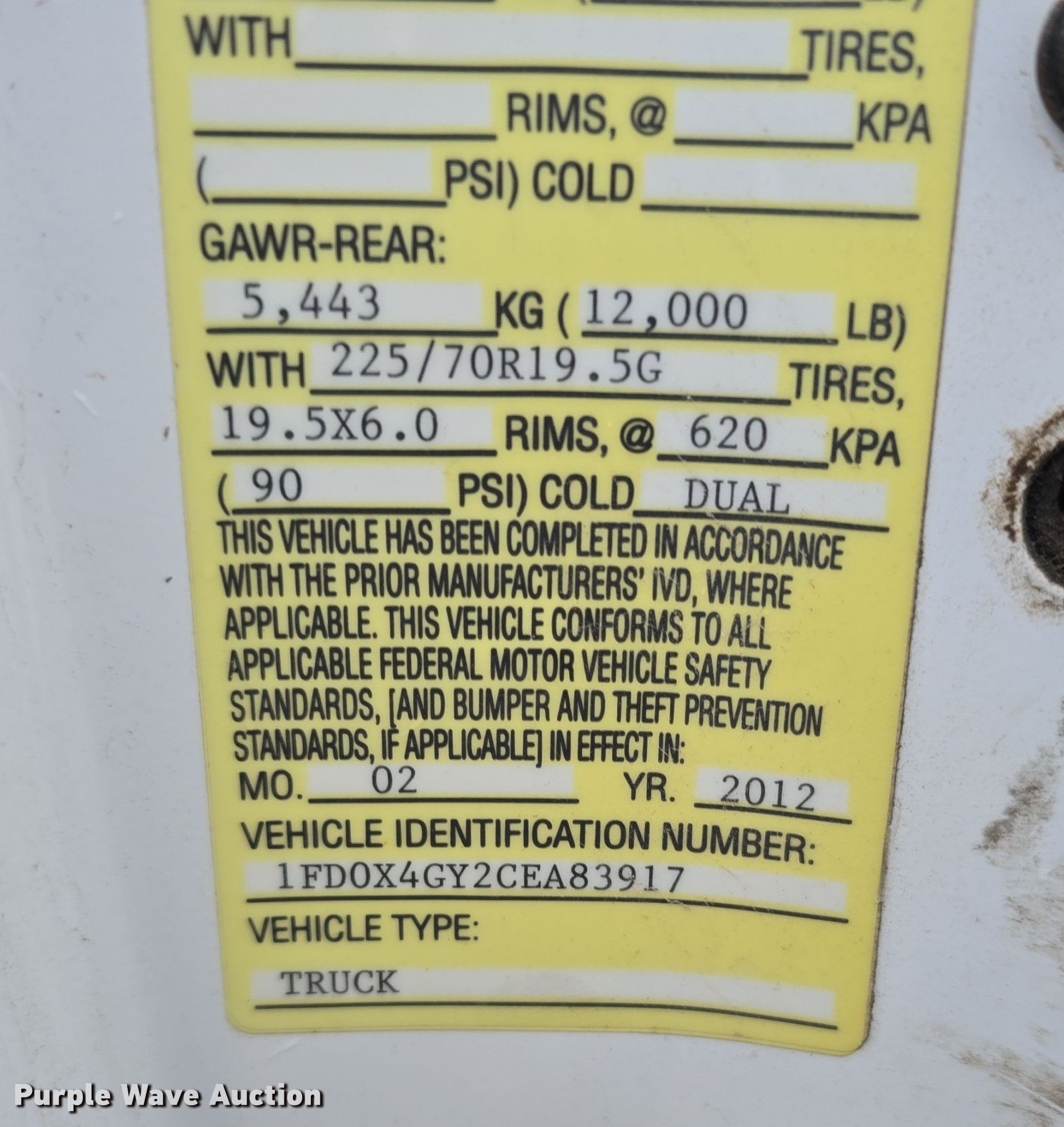 - VIN: 1FD0X4GY2CEA83917