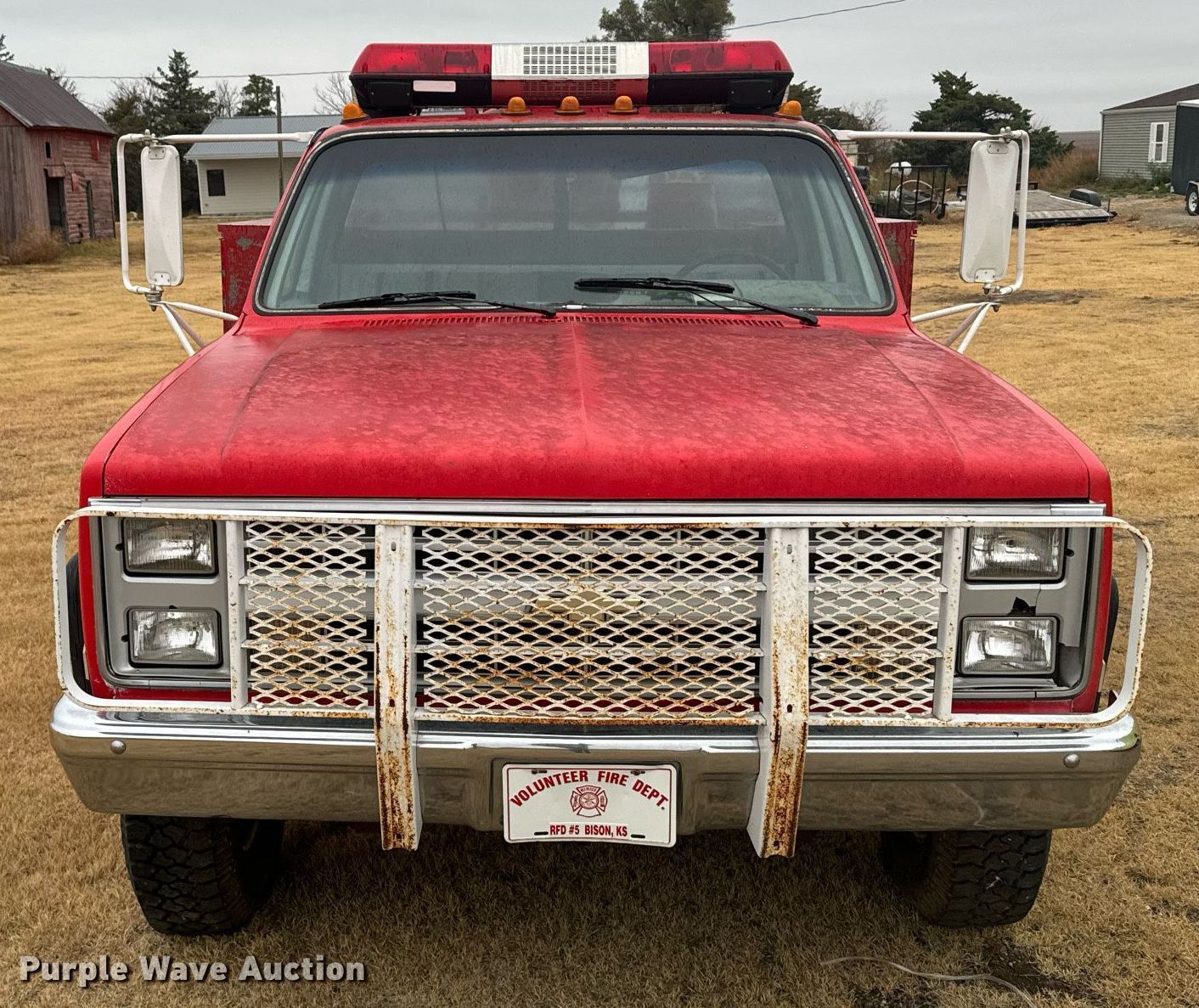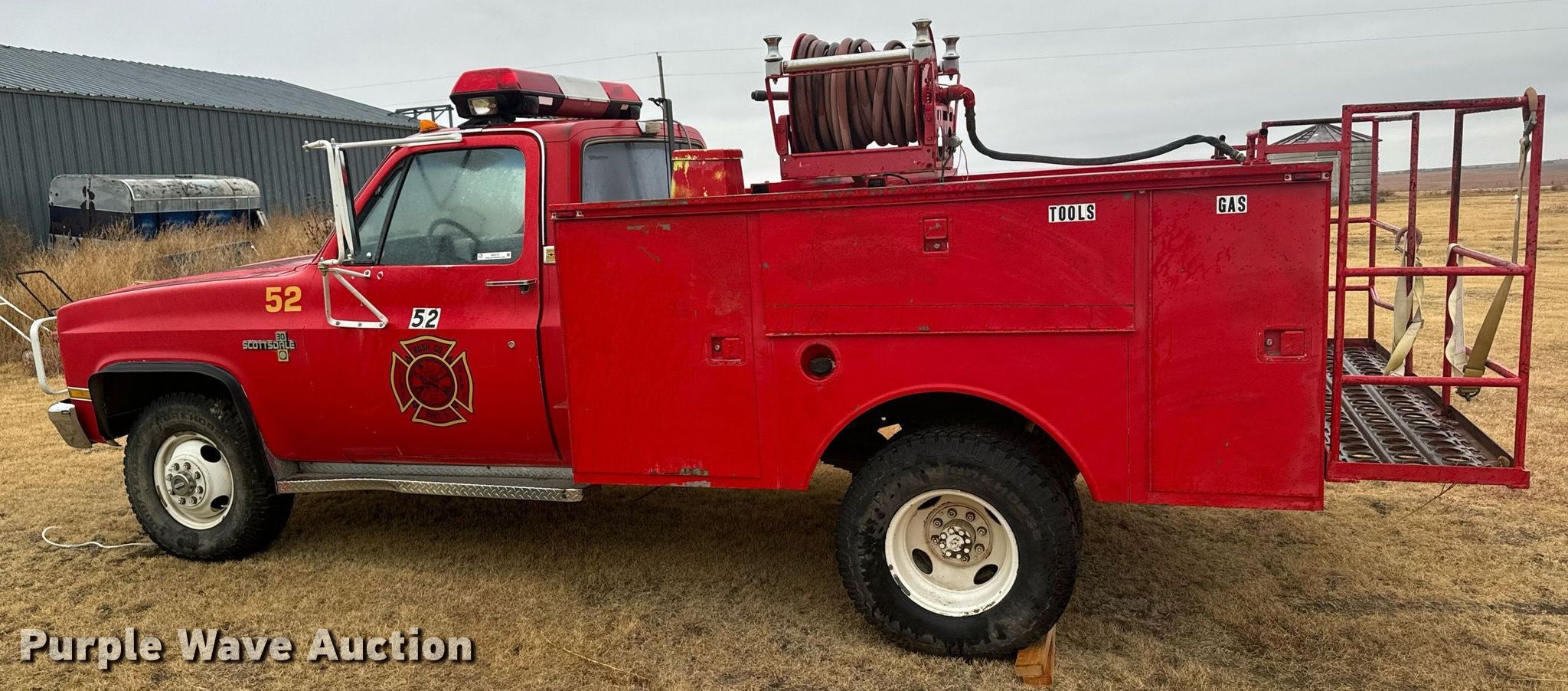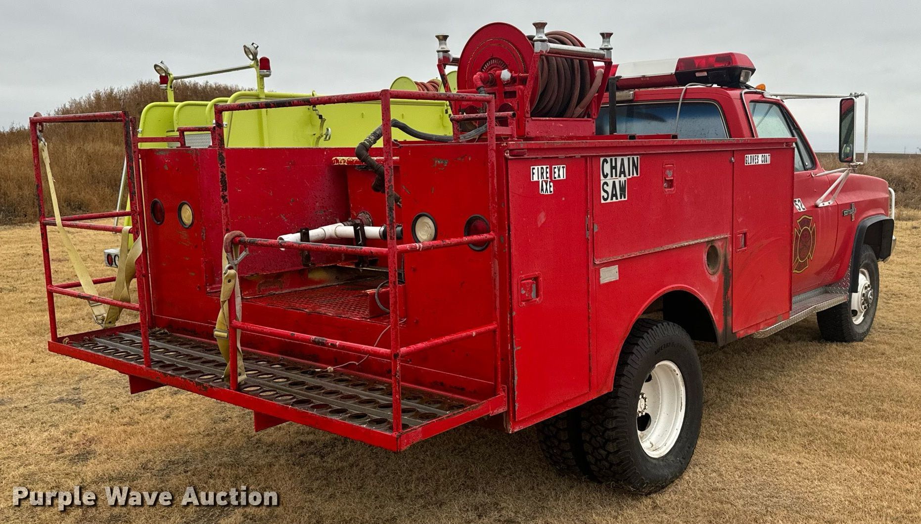 Purple Wave is selling a used Fire Truck or Emergency Vehicle in Kansas. This item is a 1985 Chevrolet K30 brush fire truck with the following: Miles: 9,781 on odometer, Actual mileage unknown, VIN: 1GCHK34M5FJ117779