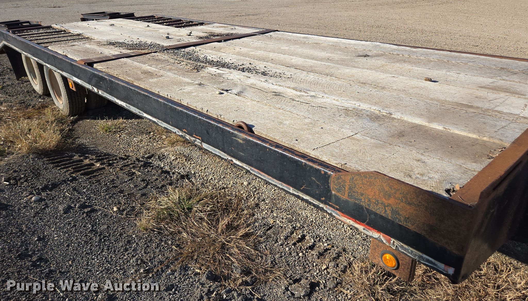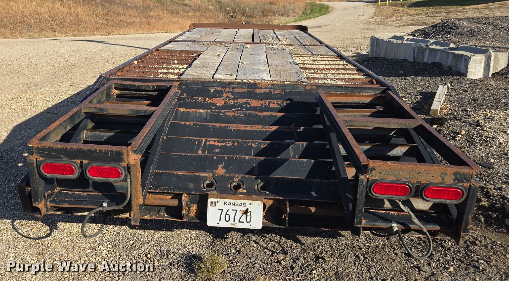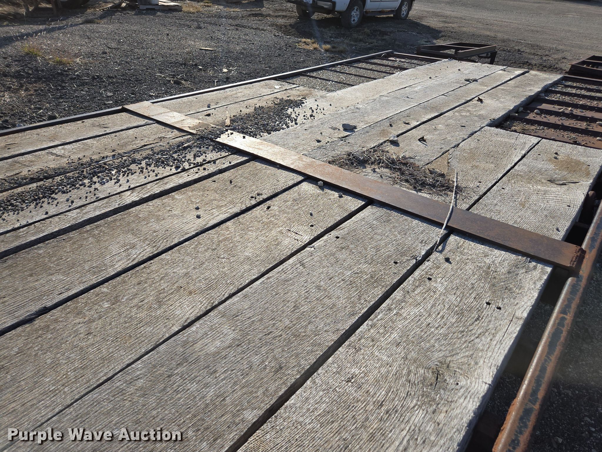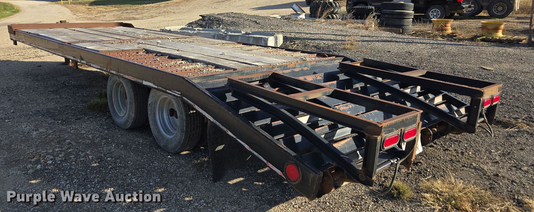 1982 Towmaster equipment trailer. VIN: 1199. Dimensions Overall: 30' L x 97" W, Deck: 21' L x 96" W, Tail length: 5', Ramps: Manual Length: 56". Features Deck type: Steel, Wood. Chassis Hitch: Pintle, Landing gear: Single, Suspension: Spring, Brakes: Electric, Axles: Tandem. Tires Steel wheels, Size: 9.50R16.5. Kansas title. Morris County Highway Dept. Council Grove, KS 66846