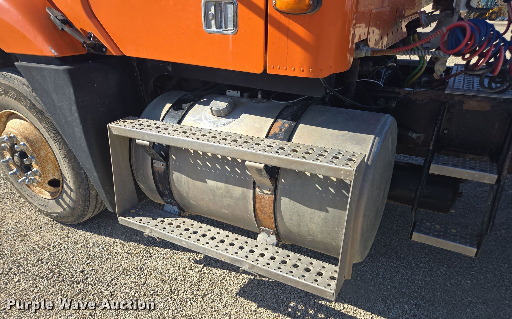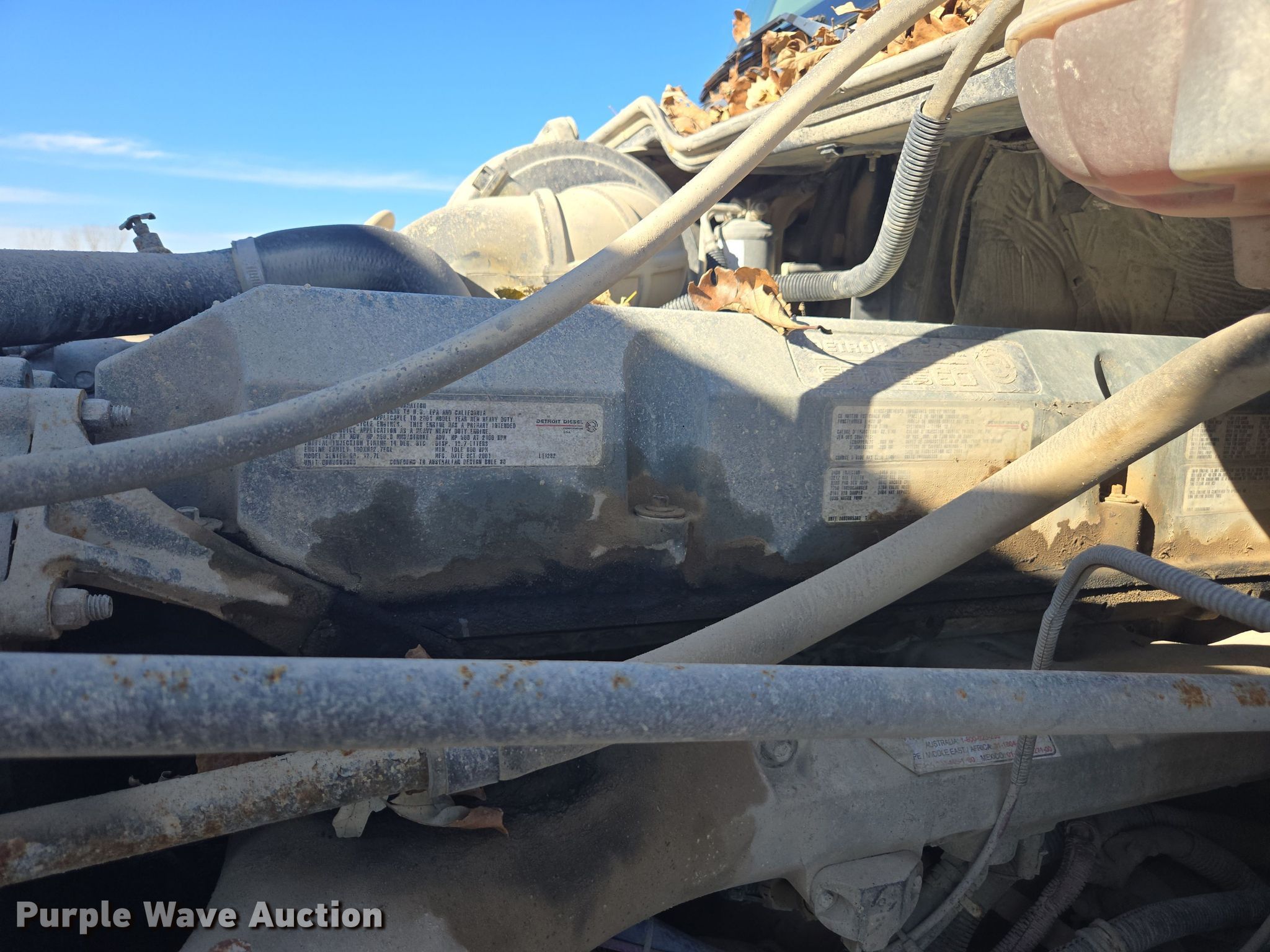 2002 Freightliner Columbia semi truck. Miles: 512,247 on odometer, VIN: 1FUJA6CG52LK18054. Engine Detroit Diesel Series 60, Displacement: 12.7L, Cylinders: 6, Fuel type: Diesel, HP: 500. Transmission Manual. Chassis Axles: Tandem, Differential lock: Inter-axle, Suspension: Air Dump valves, Brakes: Air, GVWR: 52,000 lbs FAWR: 12,000 lbs, IAWR: 20,000 lbs, RAWR: 20,000 lbs. Interior AC, Heat, Cruise control, Air ride cab. Features Deck plate: Aluminum, Fifth wheel type: Air operated, Sliding, Fuel tank: Dual. Tires Size: 11R22.5. Notes Dash warning indicator: Check engine. Kansas title. Morris County Highway Dept. Council Grove, KS 66846