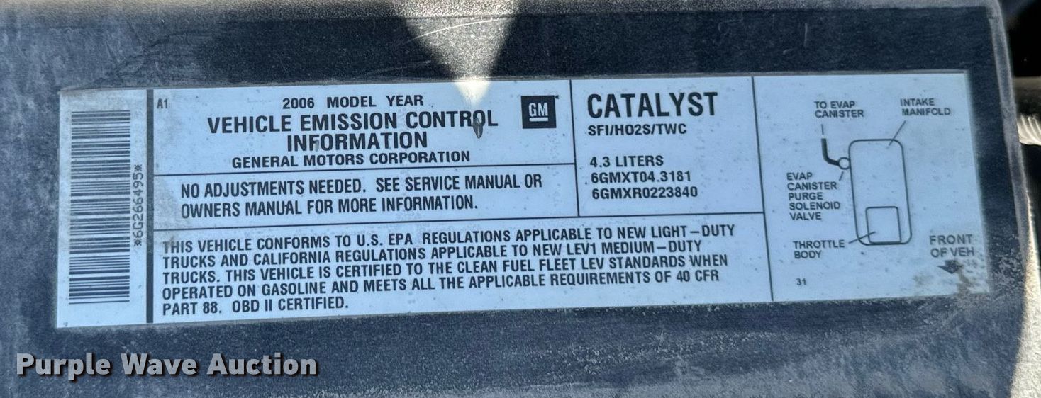 2006 Chevrolet Silverado 1500 pickup truck. Miles: 145,993 on odometer, VIN: 3GCEC14X16G266495. Engine Displacement: 4.3L V6 OHV, Cylinders: 6, Fuel type: Gas. Transmission Automatic. Interior AC, Heat, Cruise control. Tires Size: 245/70R17. Notes Dash warning indicator: Brake. Iowa title. Title distribution may be delayed up to 14 days from verification of funds. City of Grandview. Letts, IA 52754