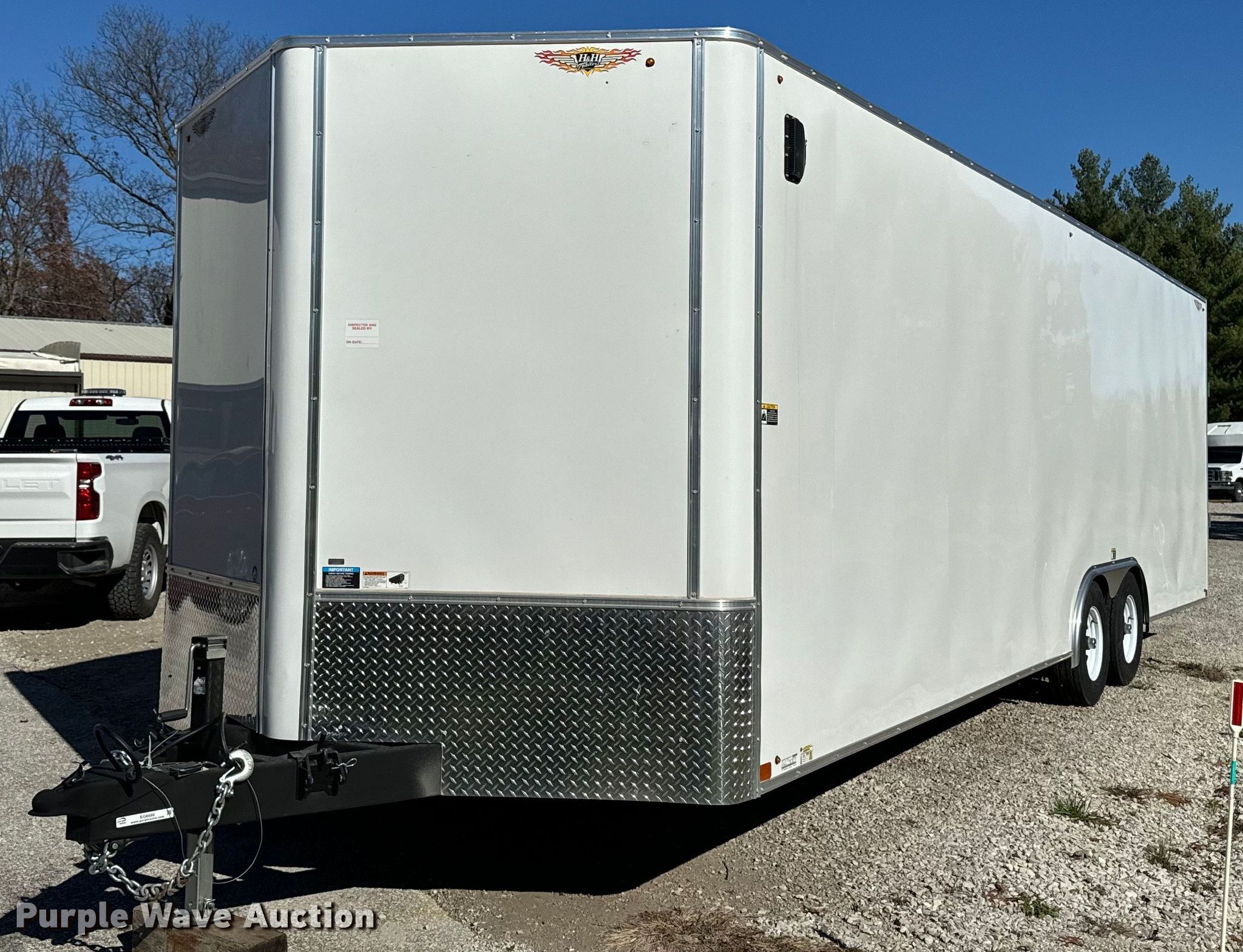 2022 H&H H10126FTCHV-100 enclosed cargo trailer. VIN: 5JWTC2620NN554961. Dimensions Overall: 32' L x 102" W, Body: 29' L x 102" W, Rear door / ramp 82" L x 94" W. Features Deck type: Wood. Chassis Ball hitch: 2 5/16", Landing gear: Single, Suspension: Spring, Brakes: Electric, Axles: Tandem, GVWR: 9,900 lbs. Tires Steel wheels, Size: 225/75R15. Iowa title. Seller is a government entity who will be assigning and distributing the title. Please contact the seller for distribution questions. Indian Hills Community College. Ottumwa, IA 52501