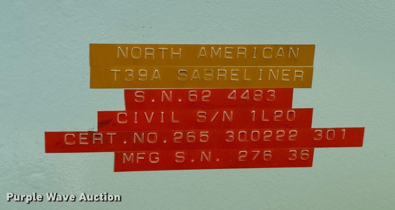 Purple Wave is selling a used Aircraft in Iowa. This item is a North American T39A Saberliner airplane with the following: Miles: Unknown, Hours: Unknown, Serial: 62 4483