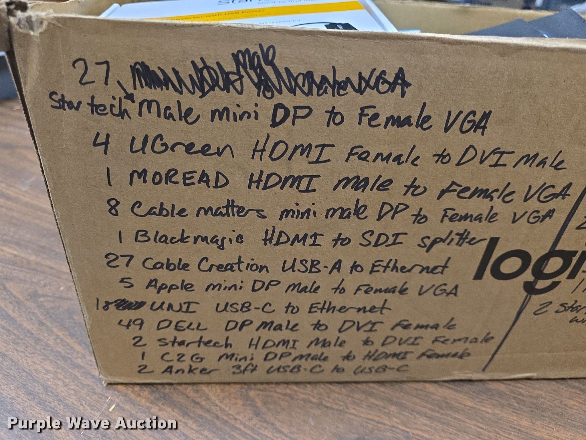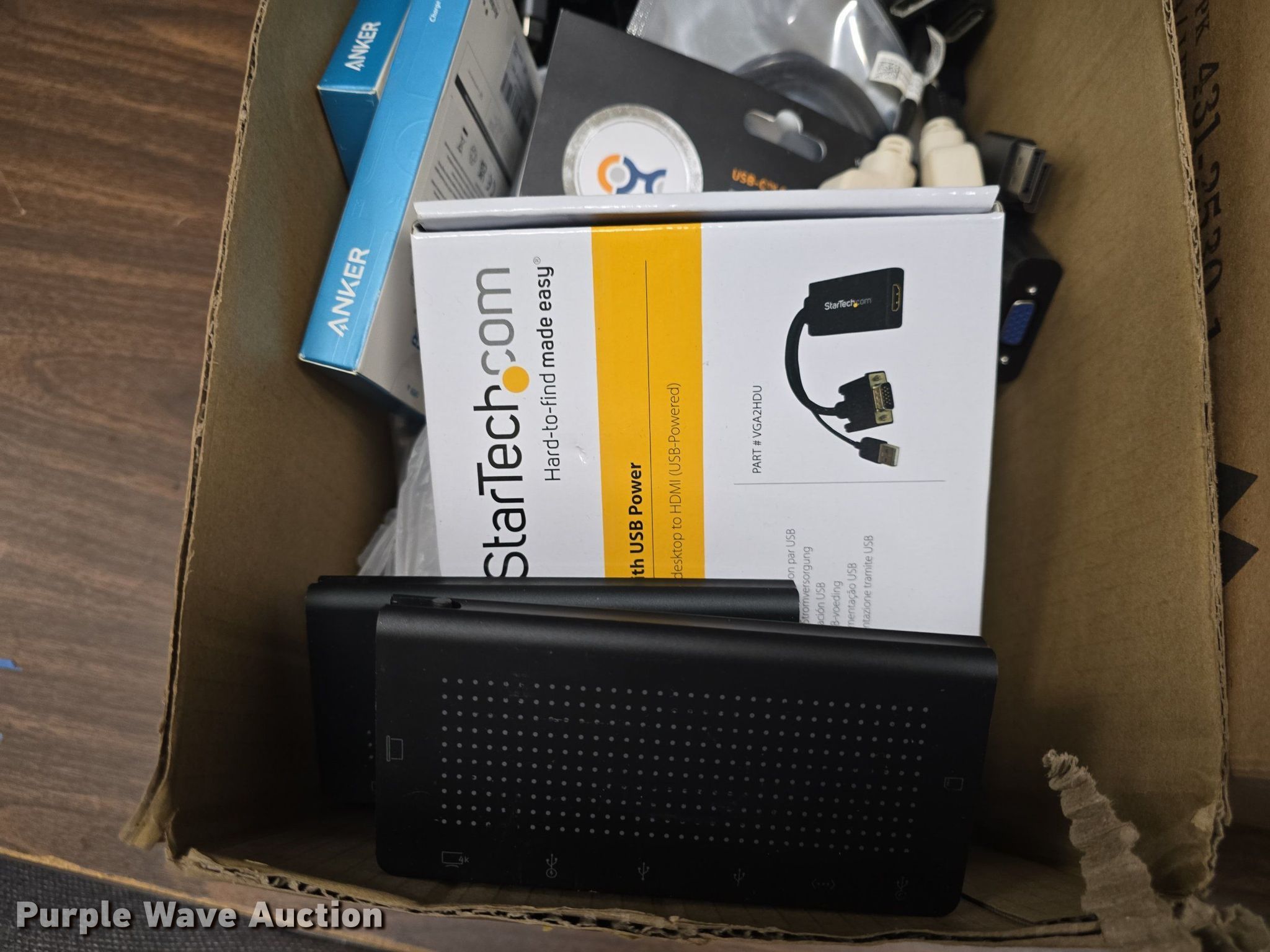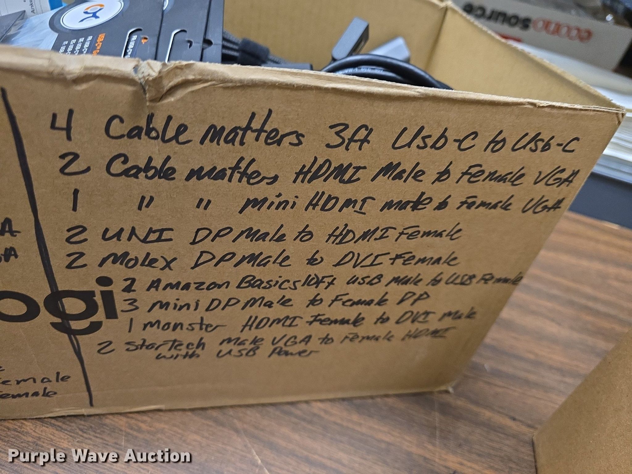 Purple Wave is selling a used Electronics in Kansas. This item is a Electronics with the following: Approx. 66 Amazon Basic B00NH1205i USB extender, Unused, (4) Twelve South Stay Go USB C hub peripheral devices, Cable missing, (2) Star Tech DVI2HD to HDMI video adapter, (8) DTech DT69F50 15ft slim VGA cables, (18) UNI USB C to ethernet adapters, Approx. 23 Cable Creation USB A to ethernet adapters, (4) Cable Matters USB C to USB C cables, (2) Anker USB C to USB c cables, Approx. 49 Dell DP male to HDMI female adapters, (2) Molex DP Male to DVI female adapter, (2) UNI DP Male to HDMI female adapter, (2) Amazon Basics USB A male to USB A female cables, Monster HDMI female to DVI male adapter, Cable Matters Mini HDMI male to VGA female adapter, C2G mini DP to HDMI female adapter, (4) adapters, (2) Star Tech HDMI male to DVI female adapter, Black Magic Design HDMI to SDI splitter, (2) Cable Matters HDMI male to VGA female adapters, Moread HDMI male to VGA female adapter, (4) UGreen HDMI female to DVI male adapters, (2) Star Tech male VGA to female HDMI converter, USB power, (5) Apple Mini DP male to VGA female adapters, (8) Cable Matters Mini DP male to VGA female adapters, Approx. 27 Star Tech Mini DP male to VGA female adapters