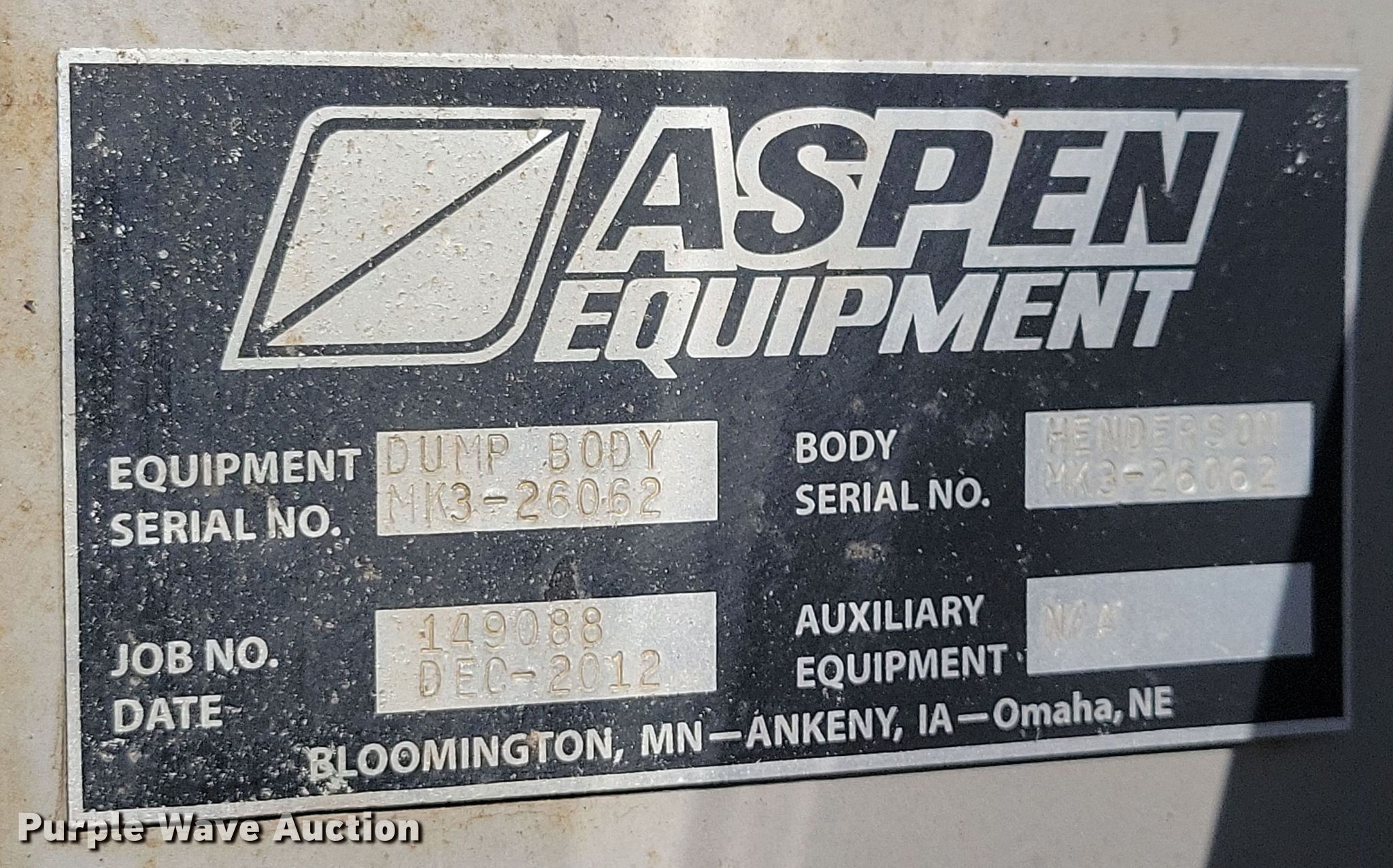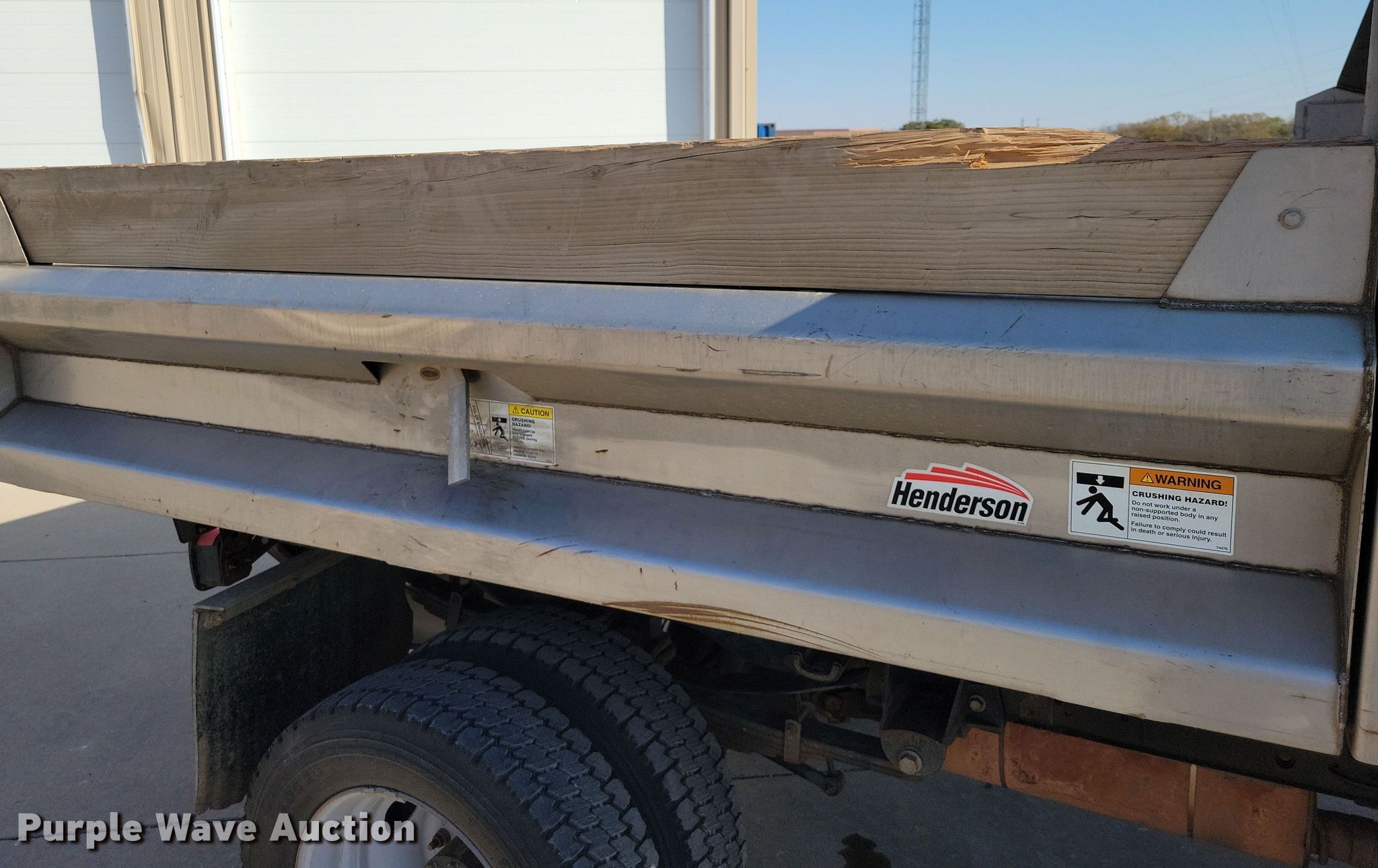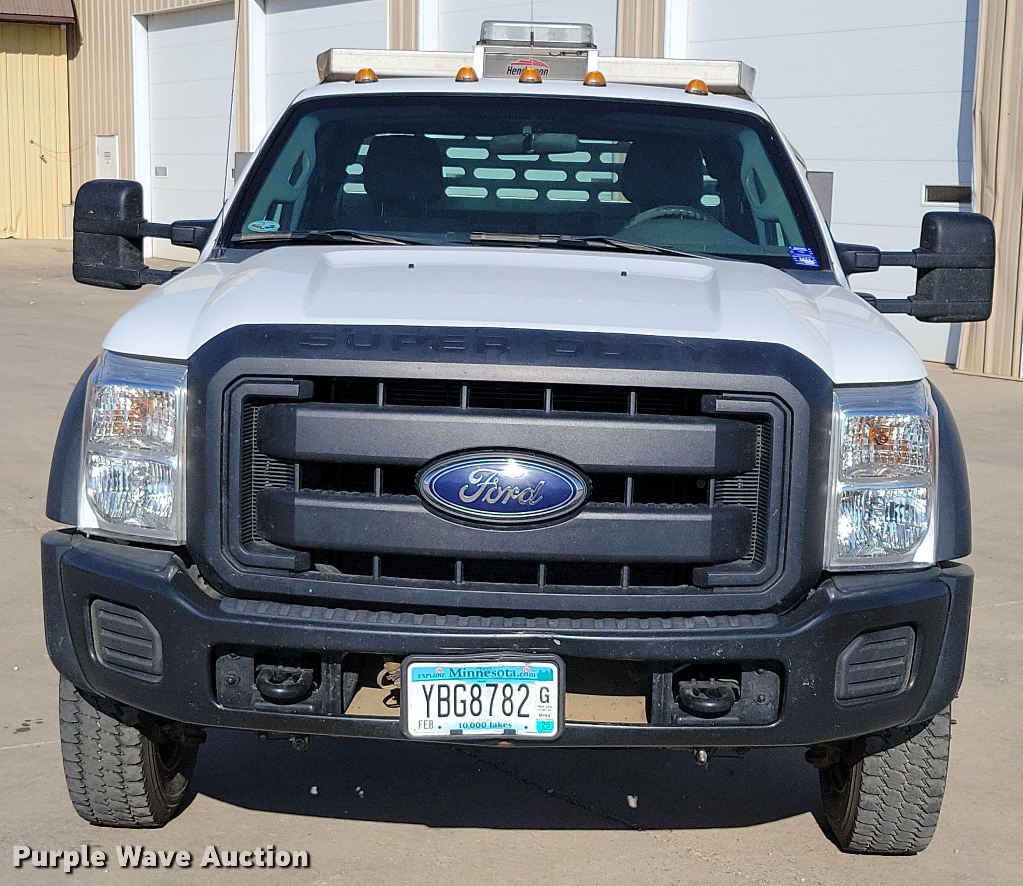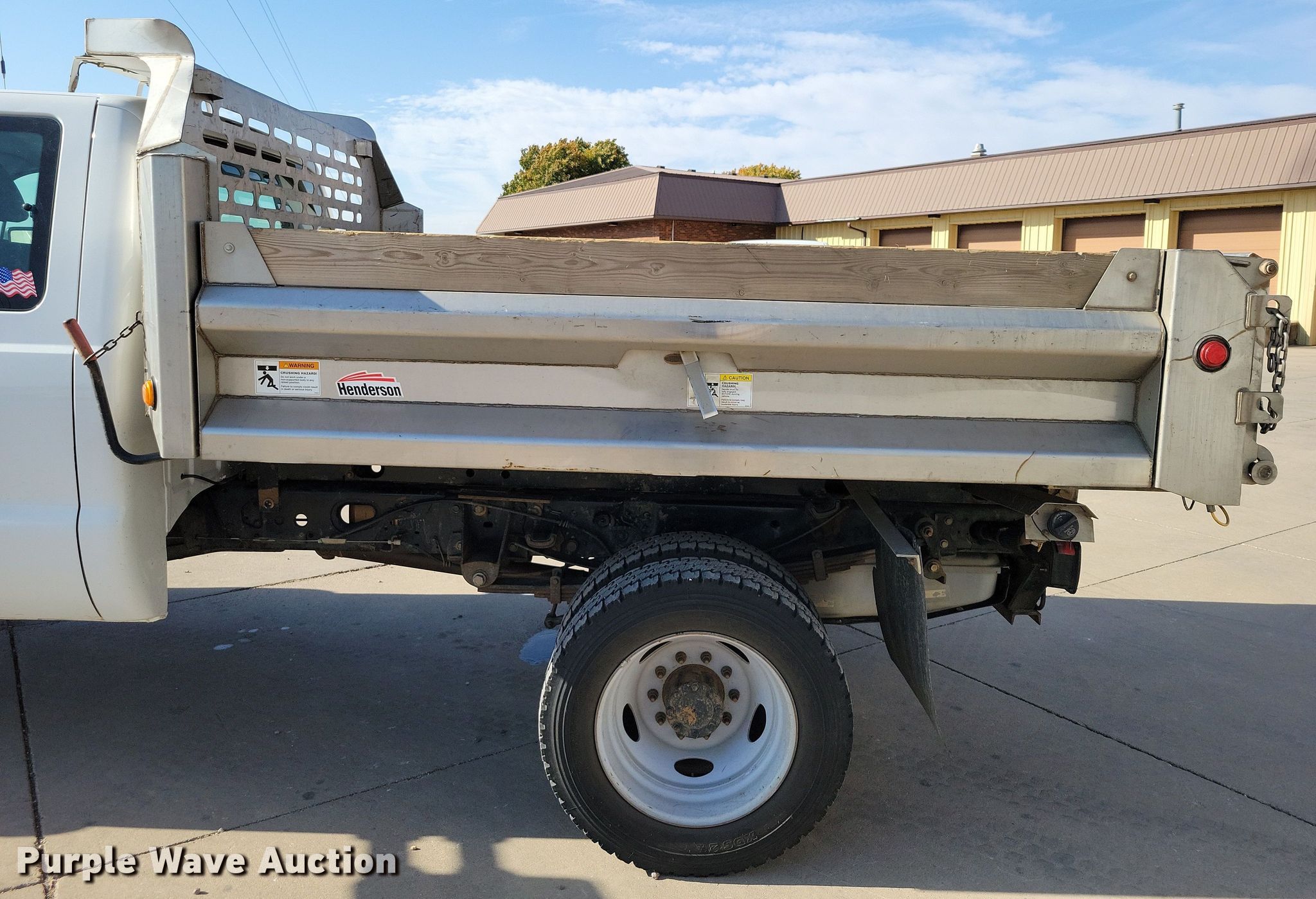2013 Ford F550 Super Duty SuperCab dump truck. Miles: 82,741 on odometer, Hours: 5,167 on meter, VIN: 1FD0X5HY7DEA09432. Engine Displacement: 6.8L, Cylinders: 10, Fuel type: Gas. Transmission Automatic. Chassis Four wheel drive, Axles: Single, Suspension: Spring, Brakes: Hydraulic, GVWR: 19,500 lbs FAWR: 5,600 lbs, RAWR: 14,706 lbs, Wheelbase: 162". Interior AC, Heat, Cruise control, Brake controller. Features Dump bed Henderson, 9' L x 8' W, Side height: 14", Side board height: 6", Bed type: Aluminum, Ram: Single, End gate: Manual. Tires Size: 225/70R19.5. Notes Dash warning indicator: Check engine. Minnesota title. Title distribution may be delayed up to 30 days from verification of funds. Federated Rural Electric Association. Jackson, MN 56143