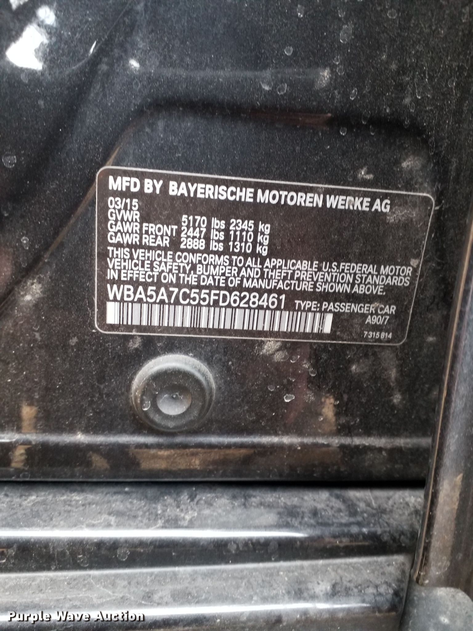 Purple Wave is selling a used Passenger Vehicle in South Dakota. This item is a 2015 BMW 528XI with the following: Miles: 123,398 on odometer, VIN: WBA5A7C55FD628461, Unit #: DCI02
