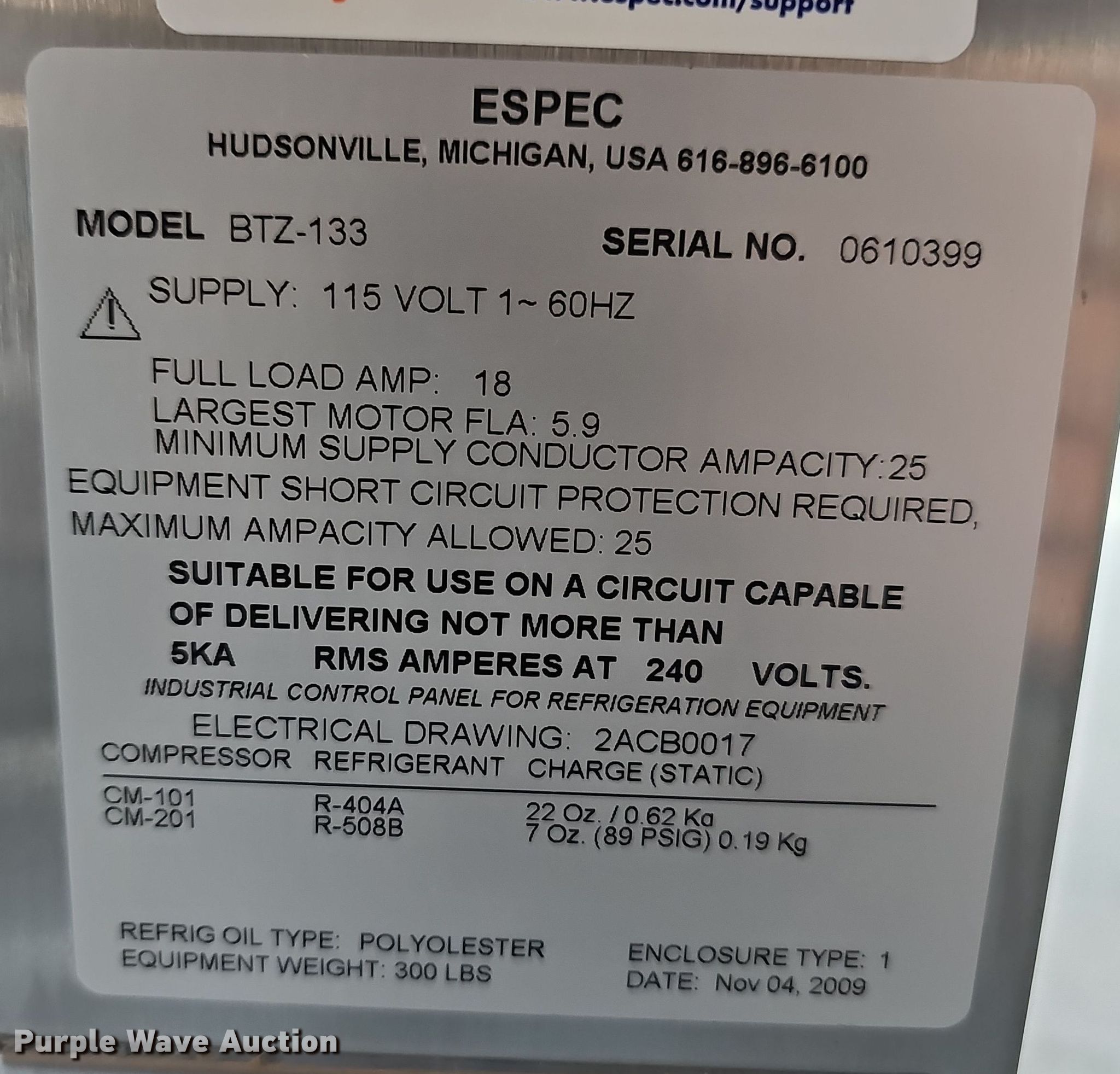 Purple Wave is selling a used Other Industrial or Business in Missouri. This item is a 2009 Espec BTZ-133 benchtop test chamber with the following: Serial: 0610399