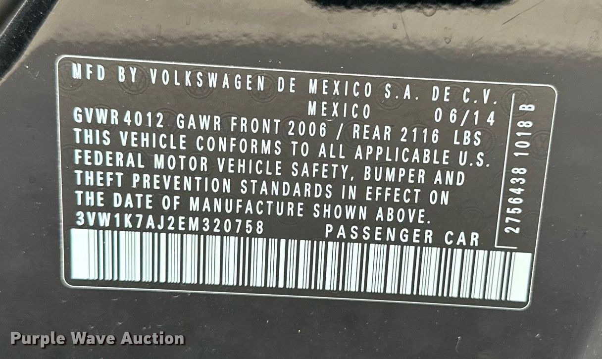 - VIN: 3VW1K7AJ2EM320758