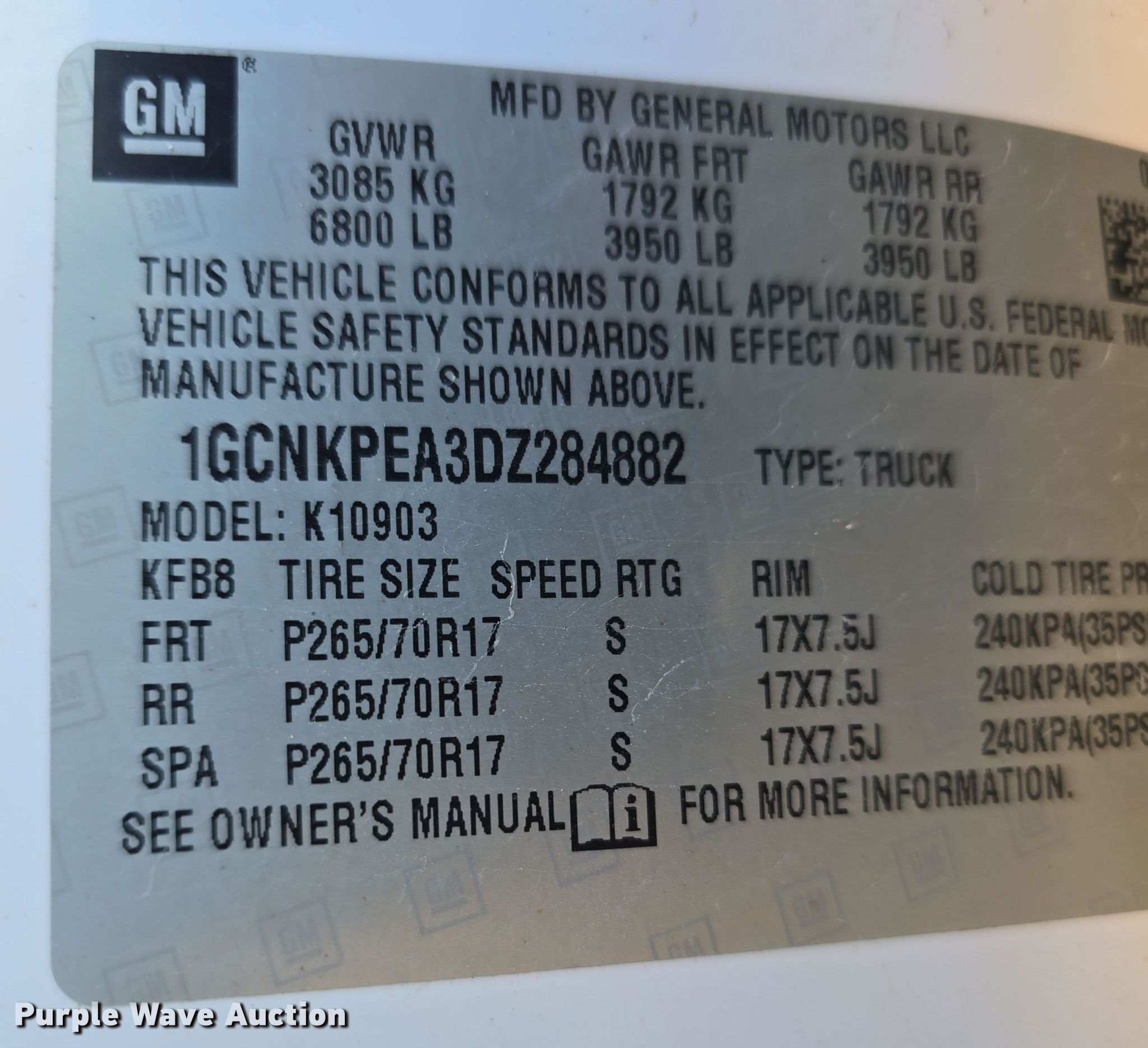 - VIN: 1GCNKPEA3DZ284882