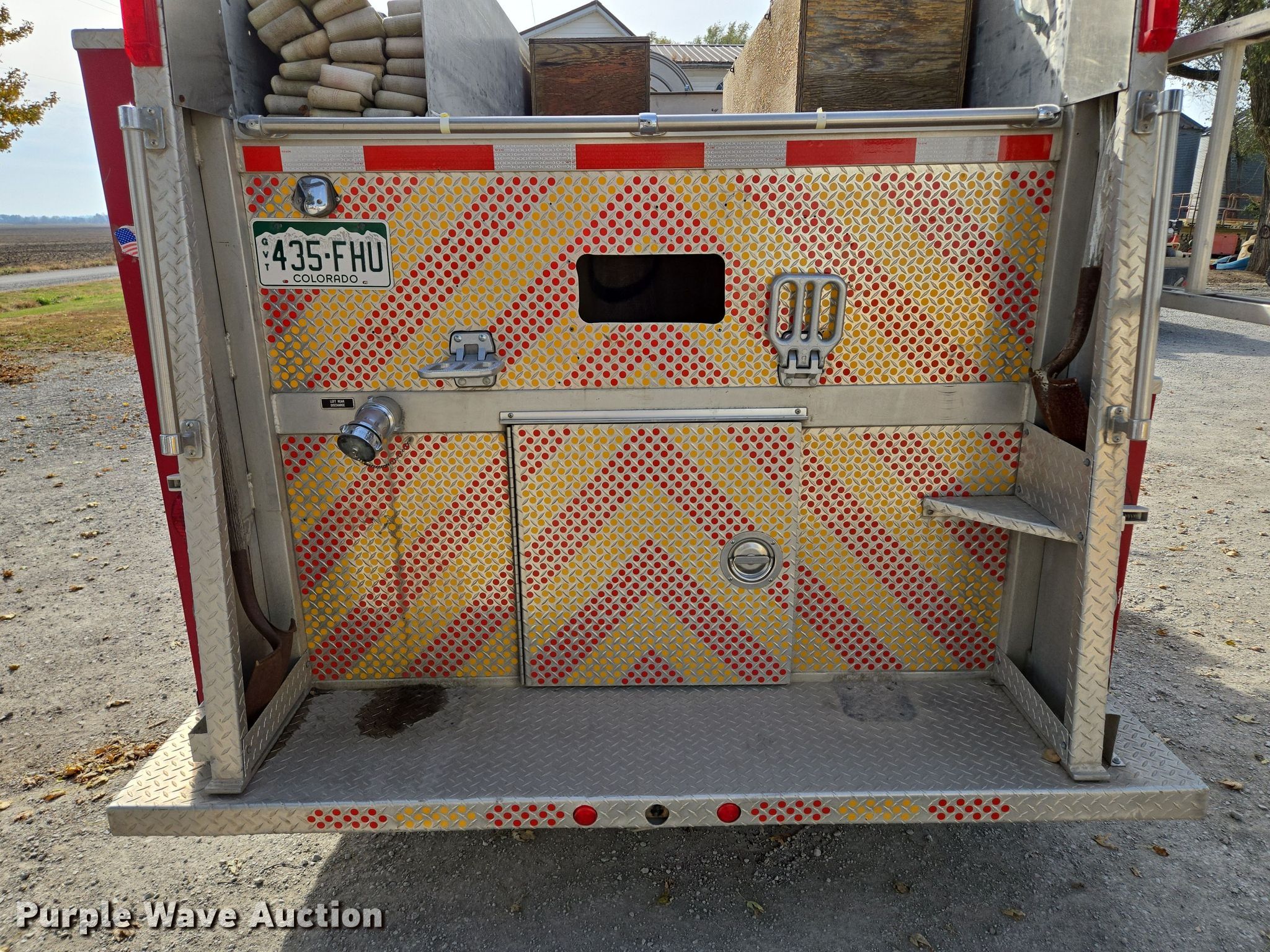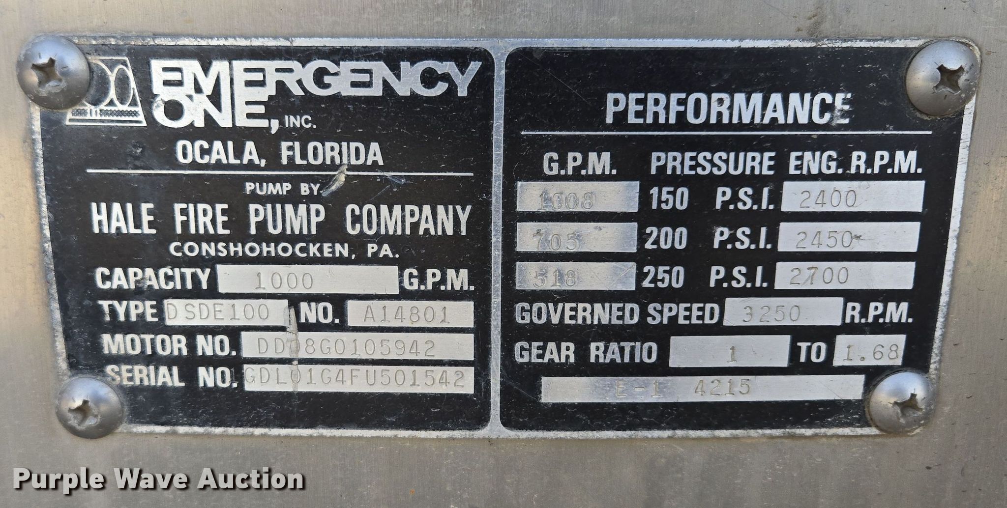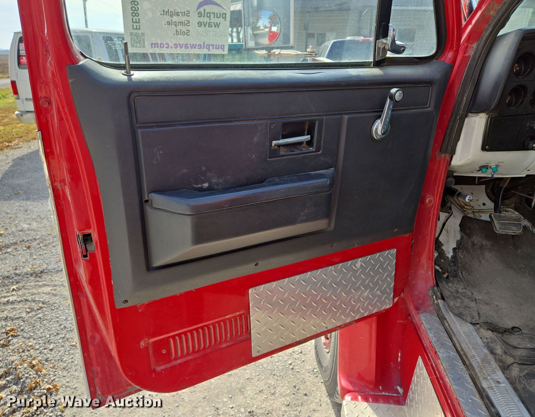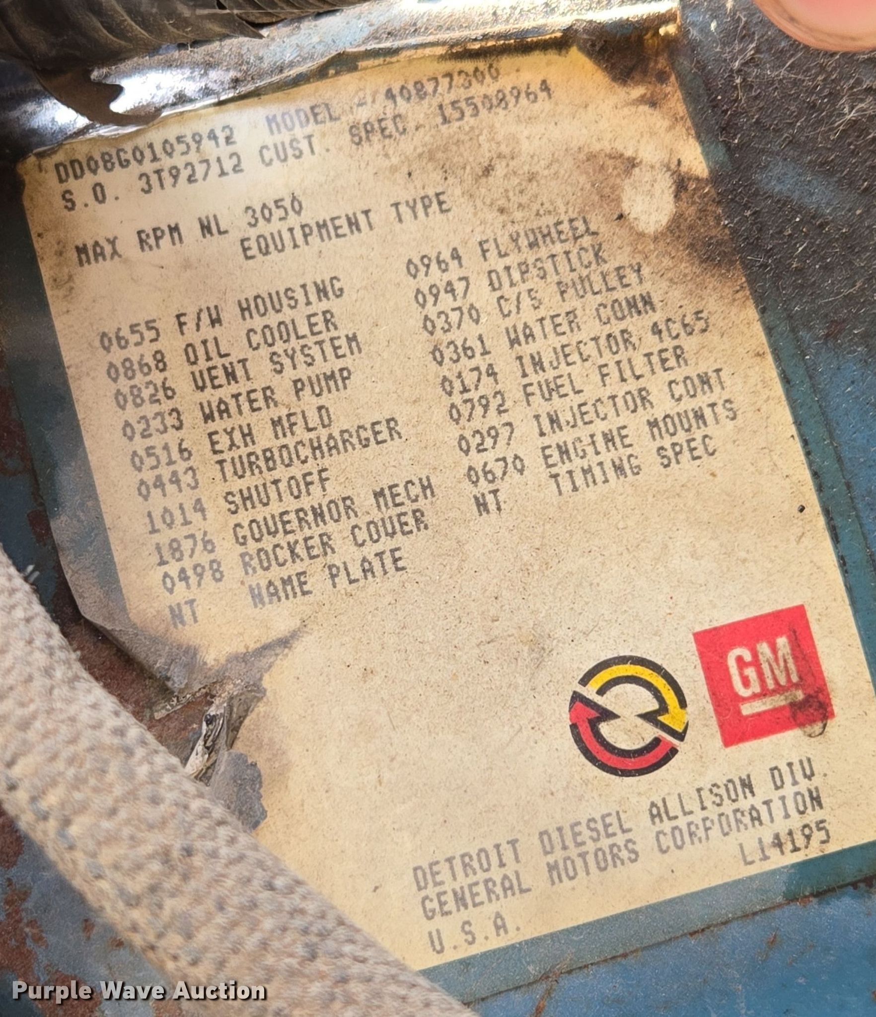 1985 GMC 7000 pumper fire truck. Miles: 51,336 on odometer, VIN: 1GDL7D1G4FV501542. Engine Detroit Diesel, Displacement: 8.2L, Cylinders: 8, Fuel type: Diesel. Transmission Manual. Chassis Axles: Single, Suspension: Spring, Brakes: Hydraulic, GVWR: 28,000 lbs. Interior Heat. Features Fire truck body Pump 1,000 GPM, Ground ladder. Tires Front: 10R20.00, Rear: 10.00R20. Notes Dead battery. Missouri title. Them Perkins Boys Hauling. Lock Springs, MO 64654