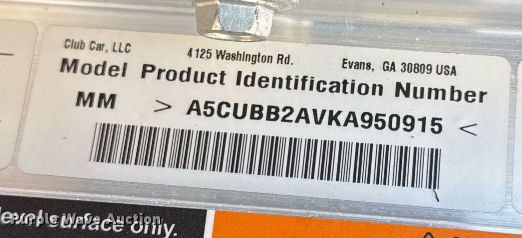 Purple Wave is selling a used Golf Cart in Oklahoma. This item is a 2019 Club Car CA550 golf cart with the following: Hours: 1,067 on meter, VIN: A5CUBB2AVKA950915, Serial: MM1908-950915