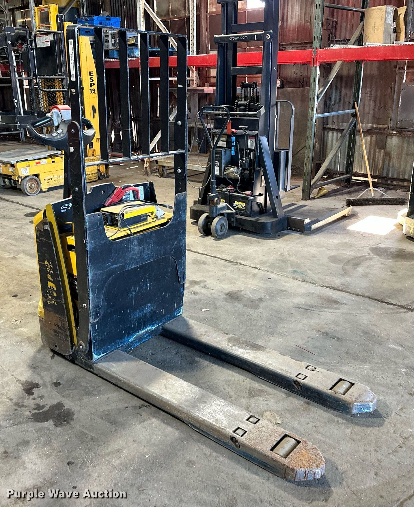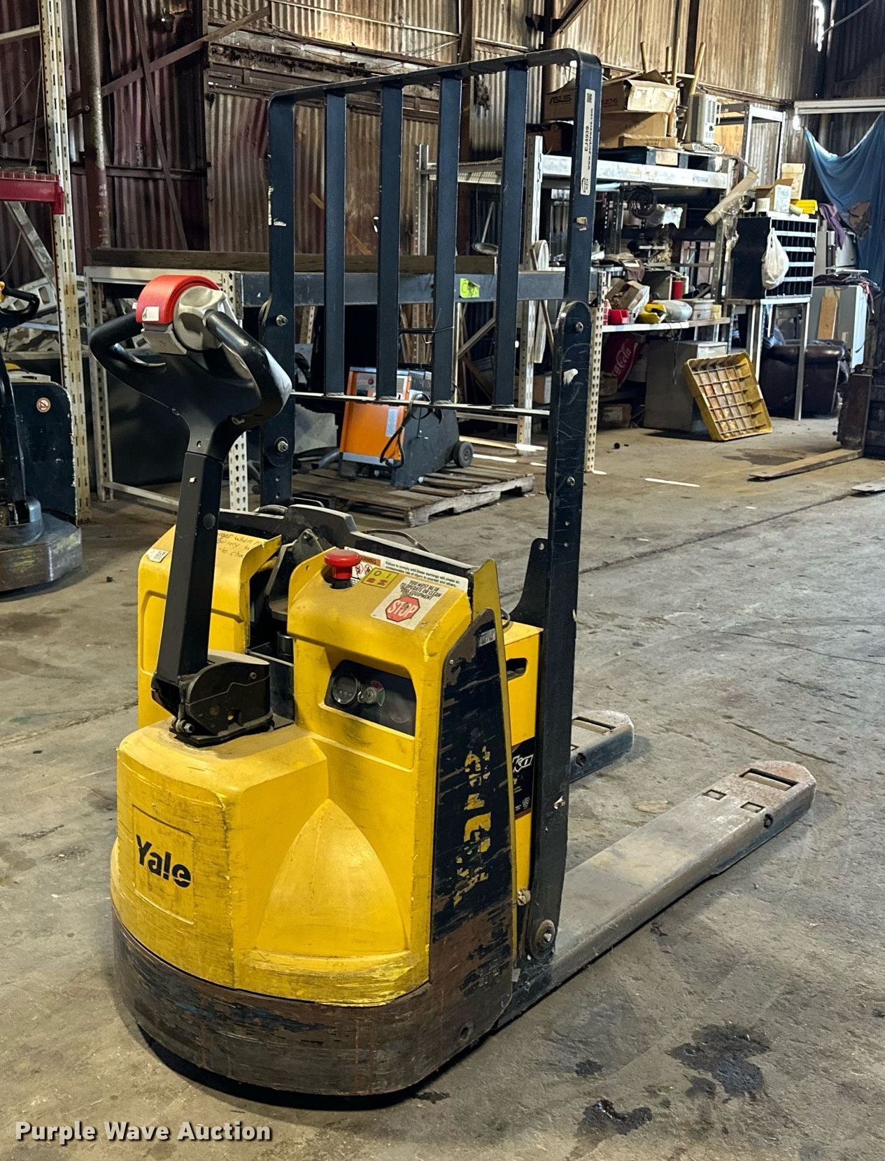 Purple Wave is selling a used Warehouse Forklift in Oklahoma. This item is a Yale MBP045VGN24T2746 pallet jack with the following: Hours: 4,034 on meter, Serial: A245N01876M