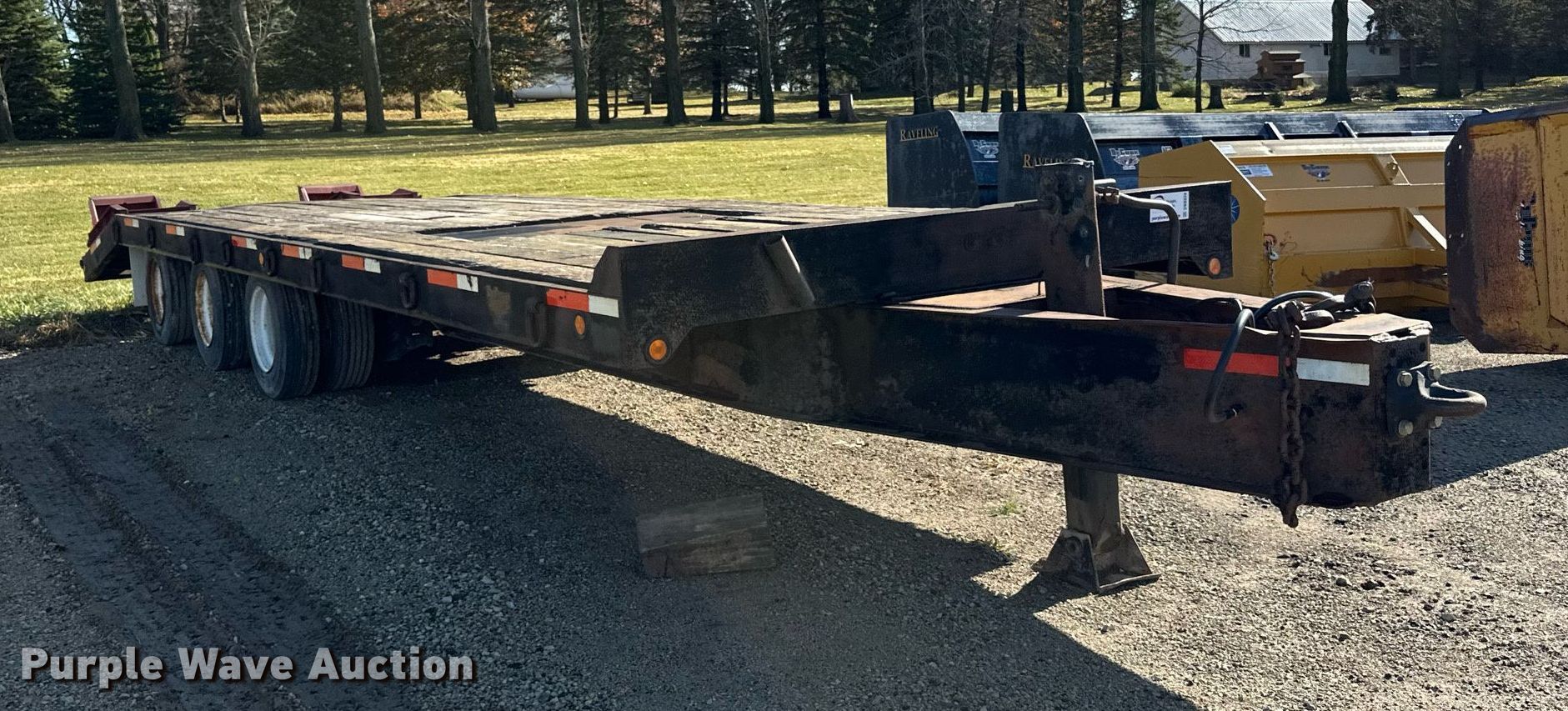 2005 Towmaster equipment trailer. VIN: 4KNFT24305L161883, Unit #: TL09. Dimensions Overall: 35' 6" L x 102" W, Deck: 24' L x 102" W, Deck height: 3', Tail length: 5', Ramps: Manual Length: 4' 8". Features Deck type: Wood. Chassis Hitch: Pintle, Landing gear: Single, Suspension: Spring, Brakes: Air, Axles: Triple. Tires Steel wheels, Size: 215/75R17.5. Minnesota title. Title distribution may be delayed up to 14 days from verification of funds. DeCook Excavating. Byron, MN 55920