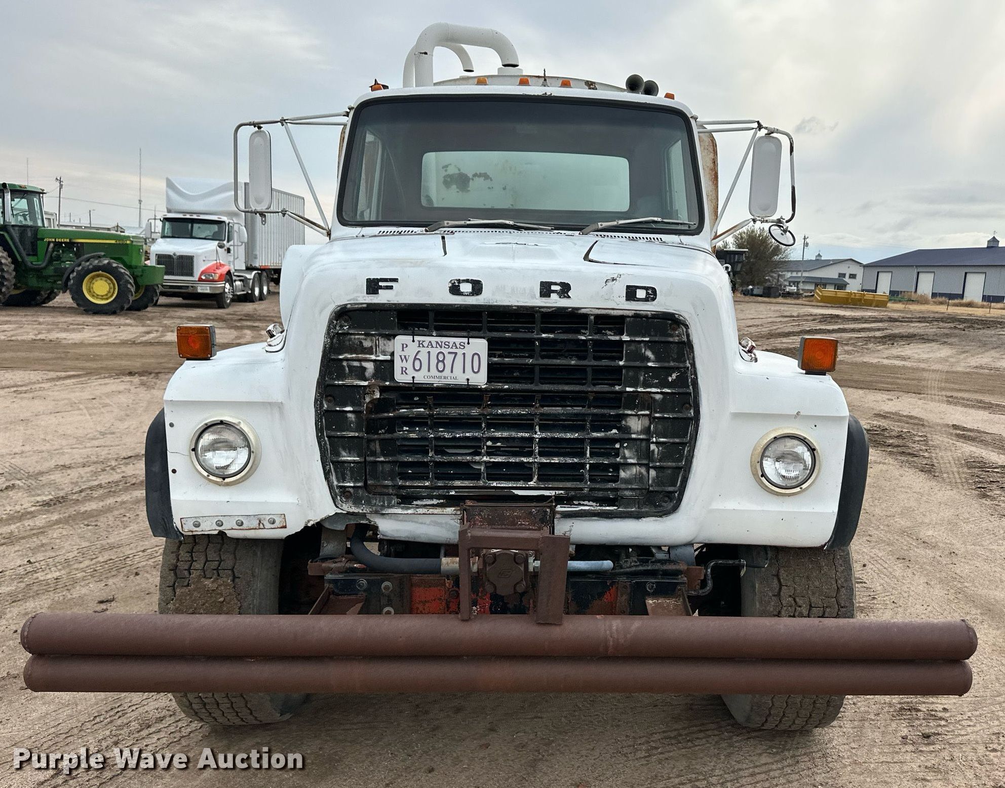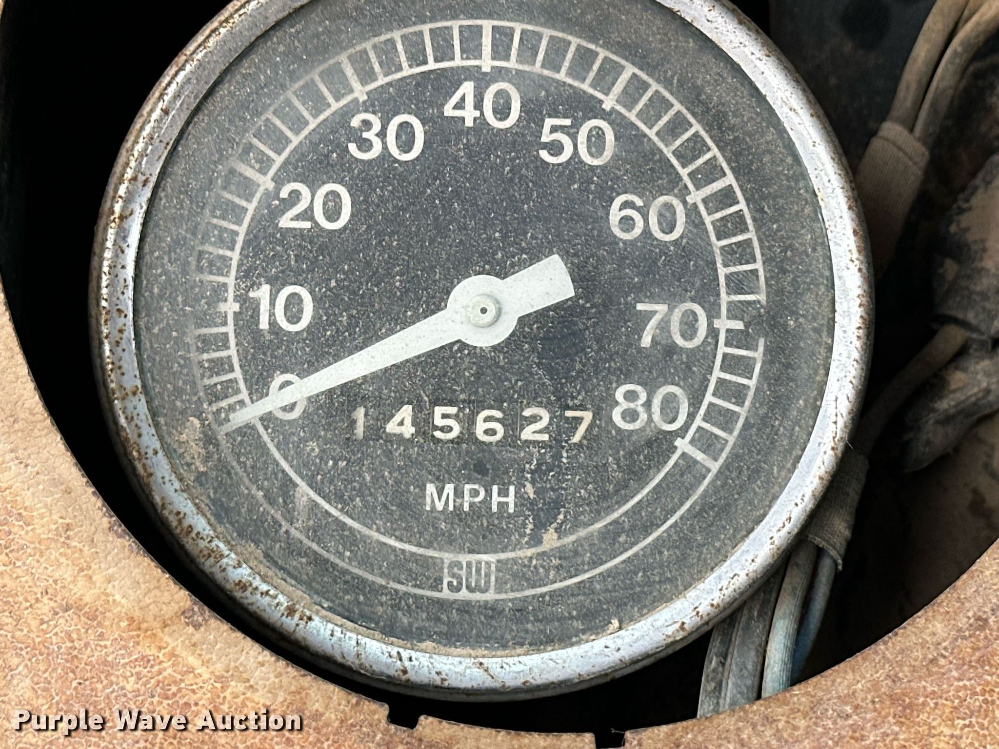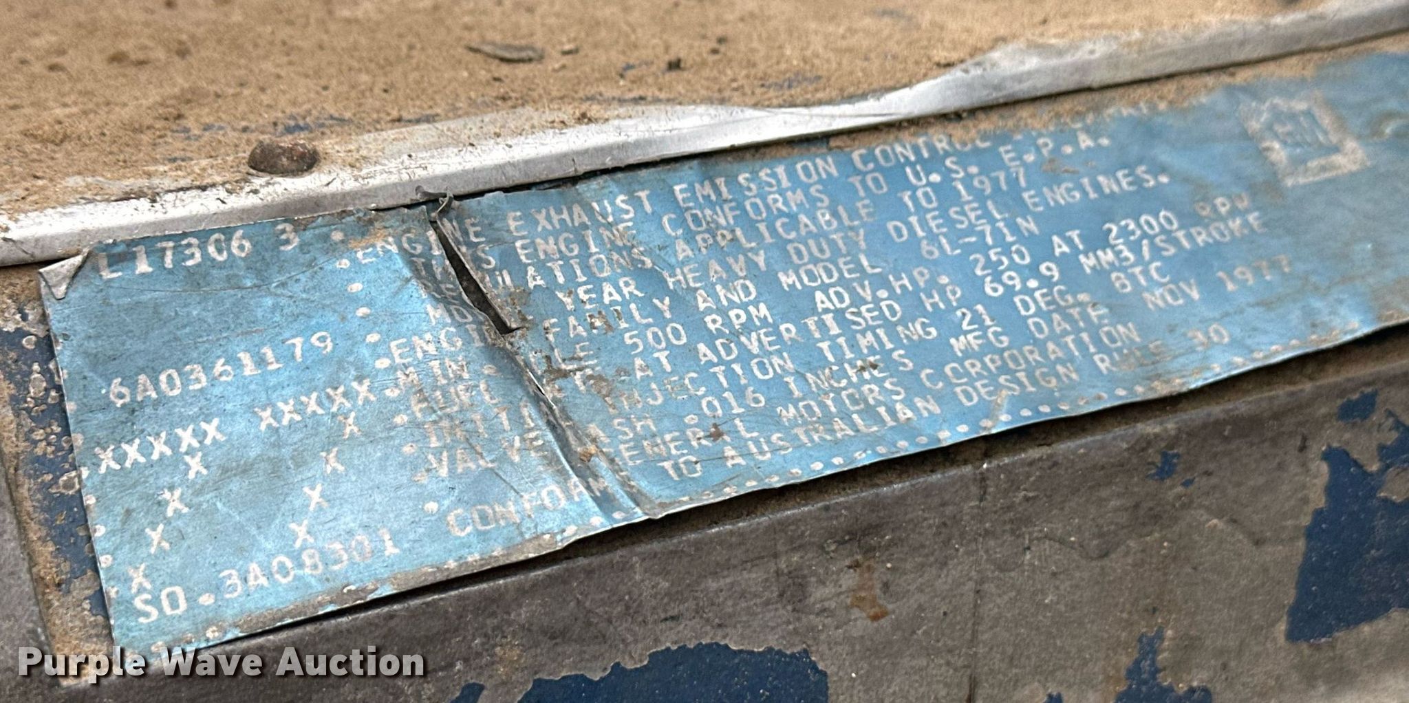 1977 Ford water truck. Miles: 145,627 on odometer, VIN: U902VAJ9256. Engine Detroit Diesel 6L-71N, Cylinders: 6, Fuel type: Diesel. Transmission Manual, Speed: 15. Chassis Axles: Tandem, Differential lock: Inter-axle, Suspension: Spring, Brakes: Air, Front mount PTO. Interior Heat. Features Bed / tank Capacity: 4,000 gallons, Spray bar: Rear, Side discharge, Top fill. Tires Size: 425/65R22.5, Rear: 315/80R22.5. Notes Passenger seat missing, Cylinder head gasket issues No coolant. Transfer of ownership documentation will be an Kansas antique bill of sale TR-312. This form is the only ownership documentation that will be provided and is sufficient for an Kansas buyer to apply for an Kansas title. Bidders are responsible for verifying if this is sufficient to obtain title in their jurisdiction prior to bidding. A-M Russell Excavating. Garden City, KS 67846