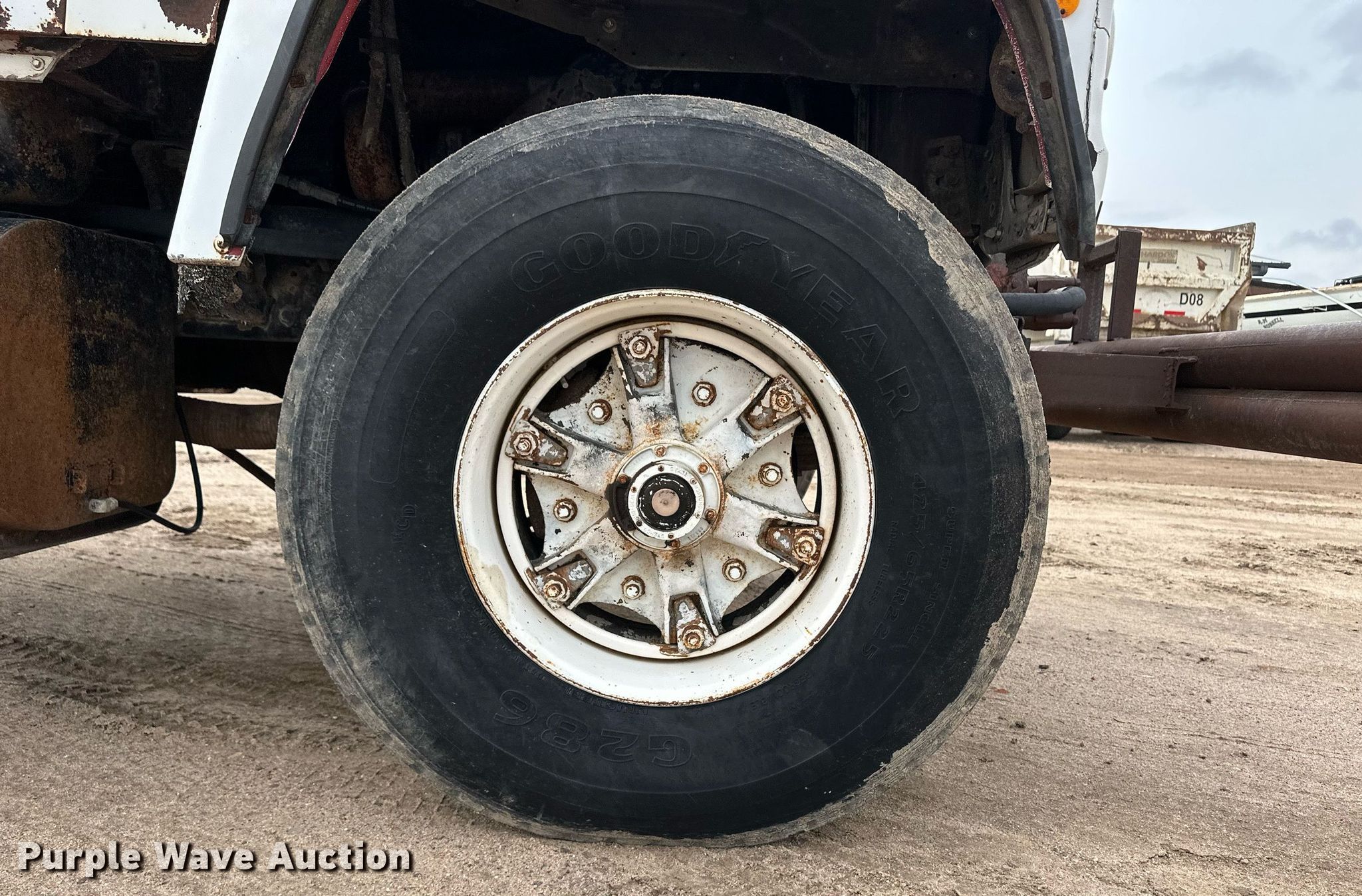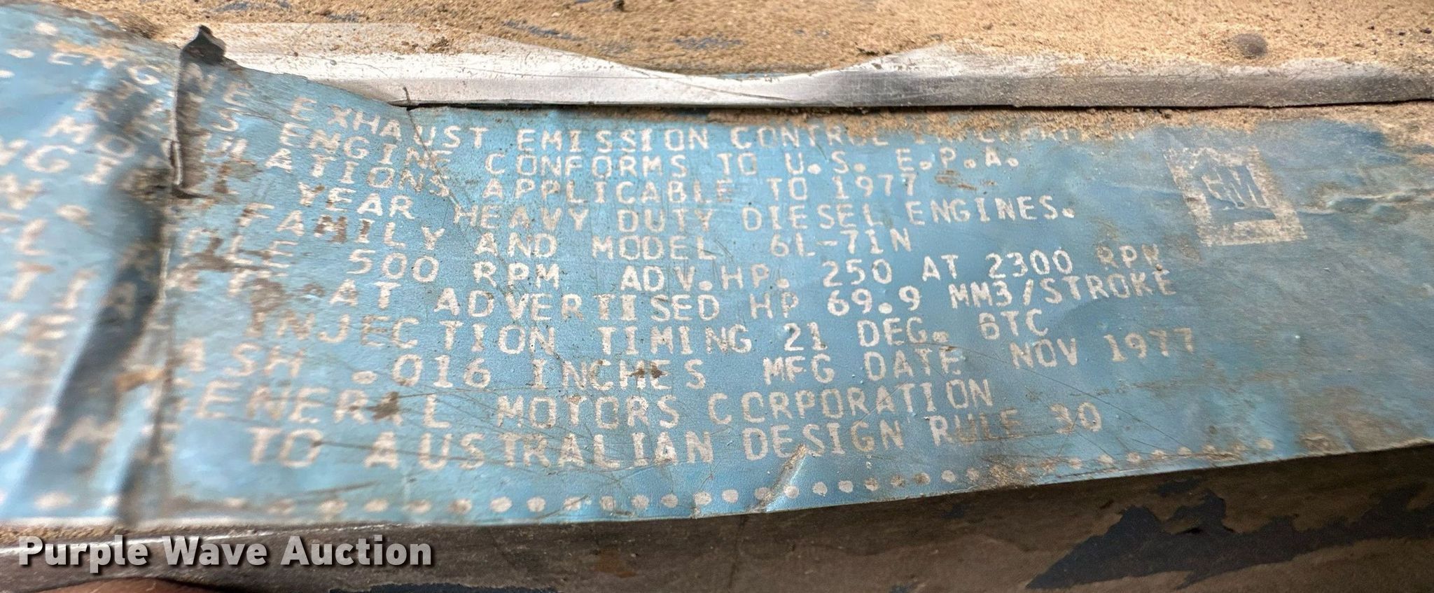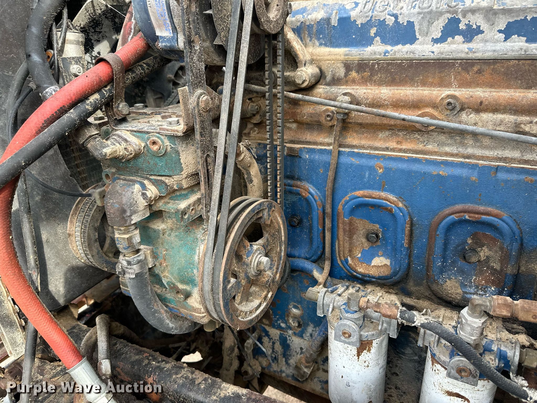 1977 Ford water truck. Miles: 145,627 on odometer, VIN: U902VAJ9256. Engine Detroit Diesel 6L-71N, Cylinders: 6, Fuel type: Diesel. Transmission Manual, Speed: 15. Chassis Axles: Tandem, Differential lock: Inter-axle, Suspension: Spring, Brakes: Air, Front mount PTO. Interior Heat. Features Bed / tank Capacity: 4,000 gallons, Spray bar: Rear, Side discharge, Top fill. Tires Size: 425/65R22.5, Rear: 315/80R22.5. Notes Passenger seat missing, Cylinder head gasket issues No coolant. Transfer of ownership documentation will be an Kansas antique bill of sale TR-312. This form is the only ownership documentation that will be provided and is sufficient for an Kansas buyer to apply for an Kansas title. Bidders are responsible for verifying if this is sufficient to obtain title in their jurisdiction prior to bidding. A-M Russell Excavating. Garden City, KS 67846