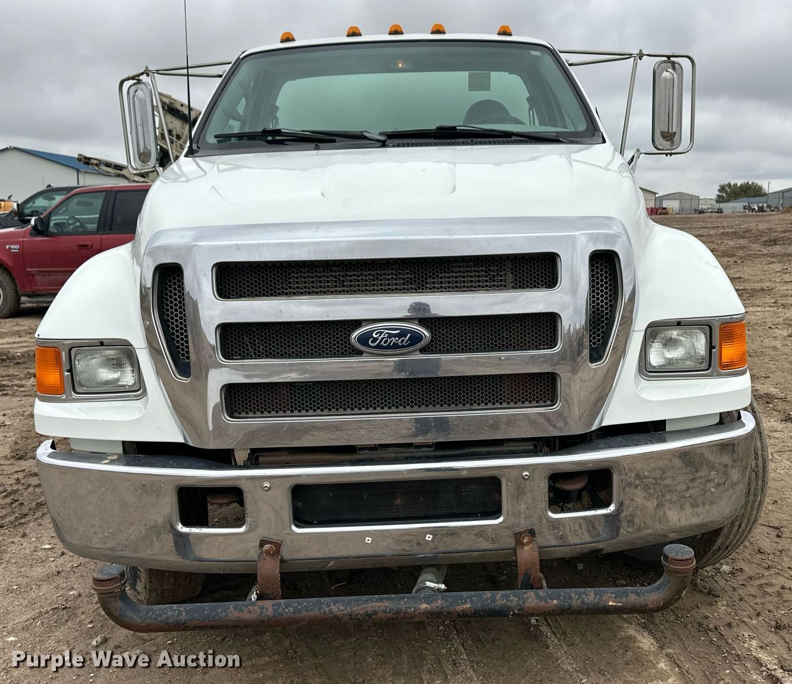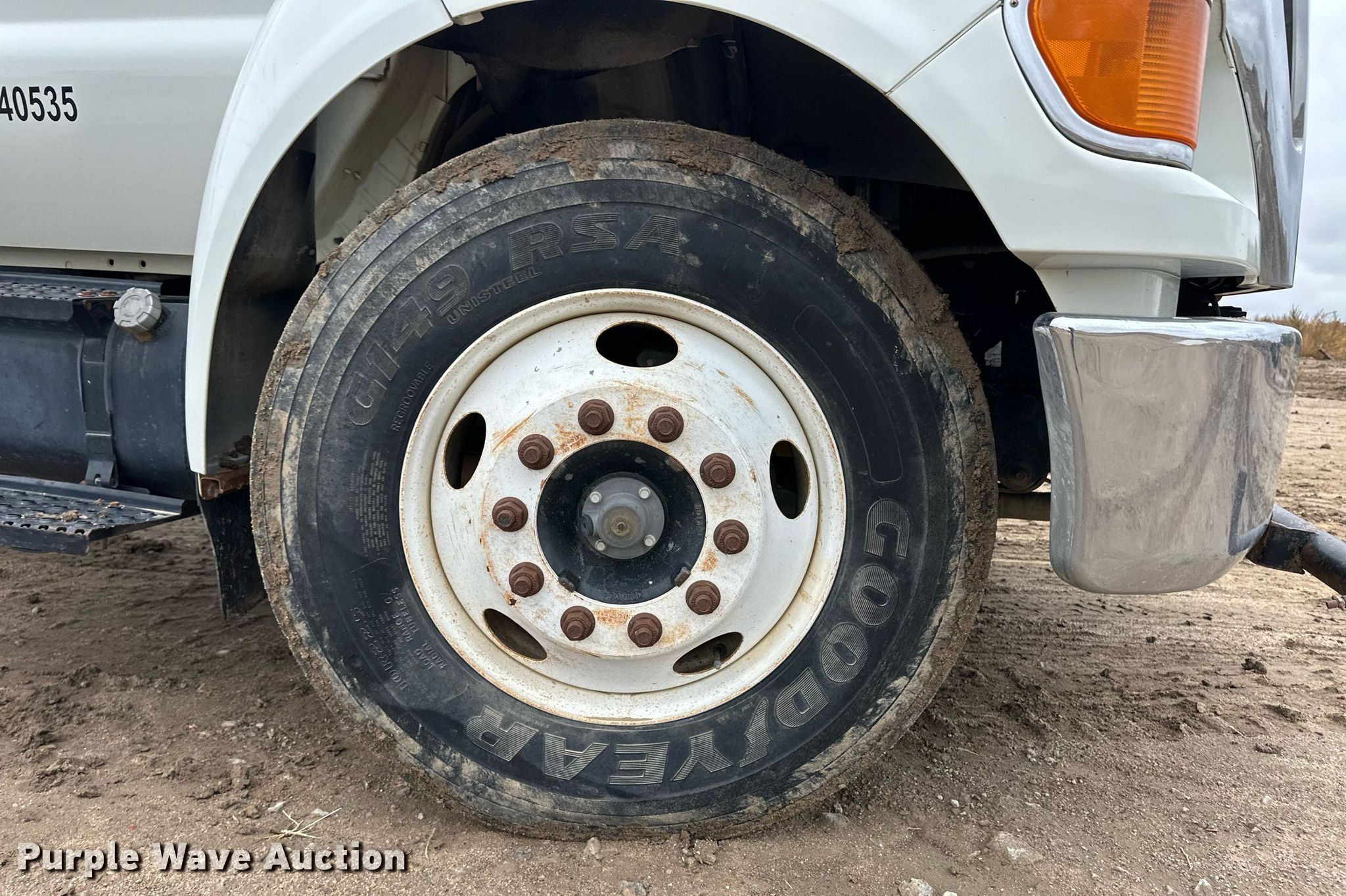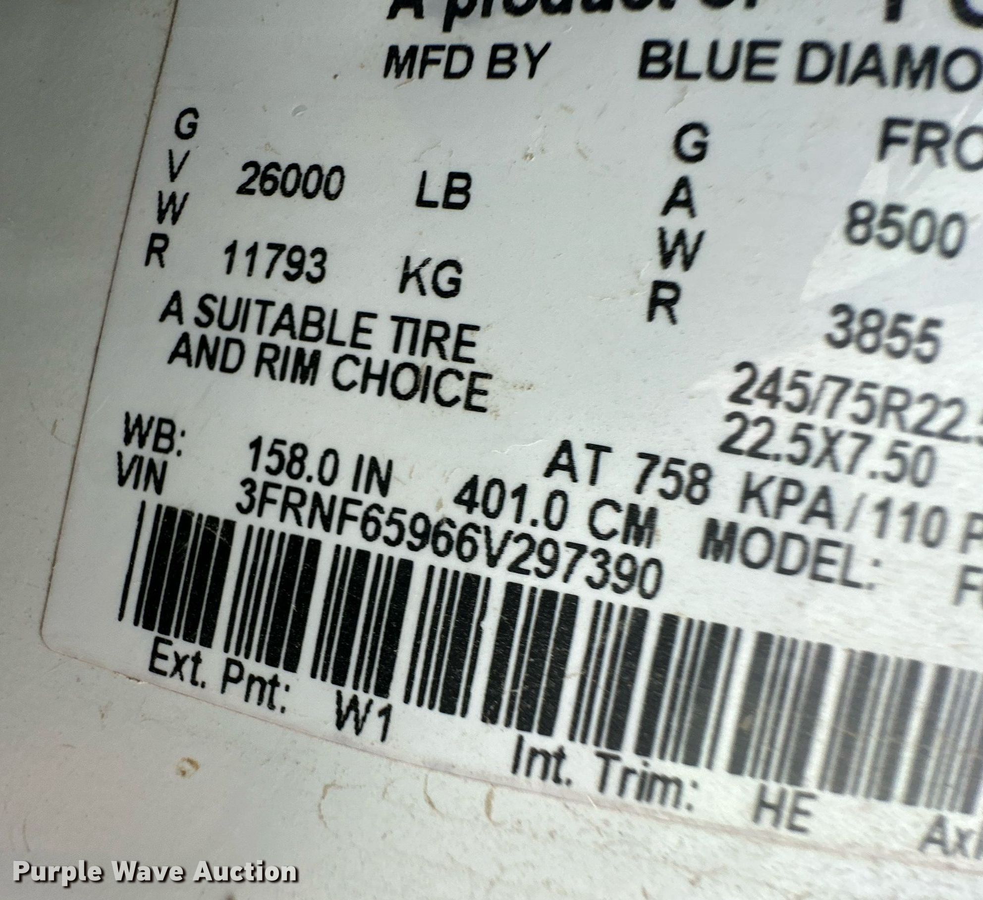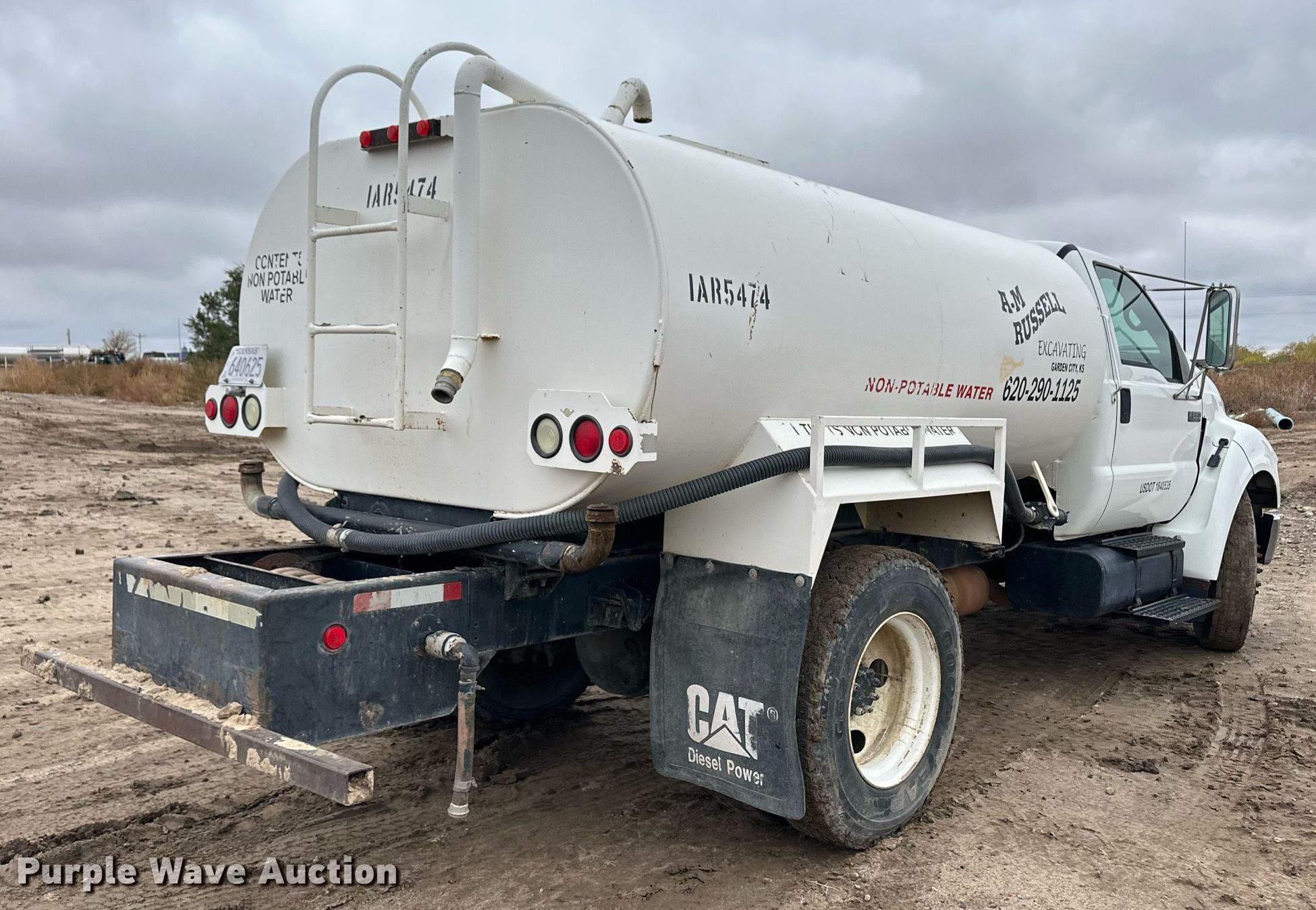 2006 Ford F650 Super Duty water truck. Miles: 15,681 on odometer, VIN: 3FRNF65966V297390. Engine Caterpillar C7 Acert, Displacement: 7.2L, Cylinders: 6, Fuel type: Diesel, HP: 190. Transmission Manual, Speed: 6. Chassis Axles: Single, Suspension: Spring, Brakes: Hydraulic. Interior AC, Heat, Cruise control. Features Bed / tank Capacity: 2,000 gallons, 10' L x 84" W, Spray bar: Front, Rear, Side discharge, Hose reel, Top fill. Tires Size: 10R22.5. Kansas title. Title distribution may be delayed up to 30 days from verification of funds. A-M Russell Excavating. Garden City, KS 67846