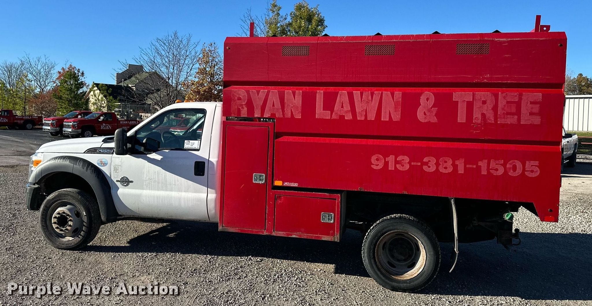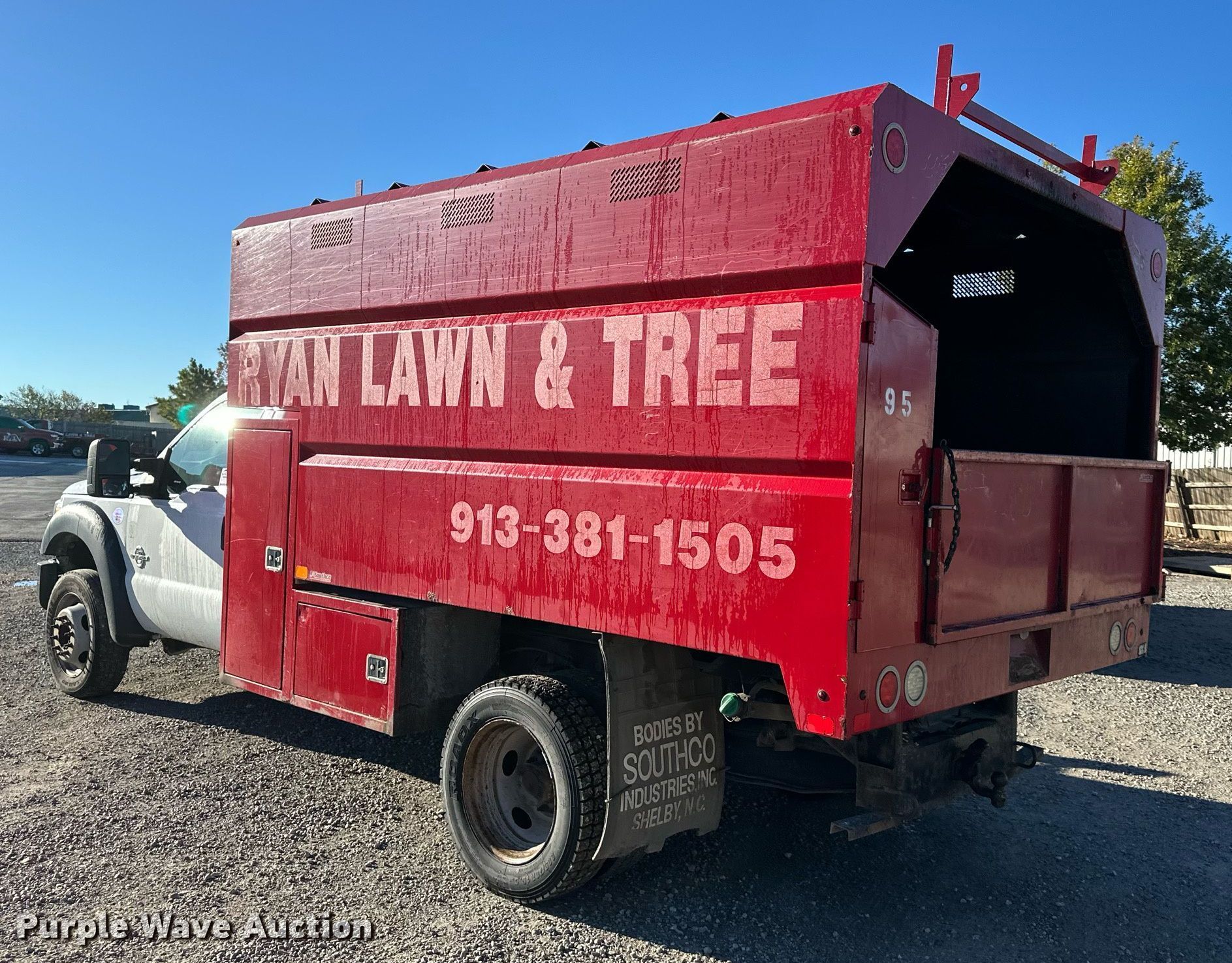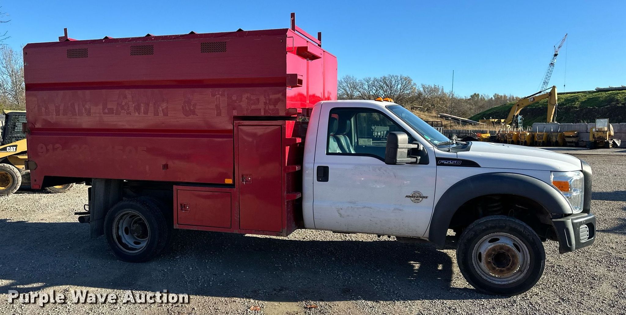 2011 Ford F550 chipper truck. VIN: 1FDUF5GT4BEB64625. Engine Displacement: 6.7L, Cylinders: 8, Fuel type: Diesel. Transmission Automatic. Chassis Axles: Single, Suspension: Spring, Brakes: Hydraulic, PTO. Interior AC, Heat, Cruise control. Features Bed Southco, 9' 7" L x 96" W. Tires Size: 225/70R19.5. Kansas title. Title distribution may be delayed up to 14 days from verification of funds. Ryan Lawn Care Service. Shawnee, KS 66218