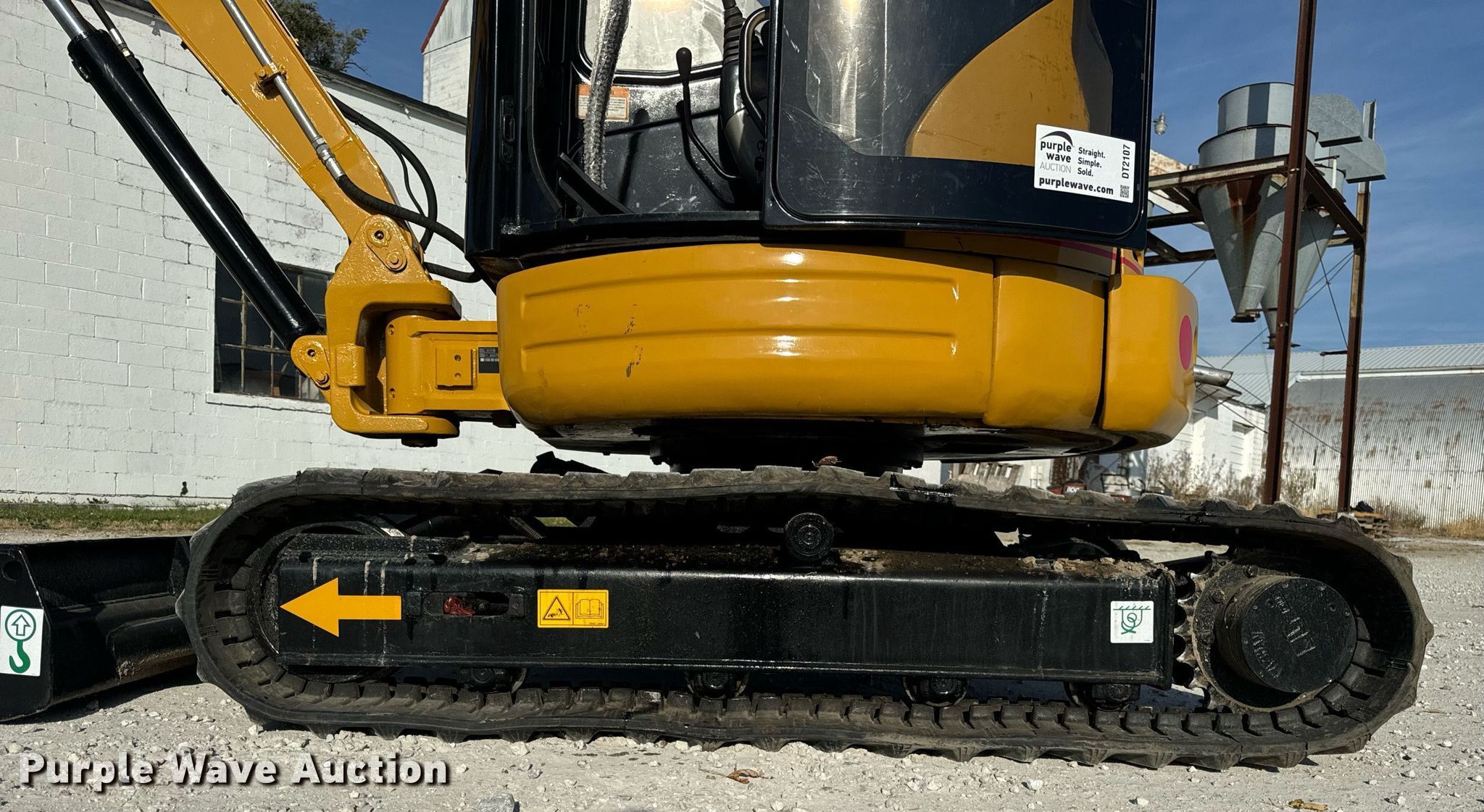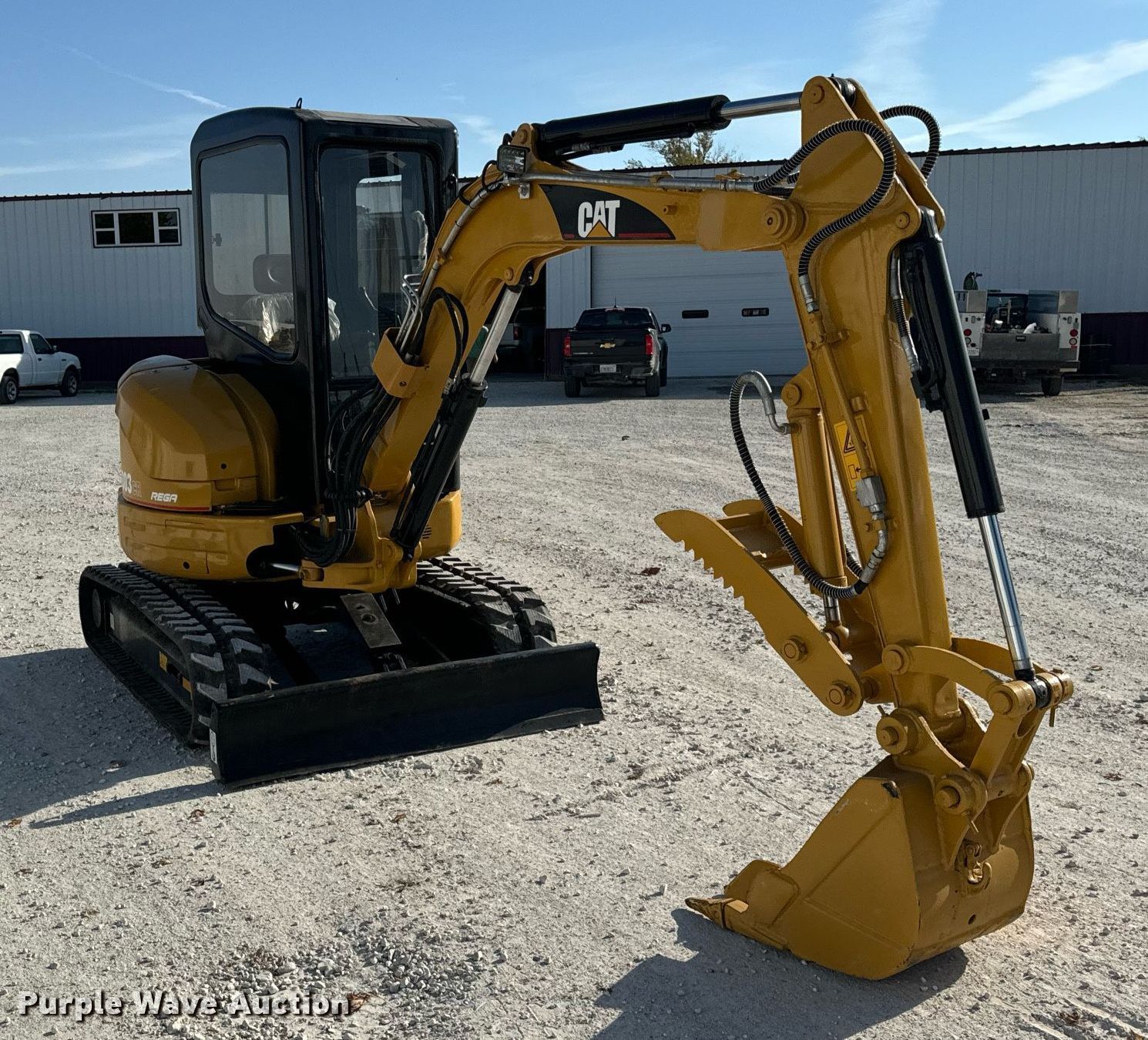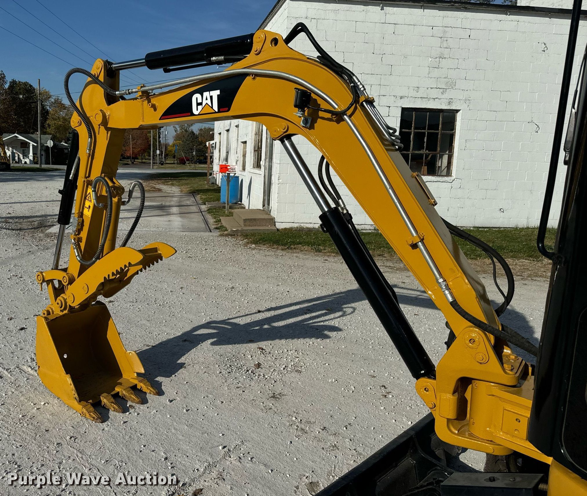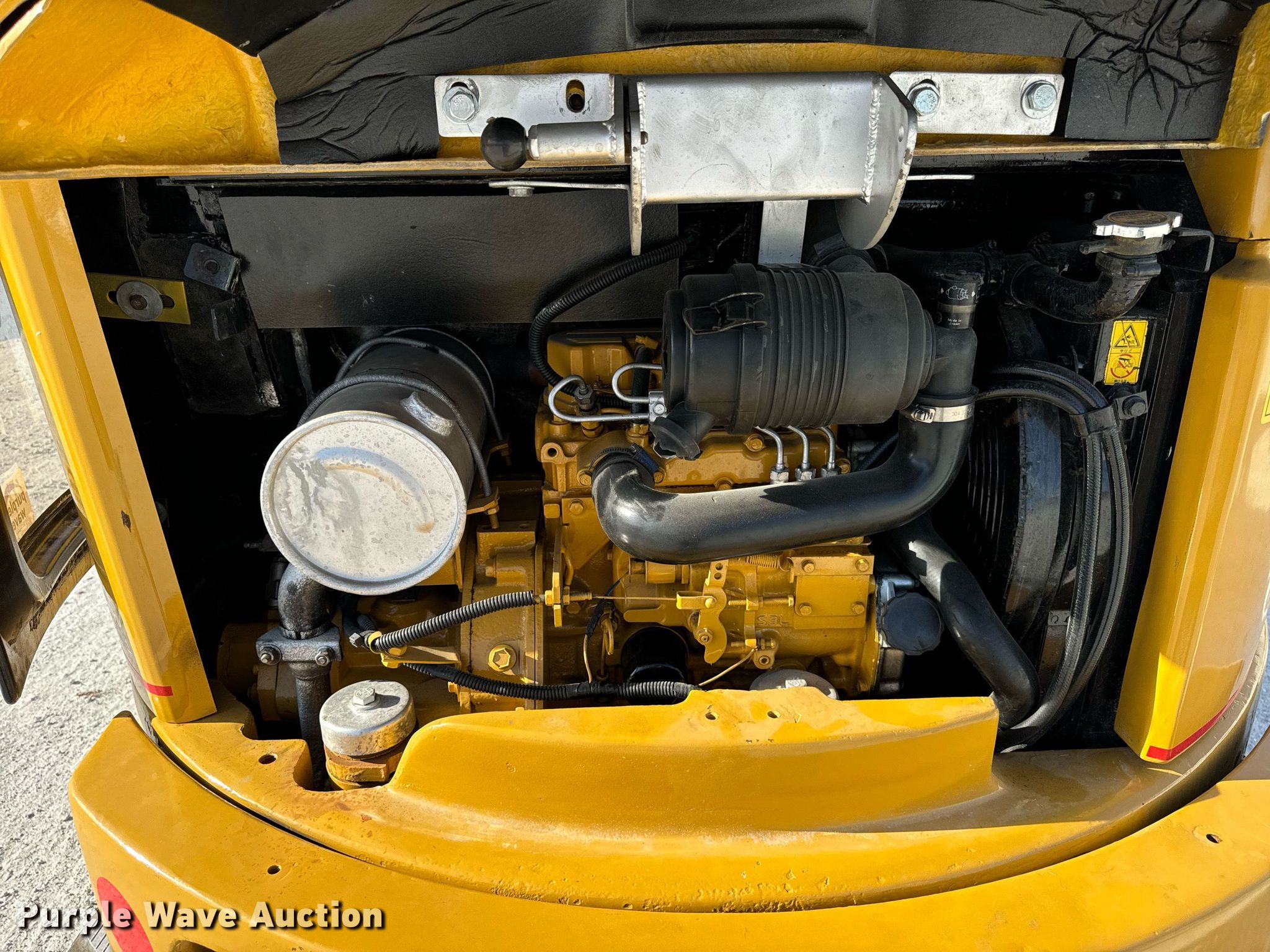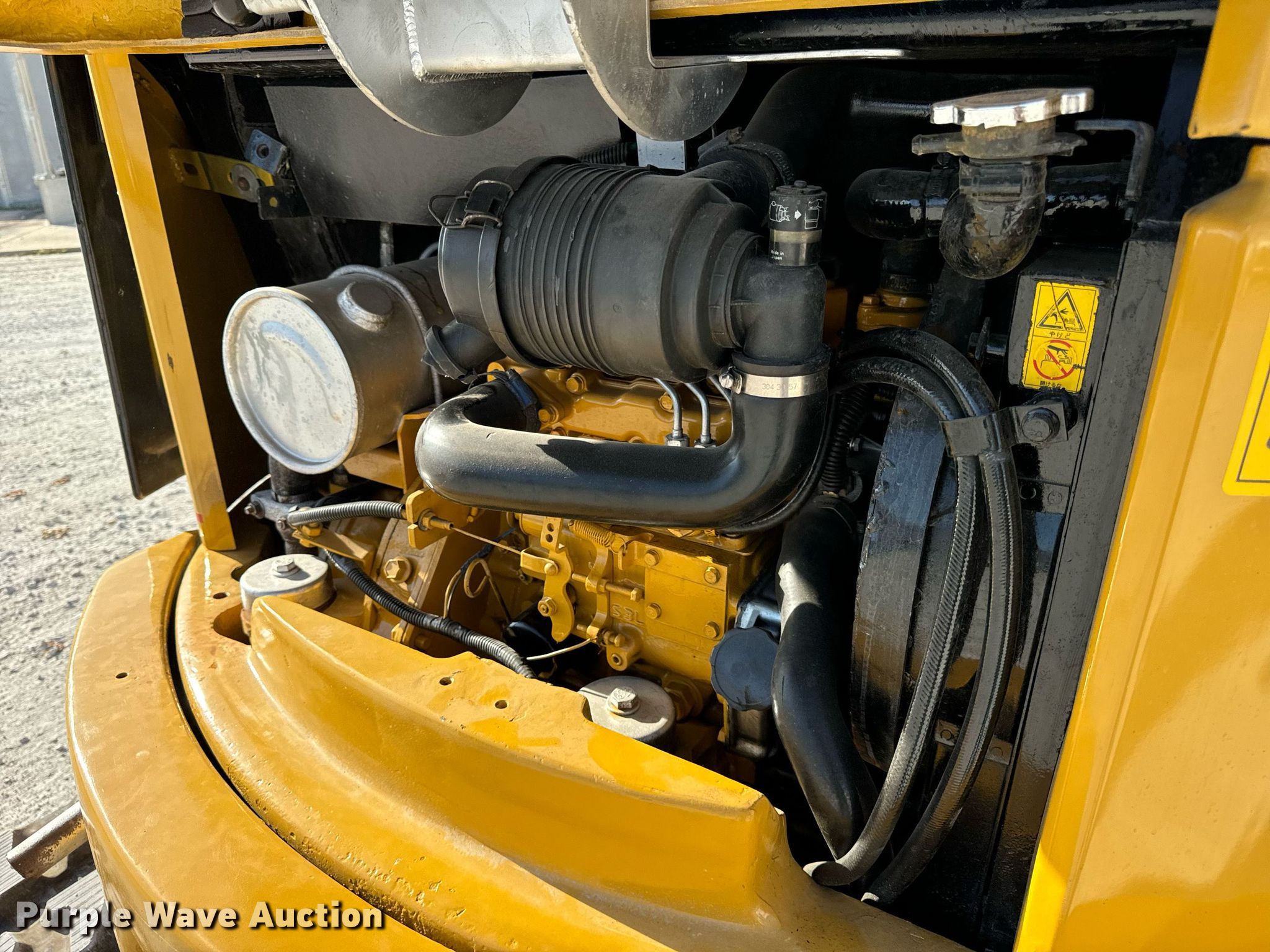 2006 Caterpillar 303CR mini excavator. Hours: 1,233 on meter, Serial: CAT00303VDMA05228. Engine Mitsubishi S3L, Cylinders: 3, Fuel type: Diesel. Transmission Hydrostatic, Two speed travel. Operators station Enclosed cab. Features Auxiliary hydraulics, Backfill blade Width: 60", Boom Swing, Stick Stick length: 4' 2", Thumb: Hydraulic, Bucket Width: 21", Teeth: 4. Tracks Width: 12", Rubber. KC Construction. Carthage, IL 62321