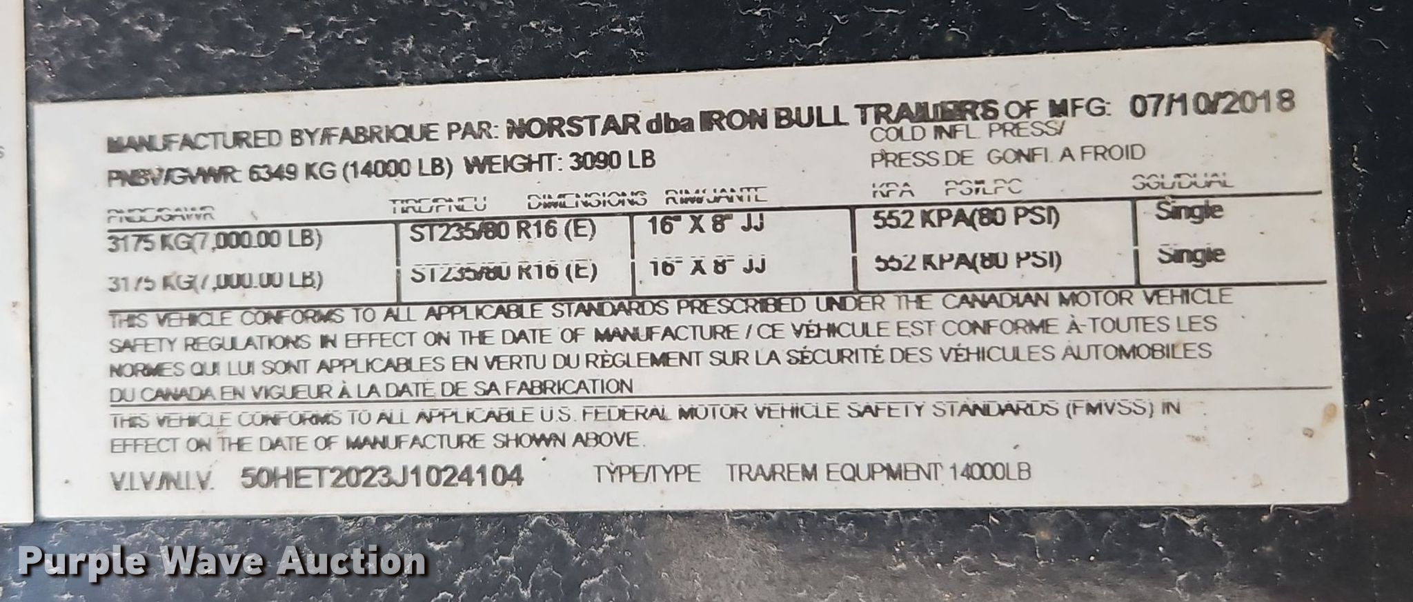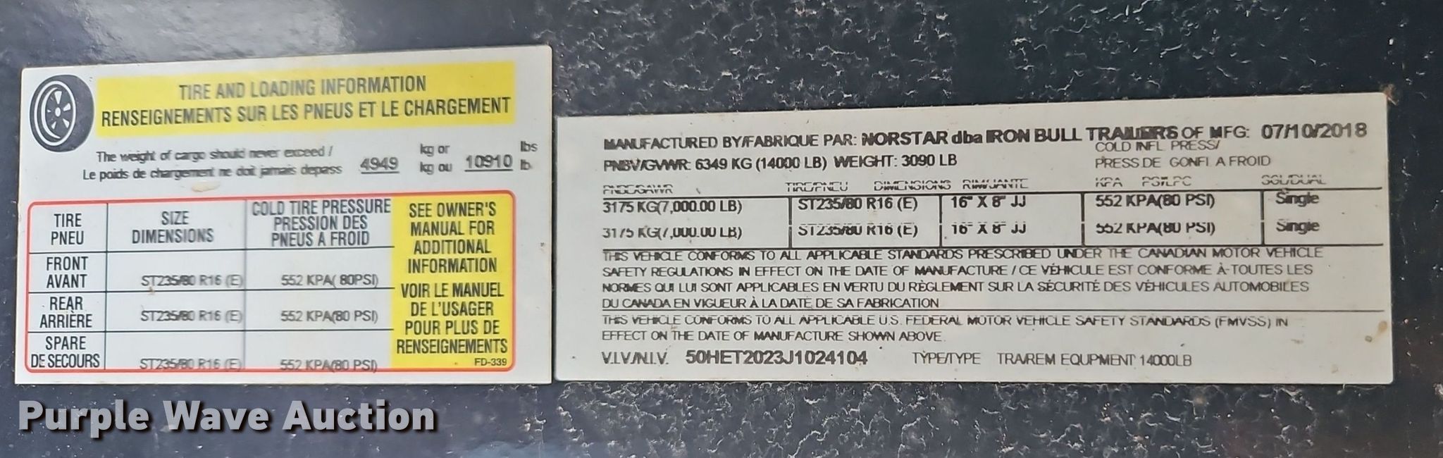 Purple Wave is selling a used Equip. Trailer in Kansas. This item is a 2018 Norstar equipment trailer with the following: VIN: 50HET2023J1024104