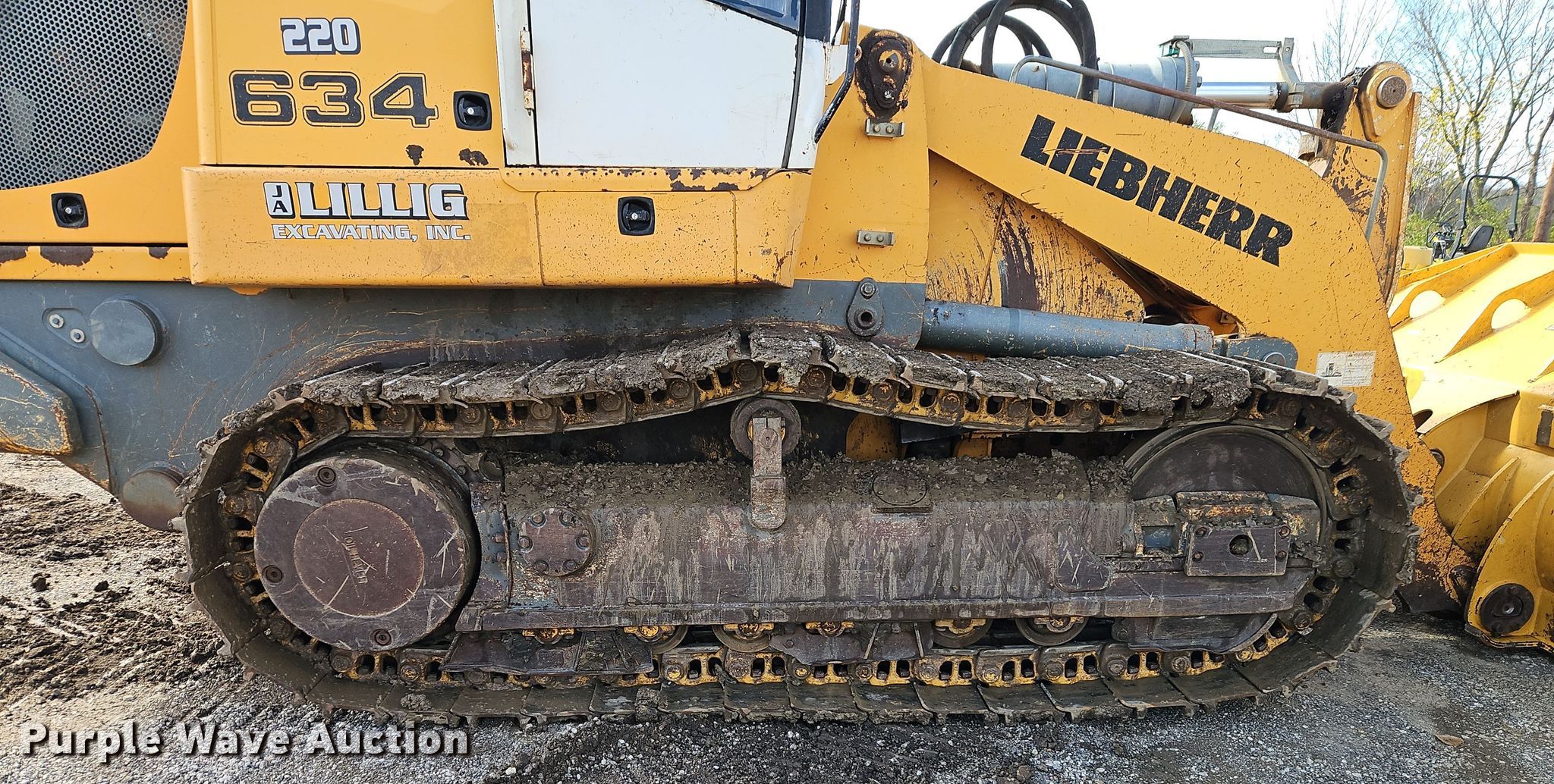 Liebherr LR 634 track loader. Hours: 4,251 on meter, Serial: 992-9313. Engine Liebherr D934L, Displacement: 7.01L, Cylinders: 6, Fuel type: Diesel. Transmission Hydrostatic. Operators station Enclosed cab, AC, Heat, Bucket controls: Joystick. Features Auxiliary hydraulics: Front, Bucket Liebherr, Width: 98", Self- leveling bucket, Teeth: 8. Tracks Width: 22", Grouser pads: Double. J.A. Lillig Excavating - Open inspection December 4, 2024. Kansas City, MO 64133