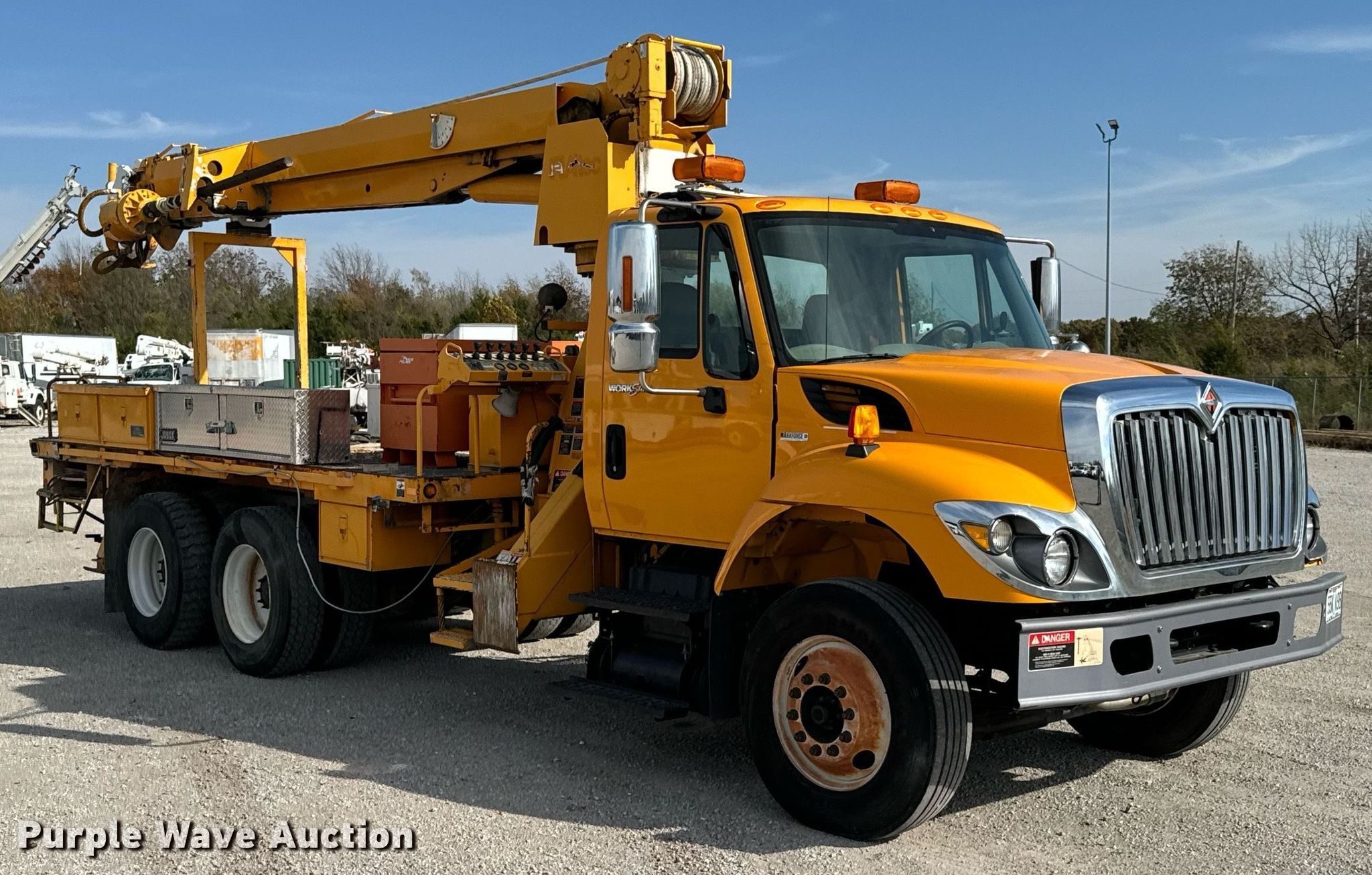 Purple Wave is selling a used Digger Derrick Truck in Missouri. This item is a 2010 International WorkStar 7500 digger derrick truck with the following: Miles: 110,682 on odometer, Hours: 6,569 on meter, VIN: 1HTWGAZR9AJ268413