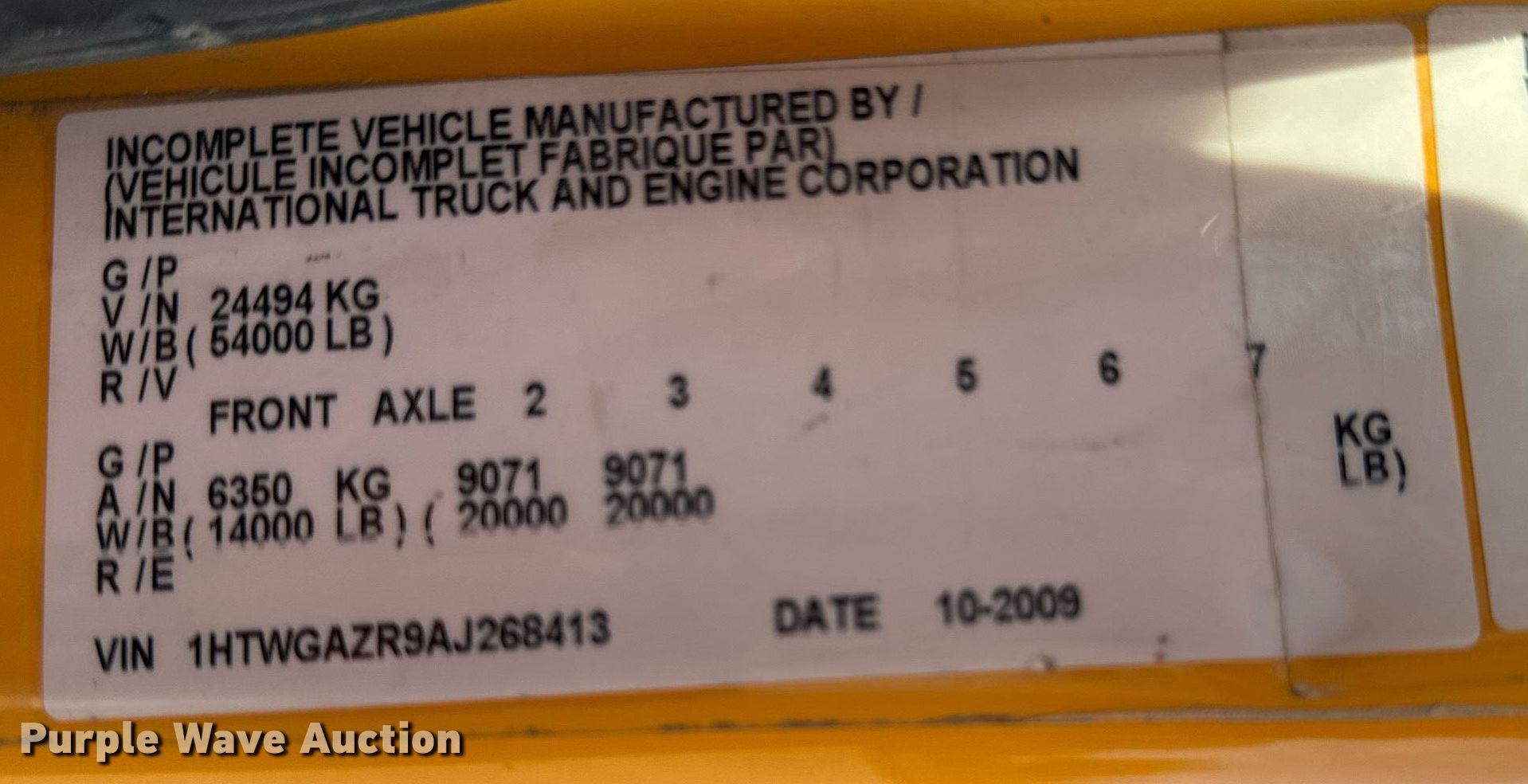 - VIN: 1HTWGAZR9AJ268413