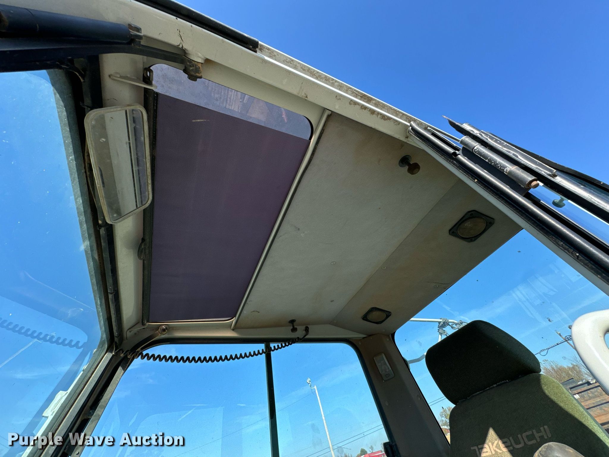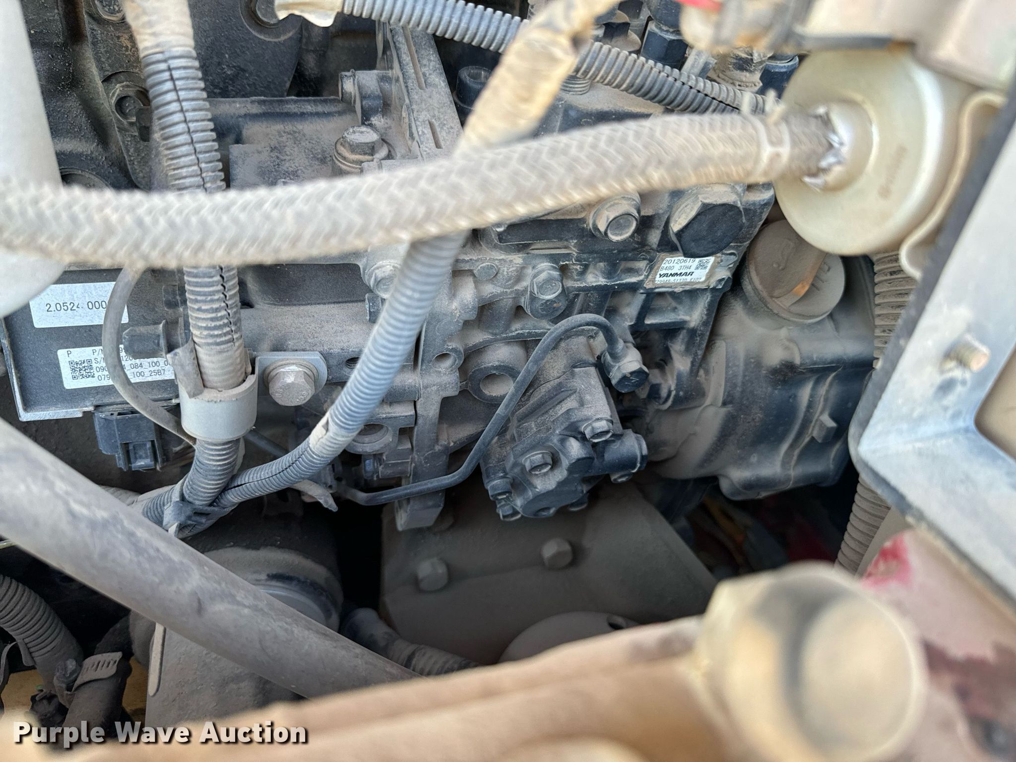 2013 Takeuchi TB285 mini excavator. Hours: 519 on meter Actual hours unknown, Serial: 185000609. Engine Yanmar, Cylinders: 4, Fuel type: Diesel. Transmission Hydrostatic. Operators station Enclosed cab, Heat. Features Auxiliary hydraulics, Backfill blade Width: 90", Boom Swing, Stick Stick length: 90", Quick coupler: Mechanical, Bucket Width: 17", Teeth: 3. Tracks Width: 18", Rubber. Notes Hour meter illumination issues. Equipment Unlimited. Grove, OK 74344
